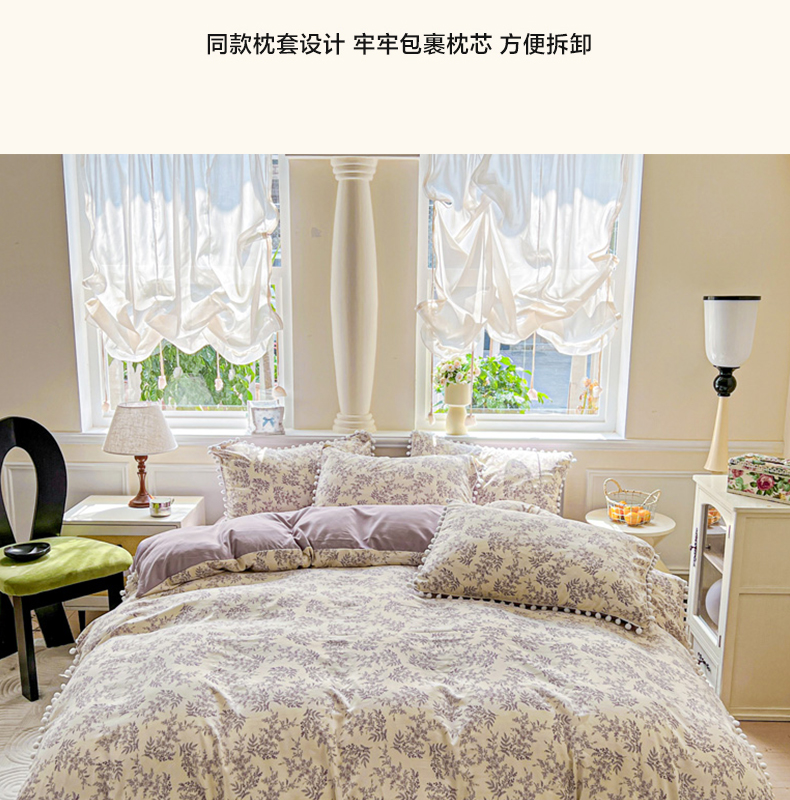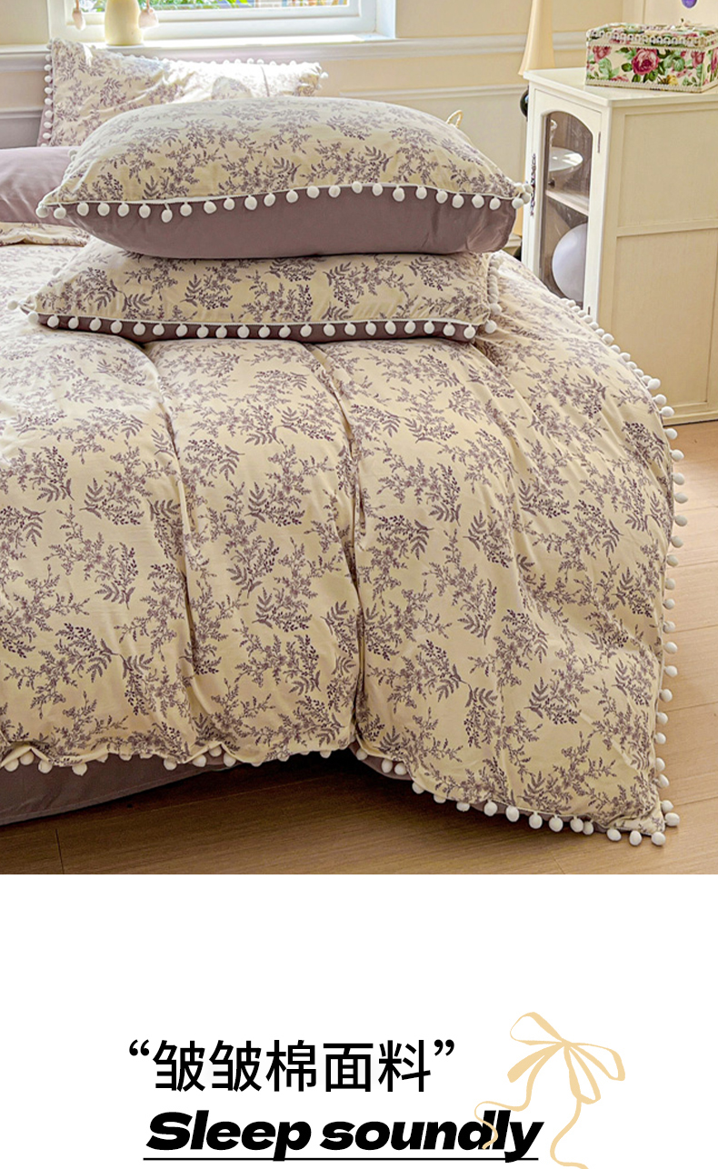 (总)朵朵家纺 2025新款球球款云感四件套水洗棉简约风小碎花单品单被套(可定制尺寸 )