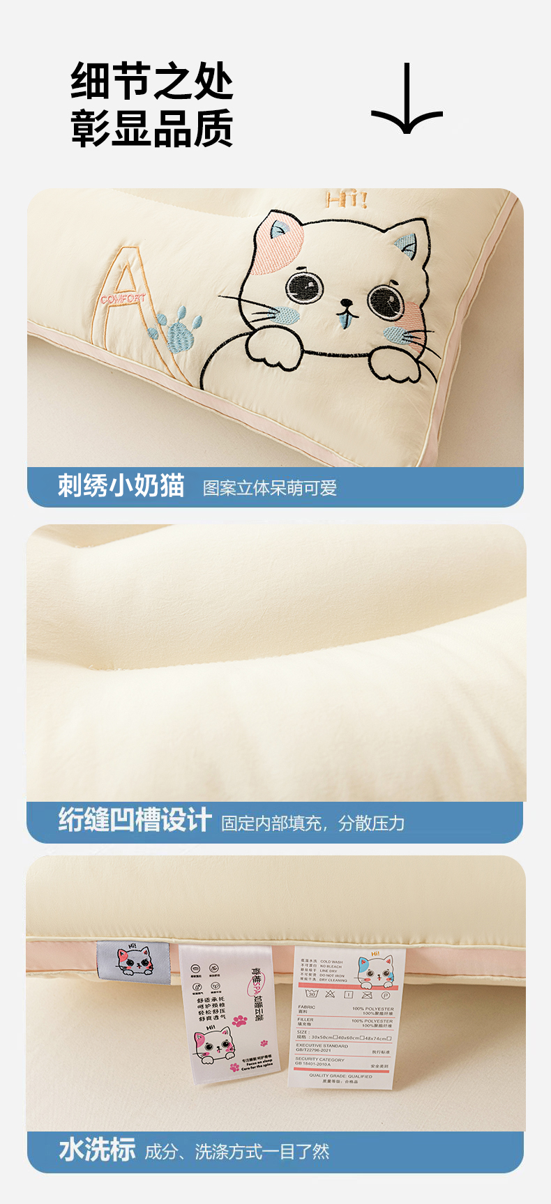 当前位置: 91家纺网 > 商品网购 > 枕头/枕芯/保健枕/颈椎枕 > 普通枕芯 > 糖果枕芯2025新款小奶猫亲肤家庭组合枕芯实用多人群枕头 小奶猫粉边40*60