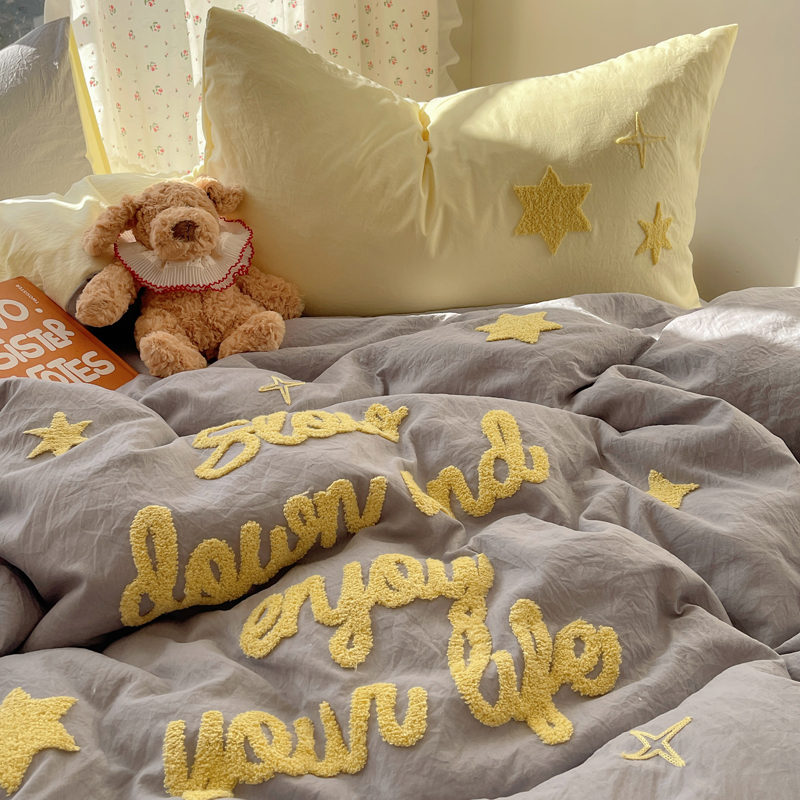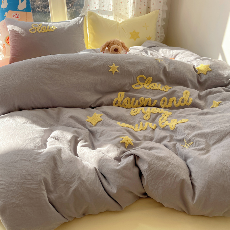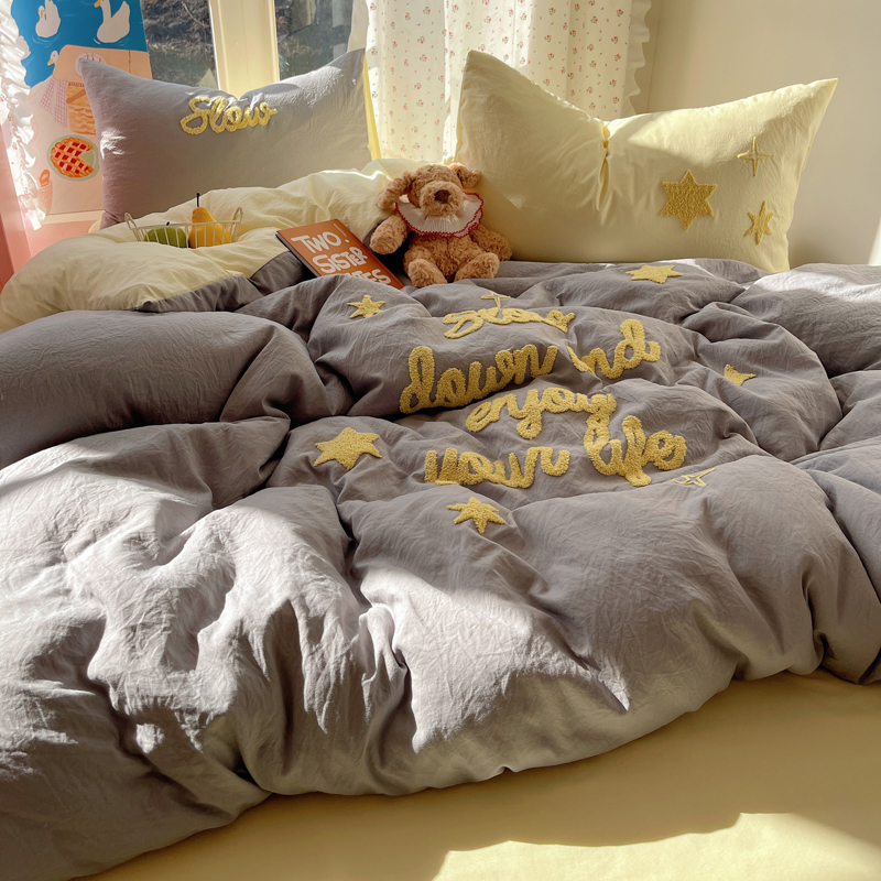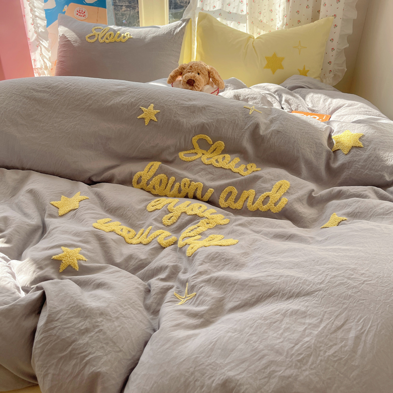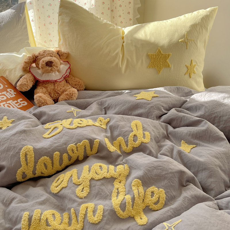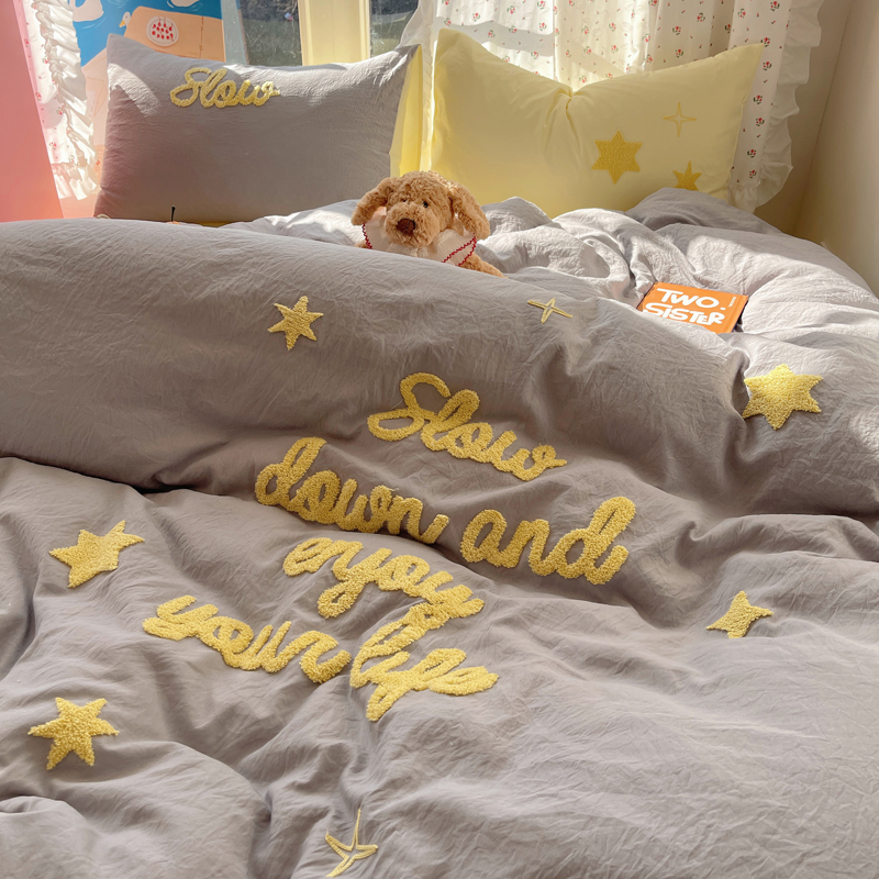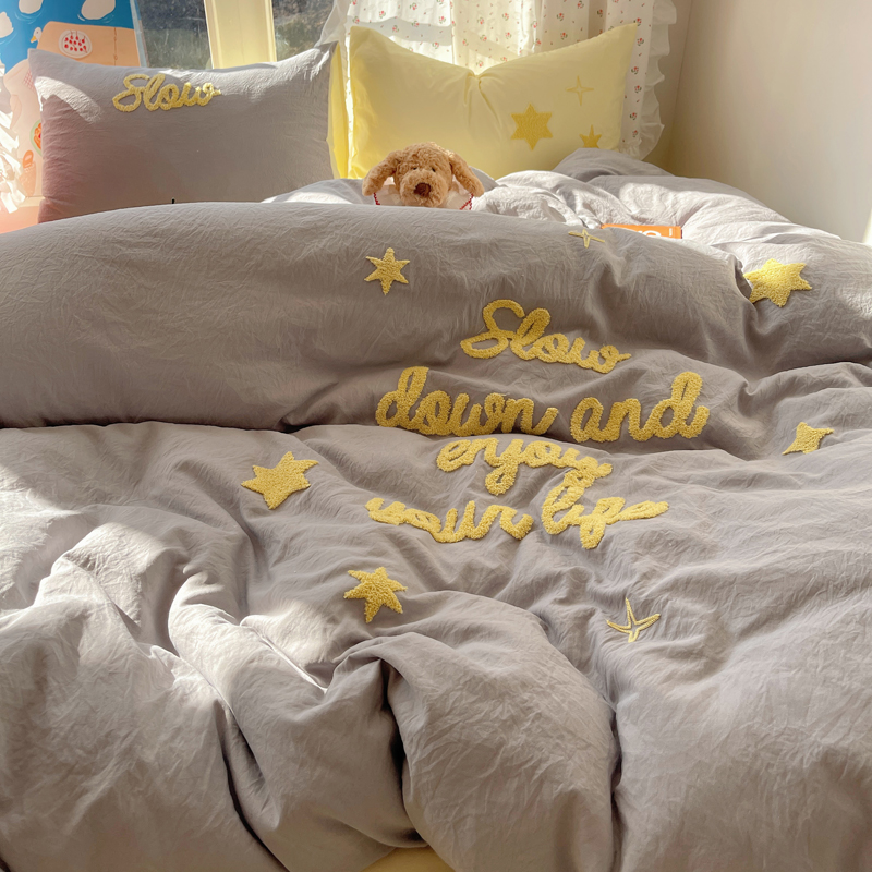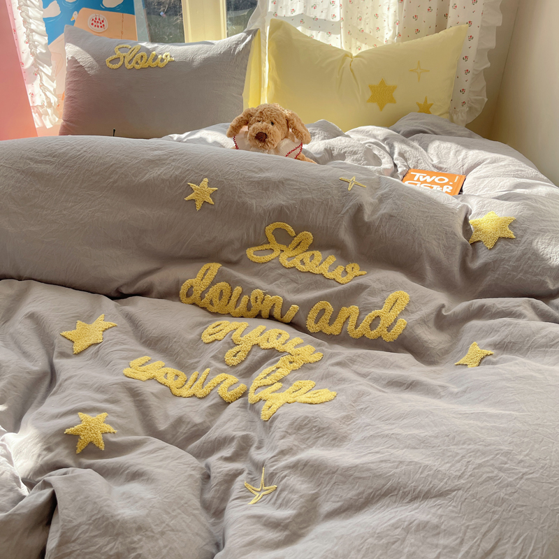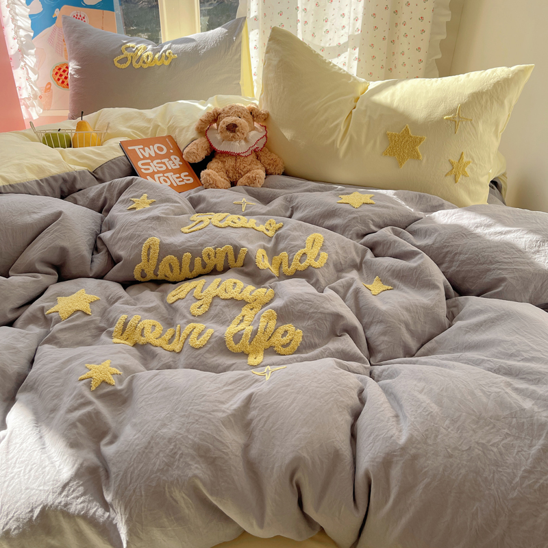 顾里家纺 2025新款ins韩系童趣毛巾绣云朵棉四件套 星空