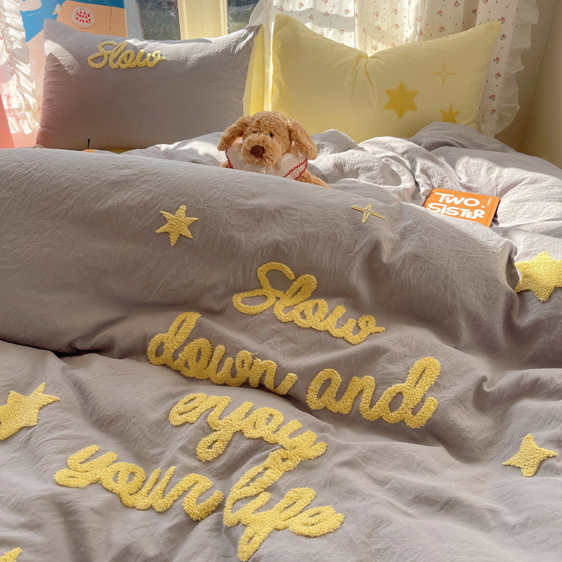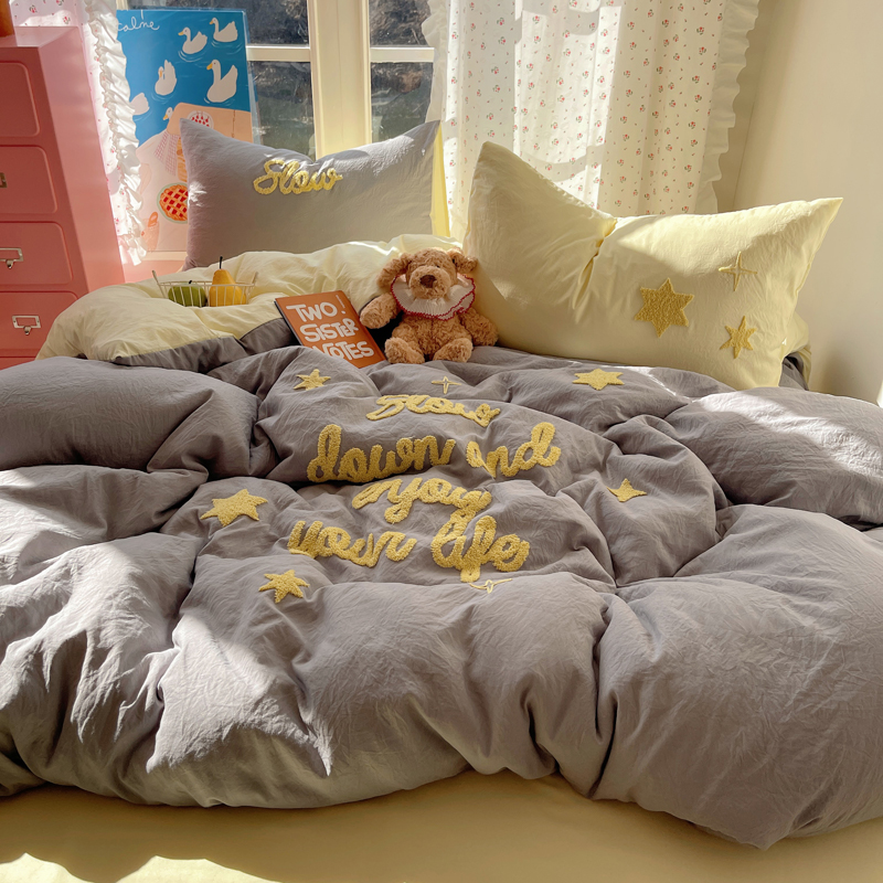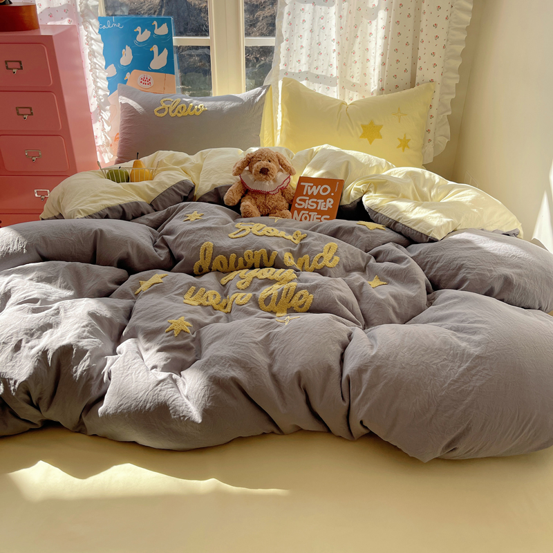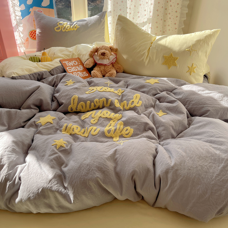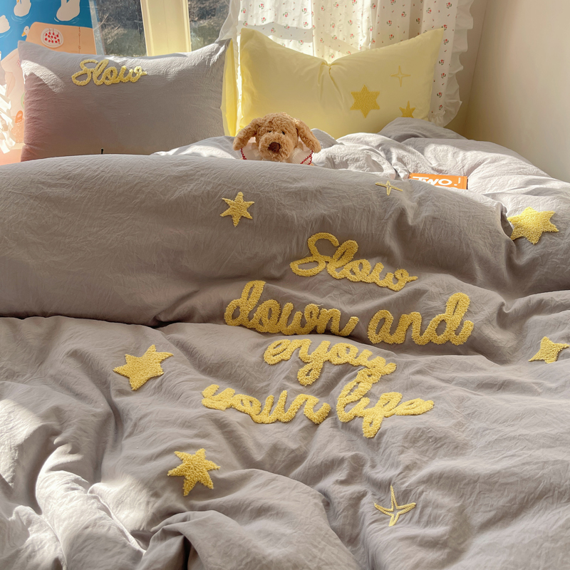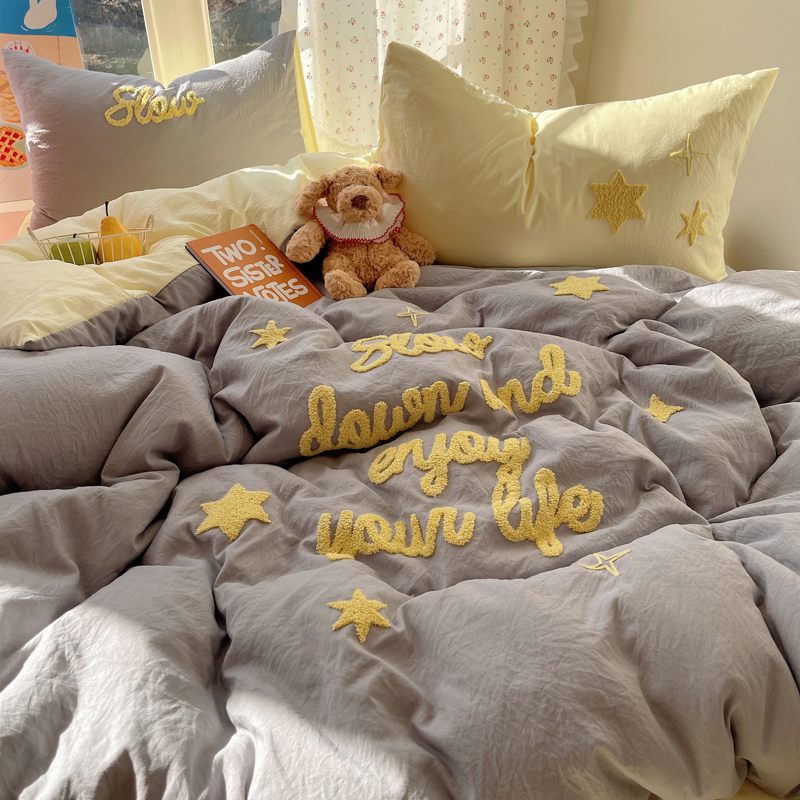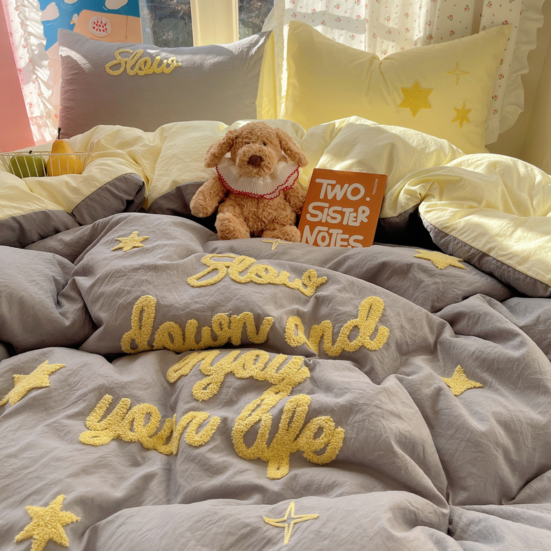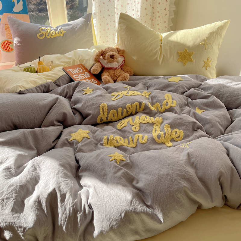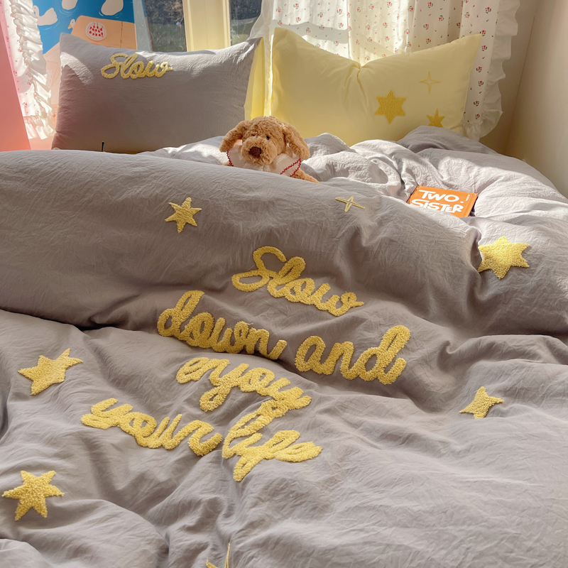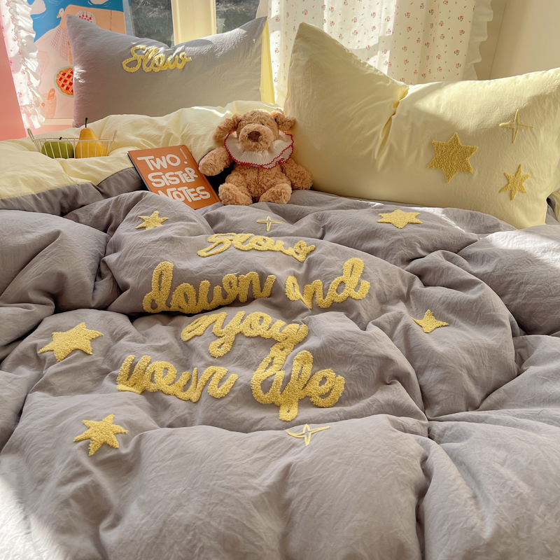 顾里家纺 2025新款ins韩系童趣毛巾绣云朵棉四件套 星空