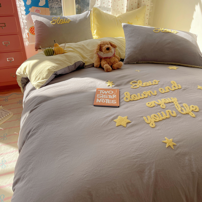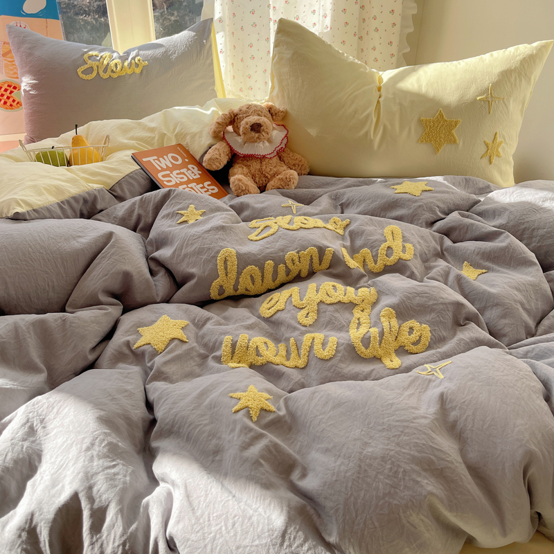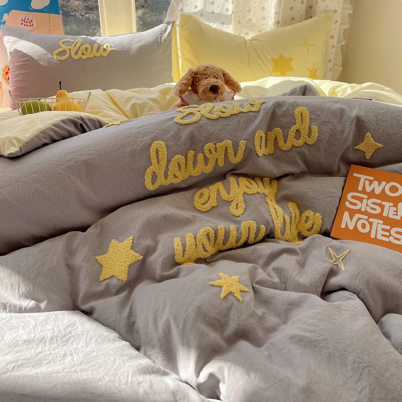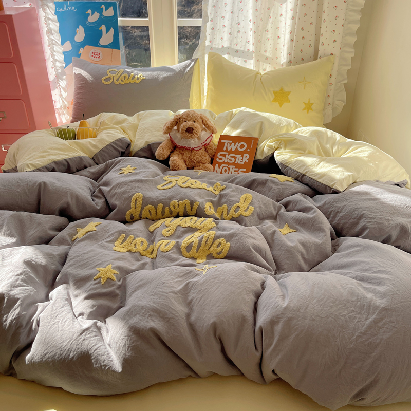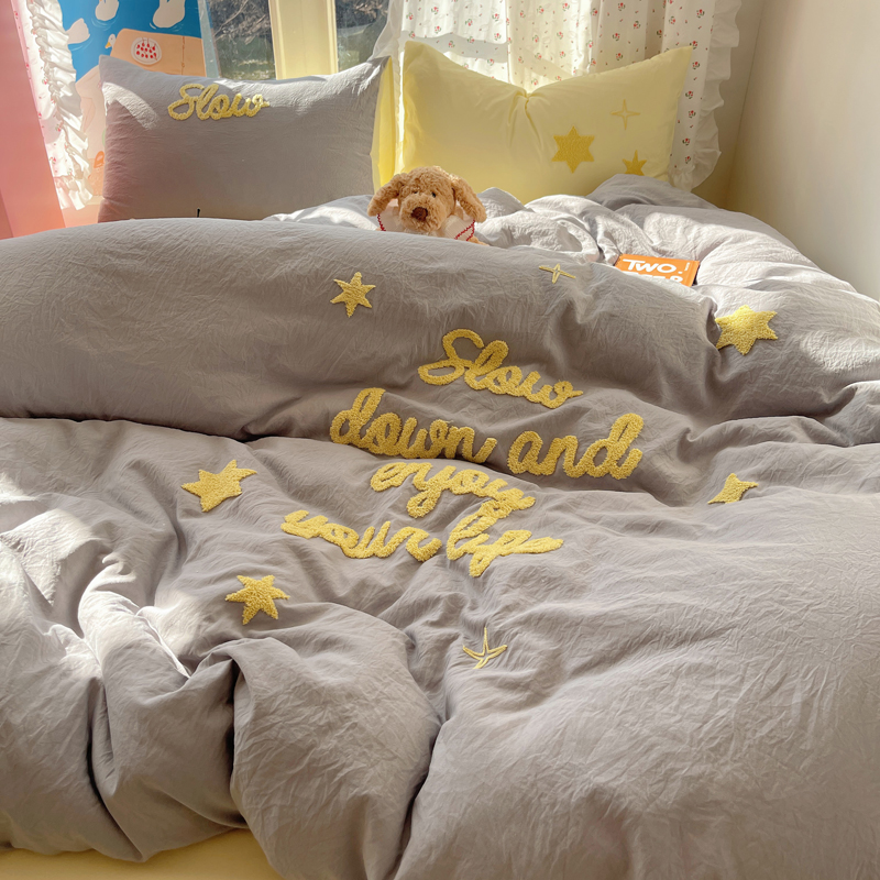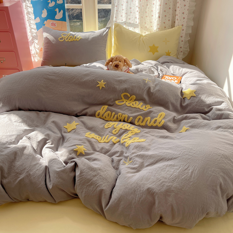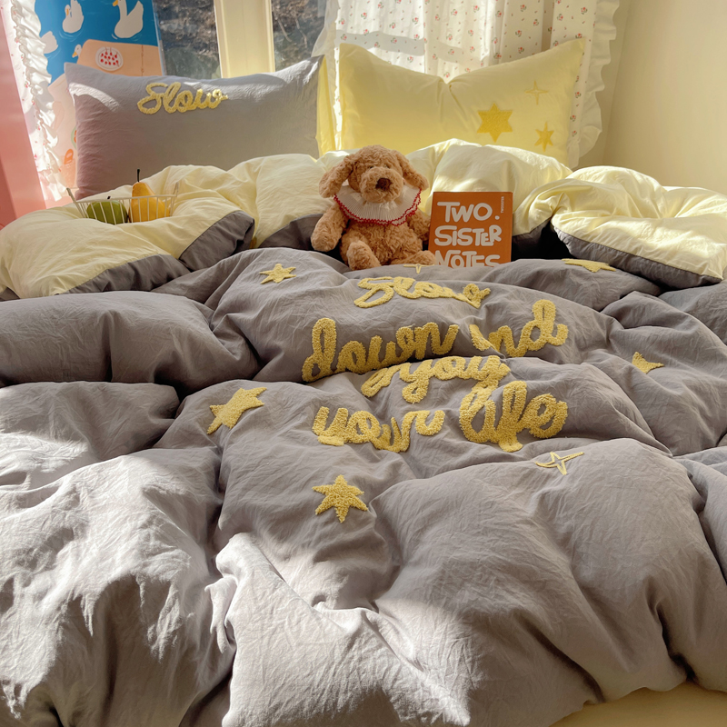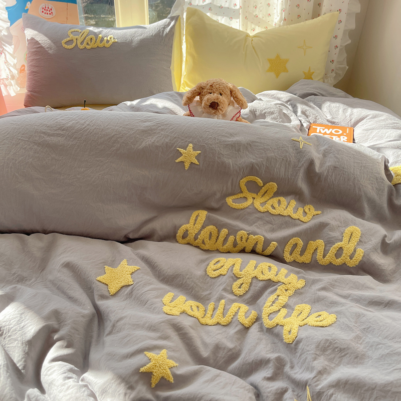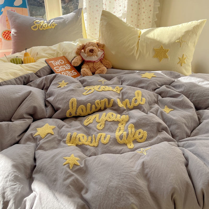 顾里家纺 2025新款ins韩系童趣毛巾绣云朵棉四件套 星空