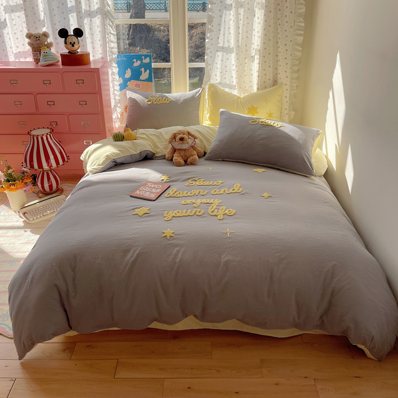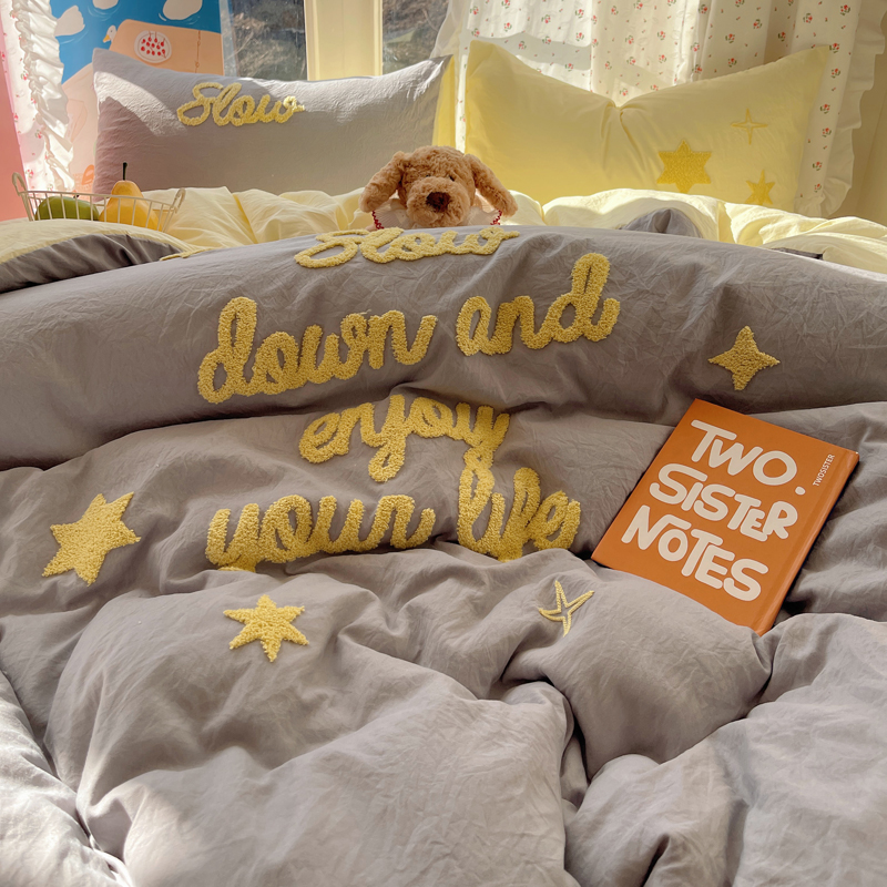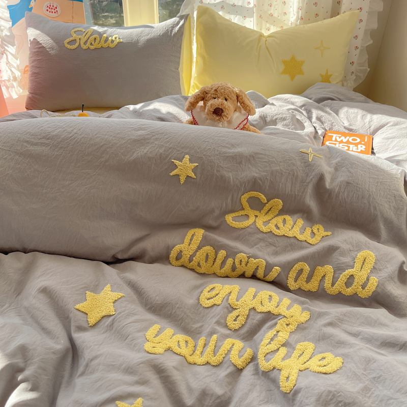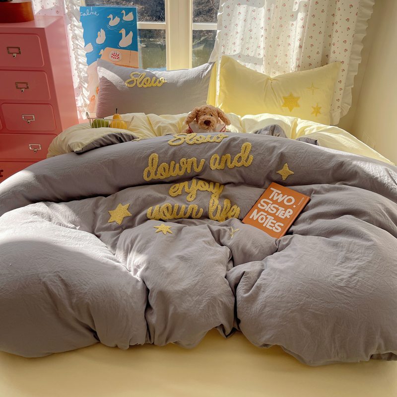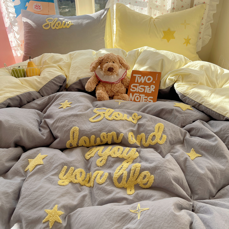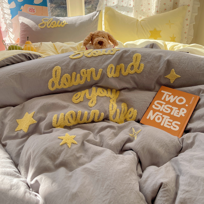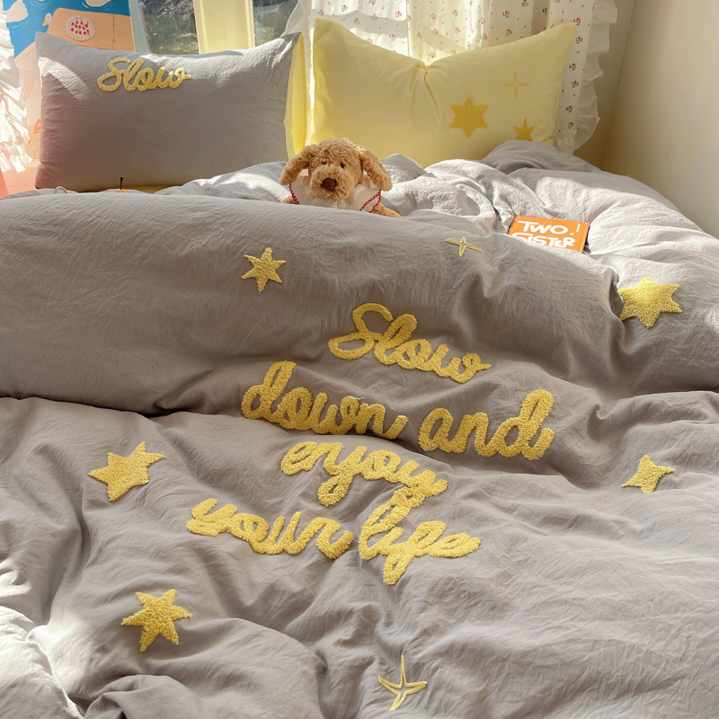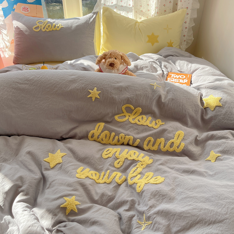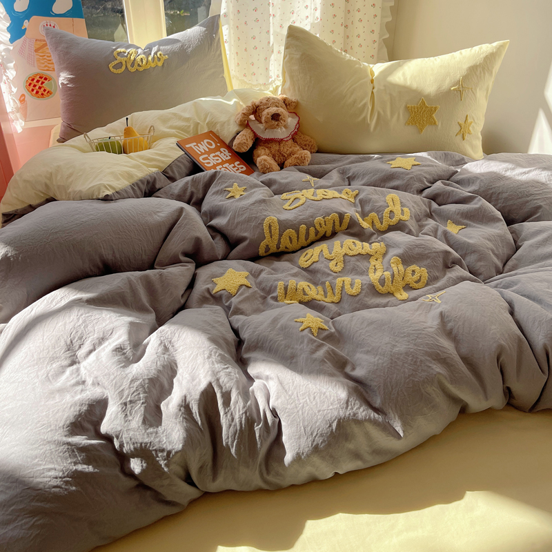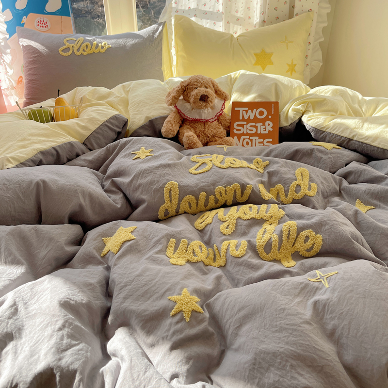 顾里家纺 2025新款ins韩系童趣毛巾绣云朵棉四件套 星空