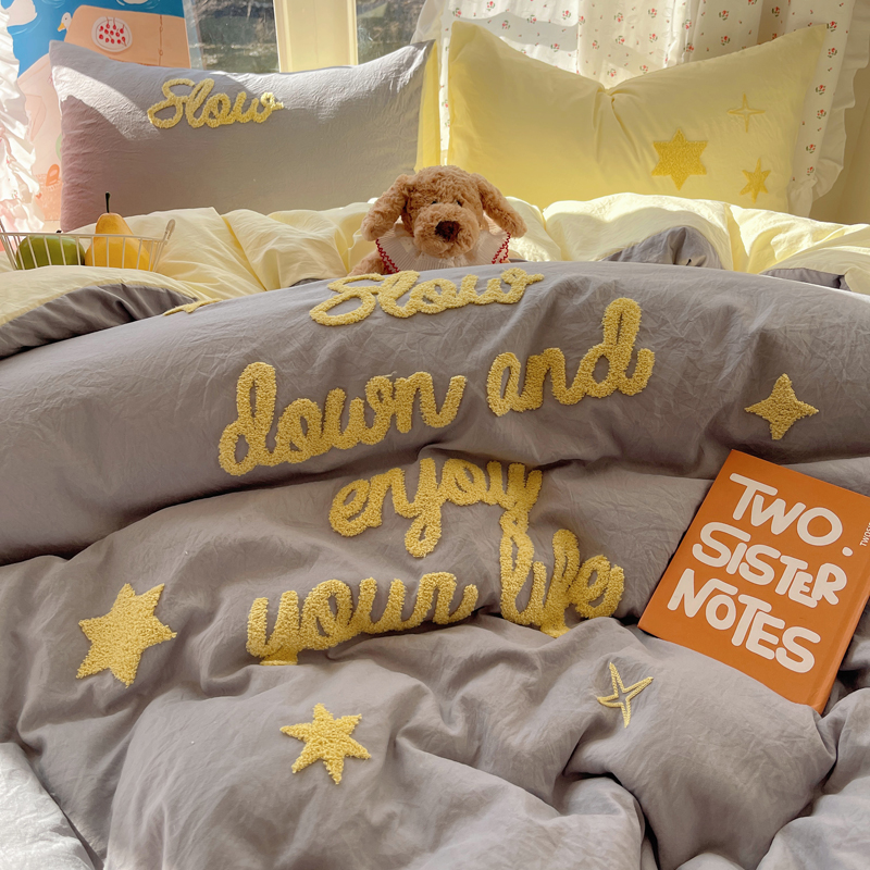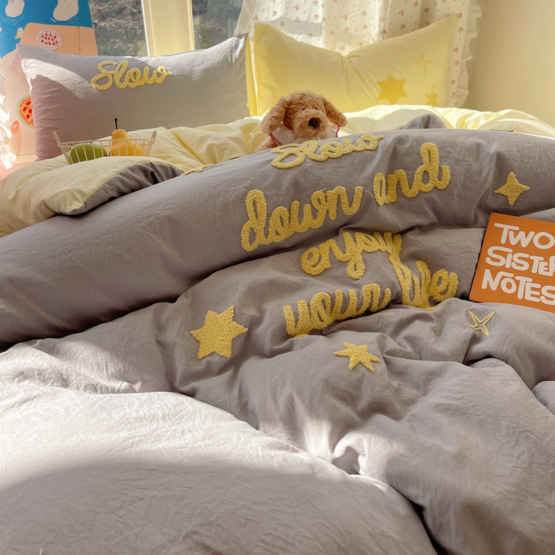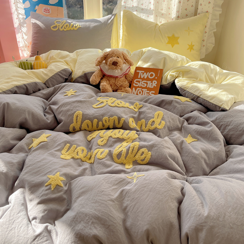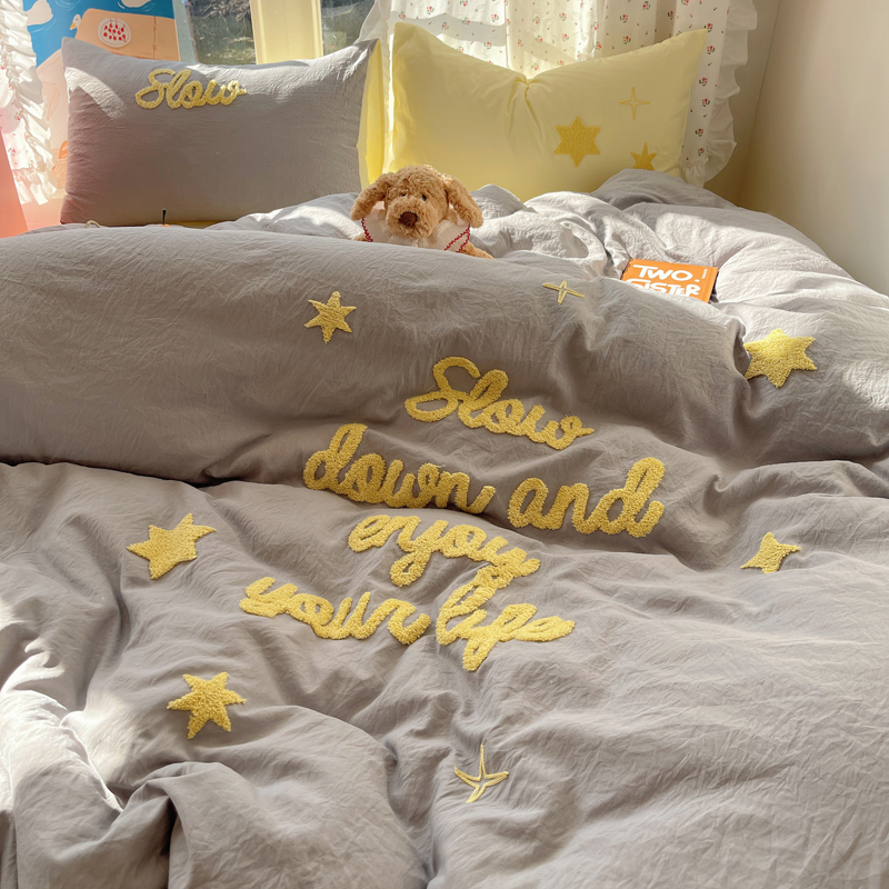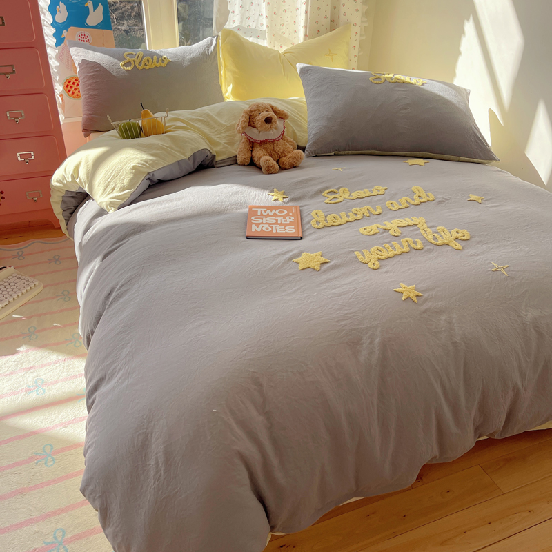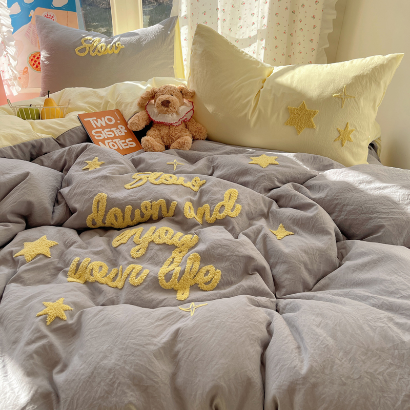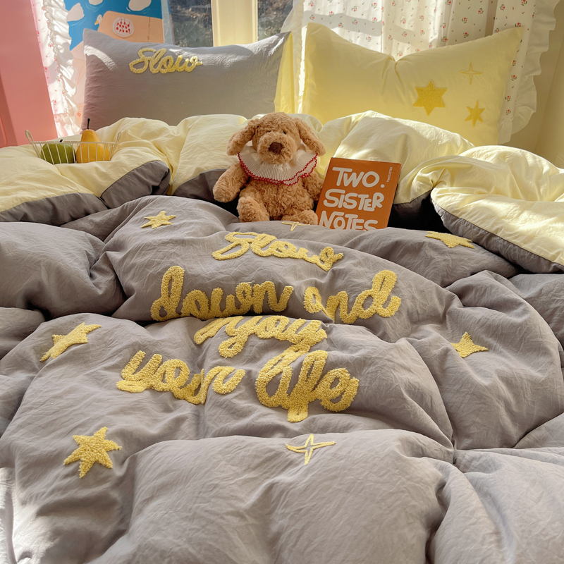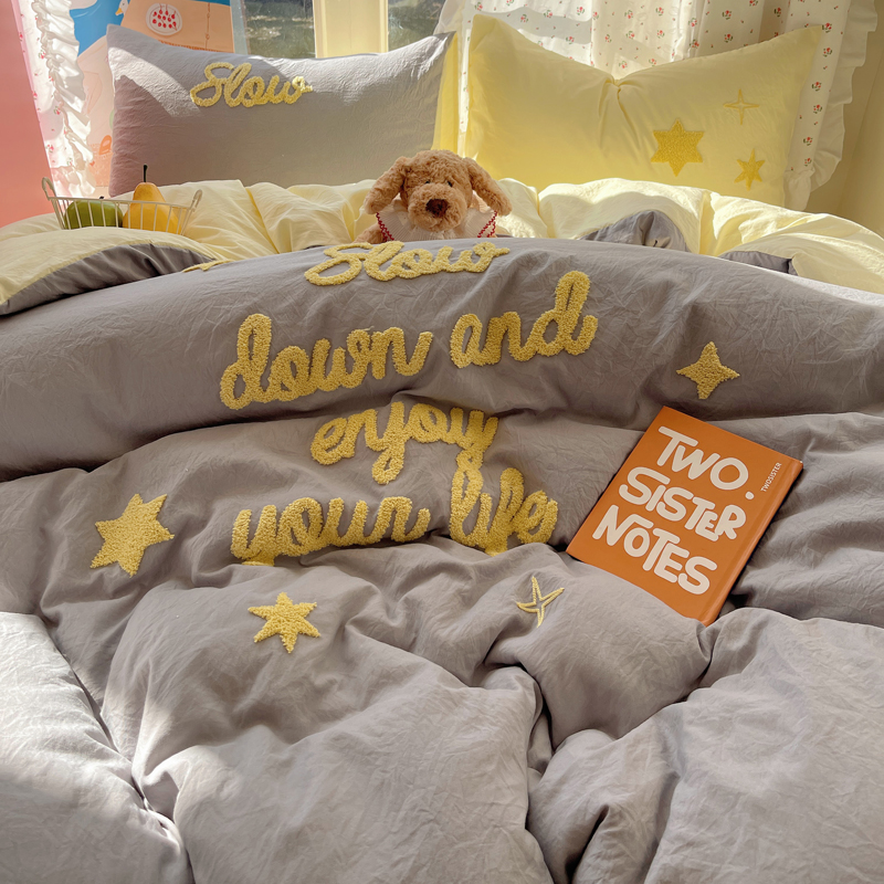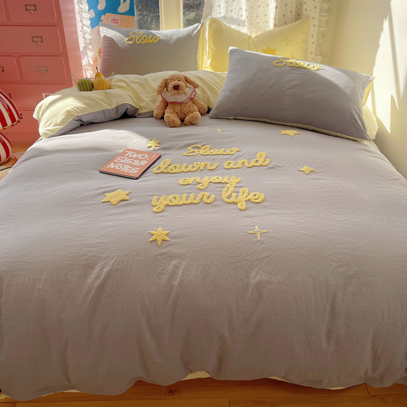 顾里家纺 2025新款ins韩系童趣毛巾绣云朵棉四件套 星空