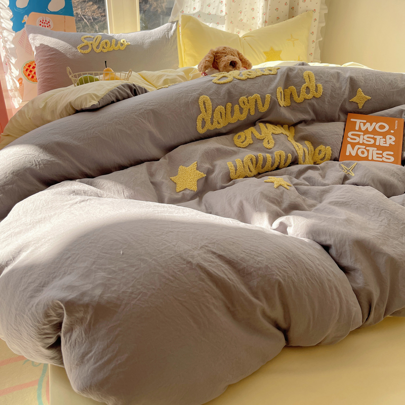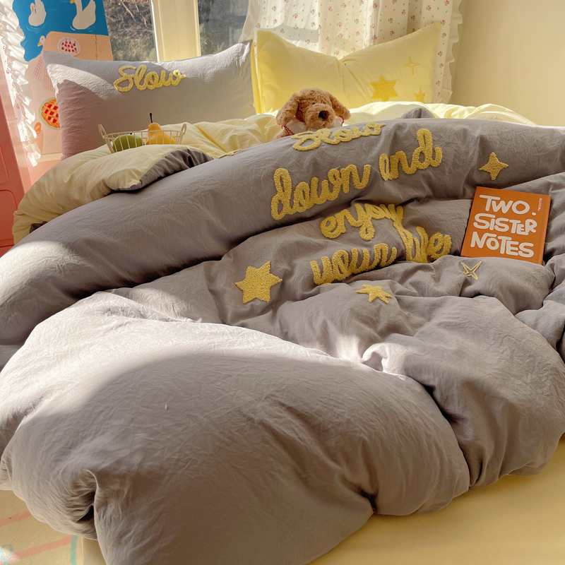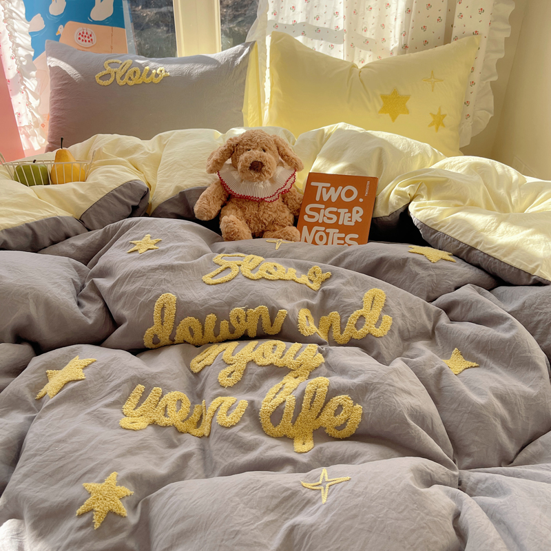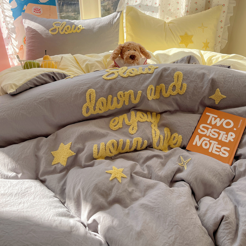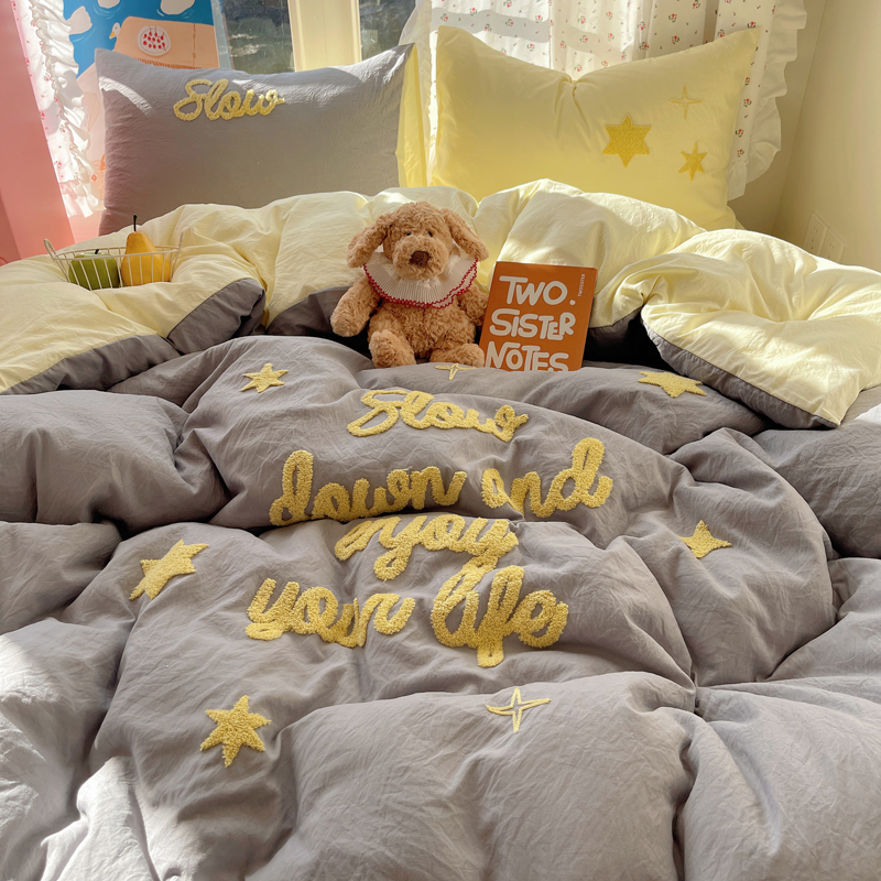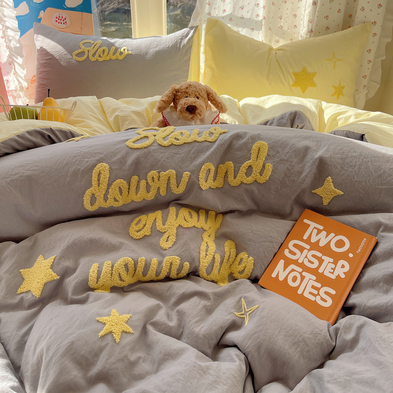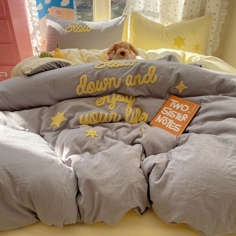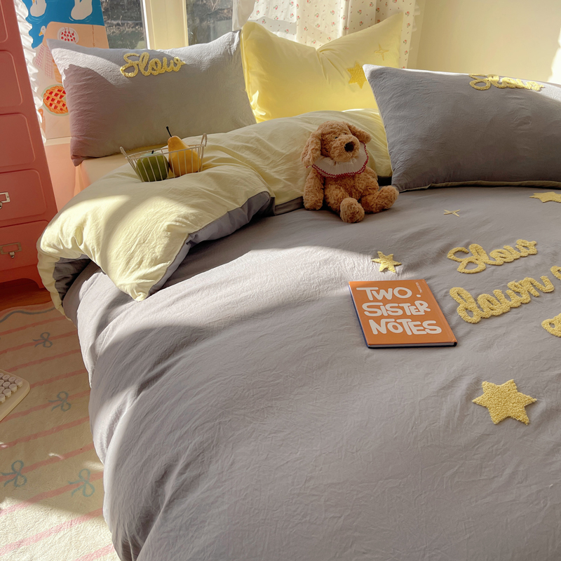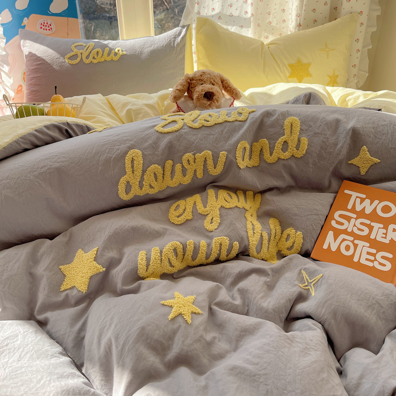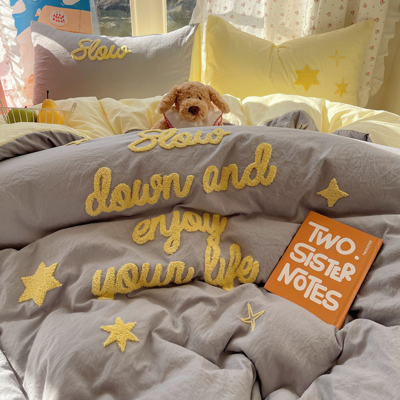顾里家纺 2025新款ins韩系童趣毛巾绣云朵棉四件套 星空