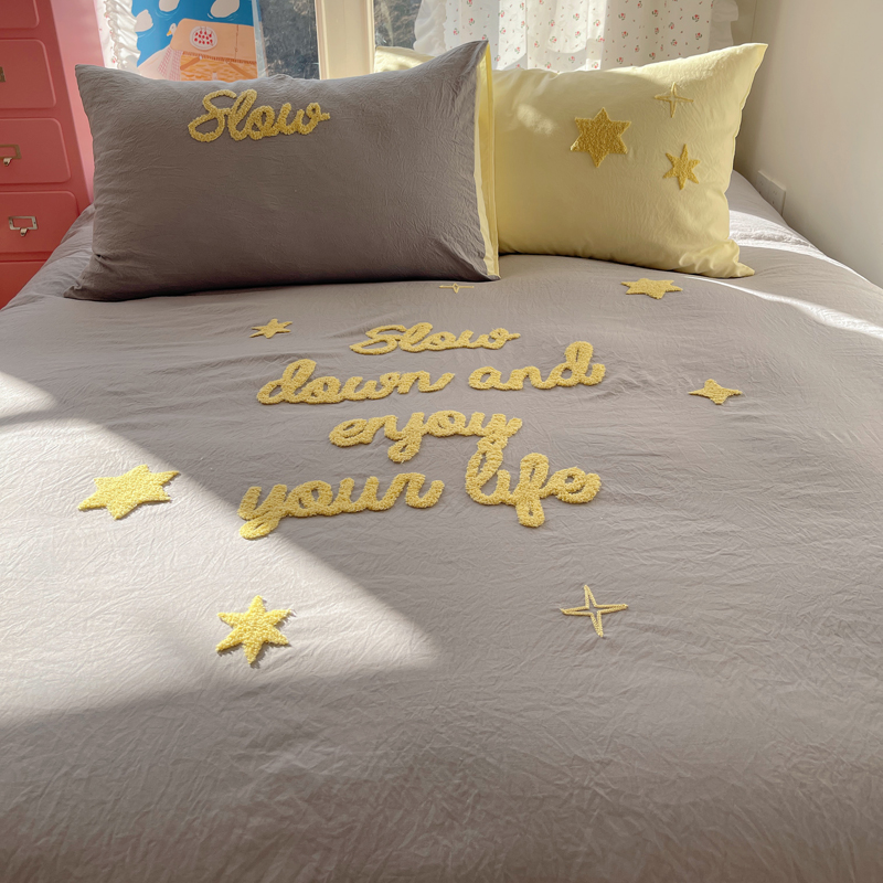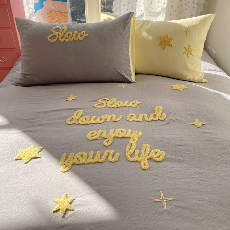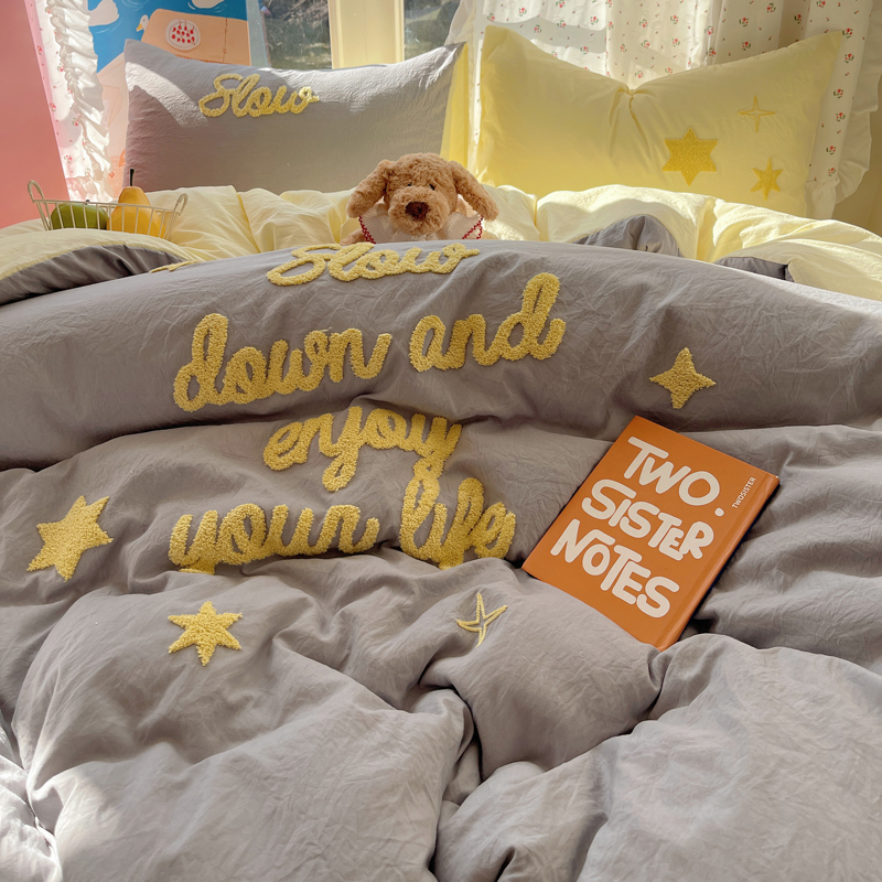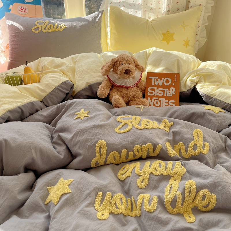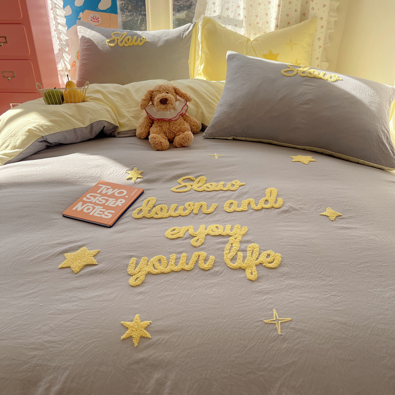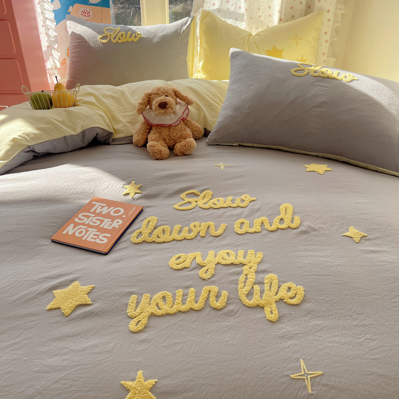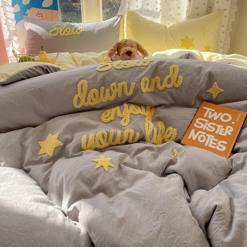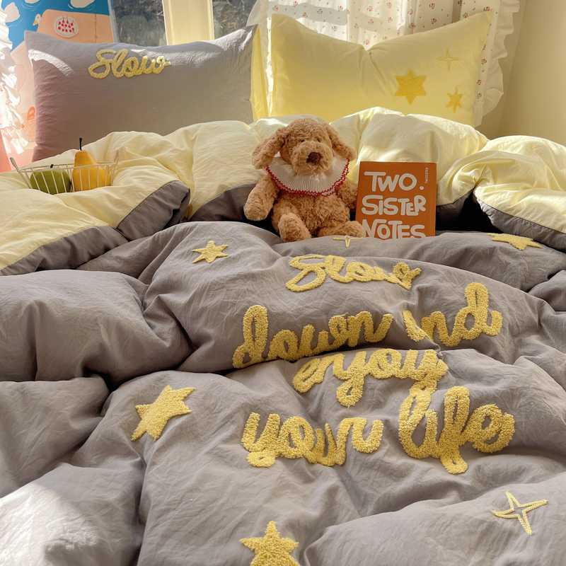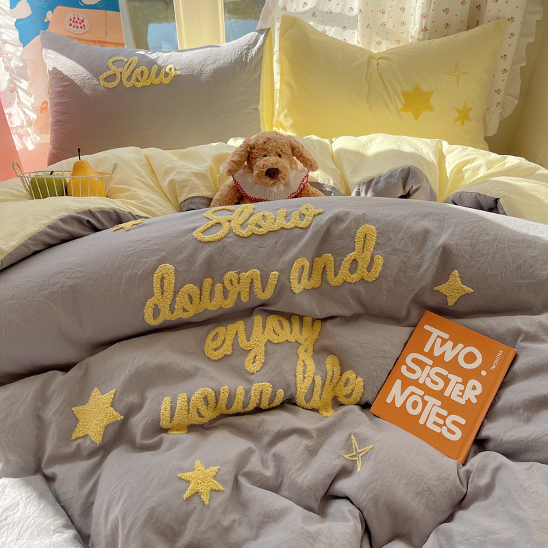 顾里家纺 2025新款ins韩系童趣毛巾绣云朵棉四件套 星空