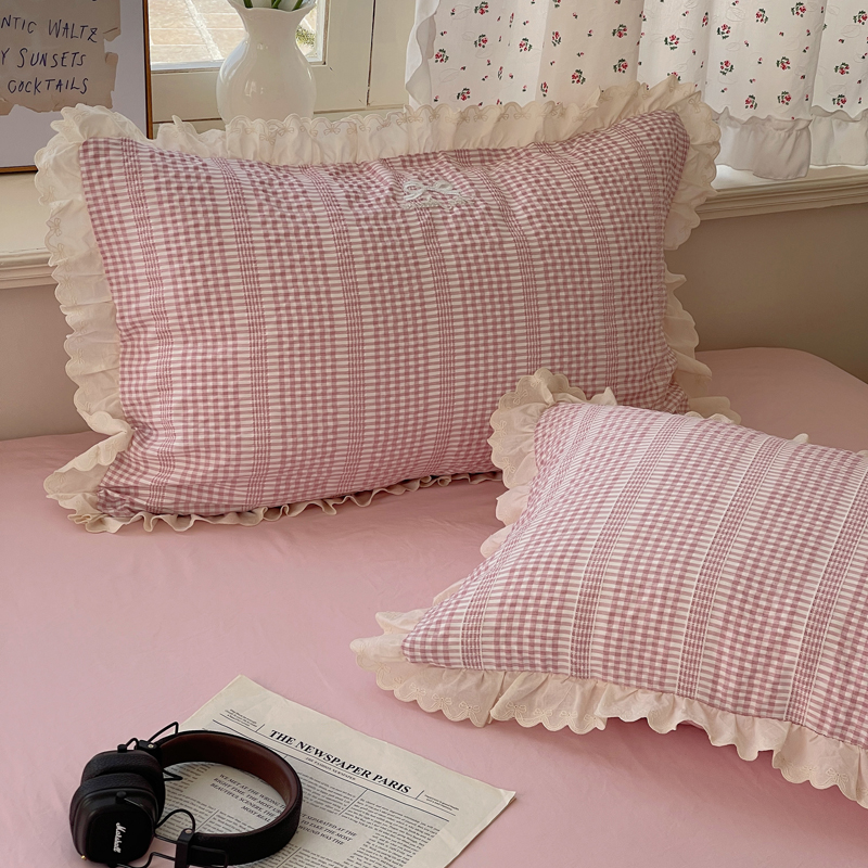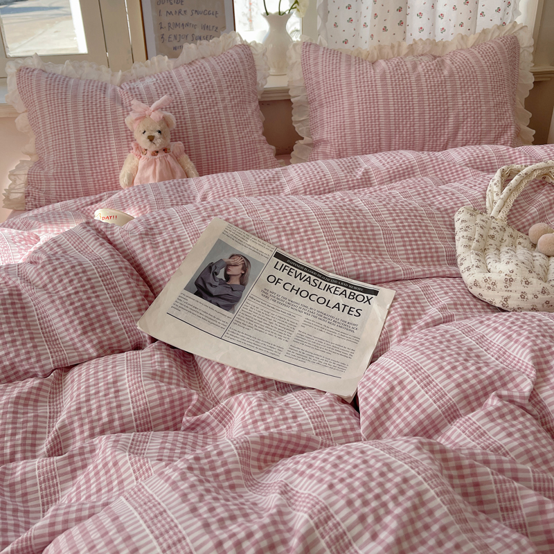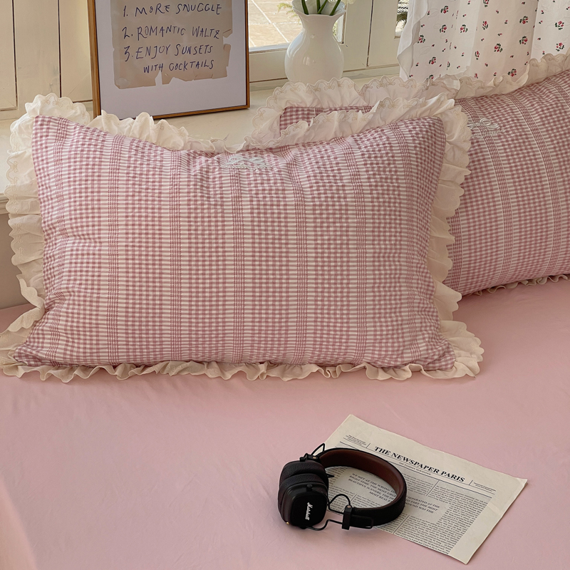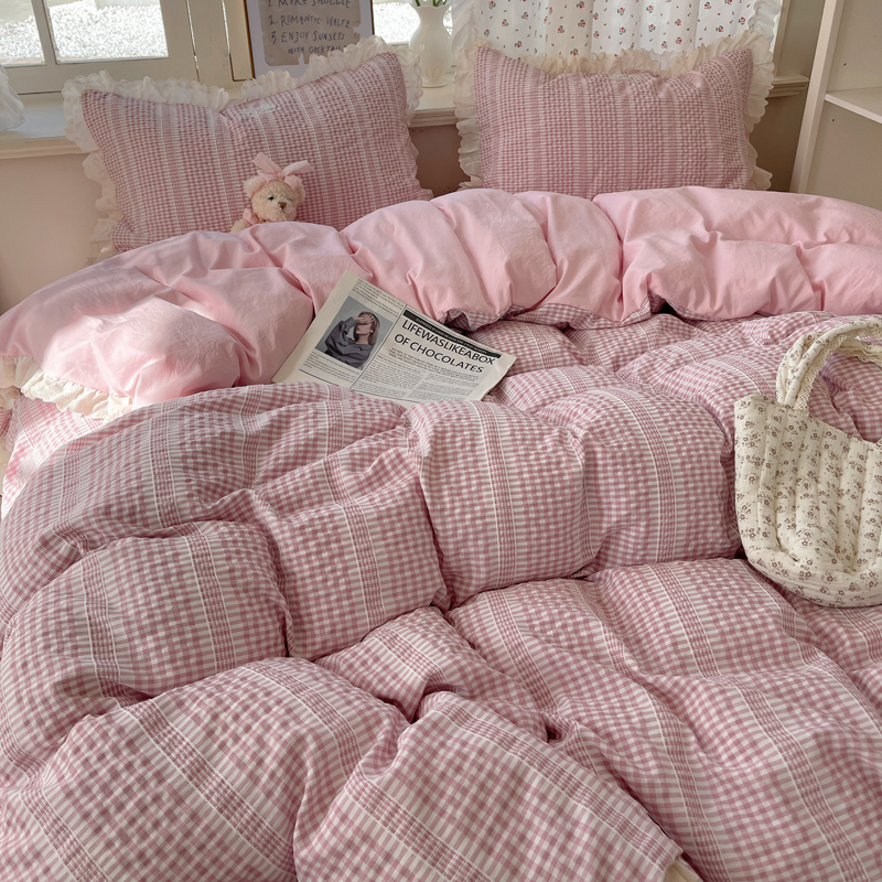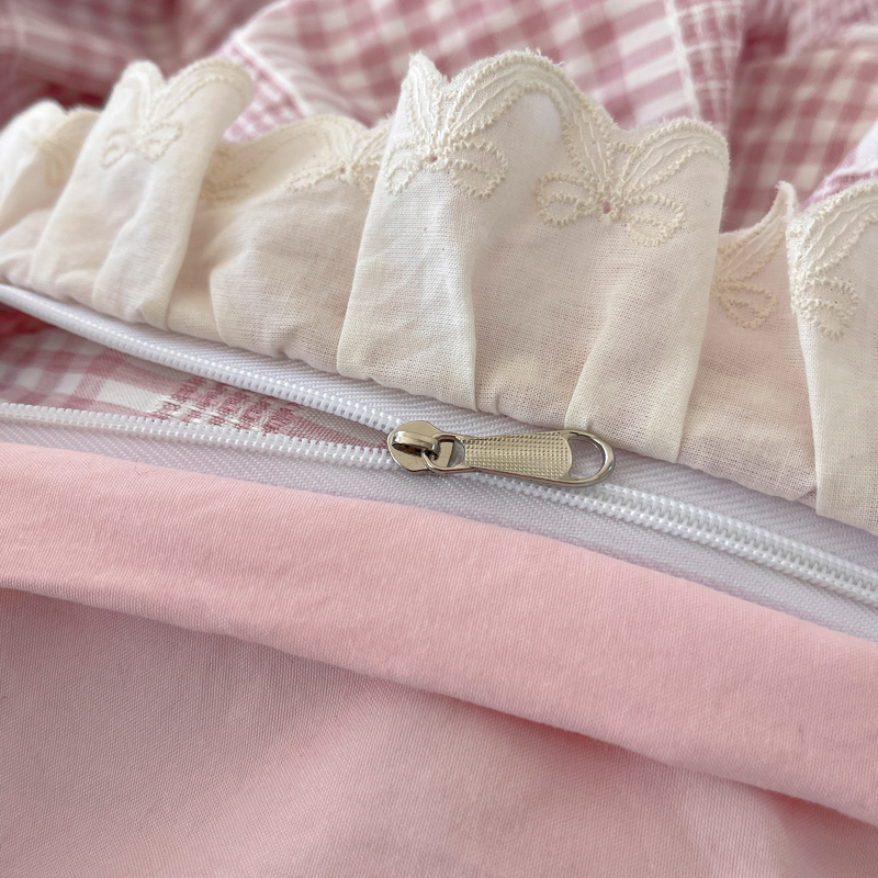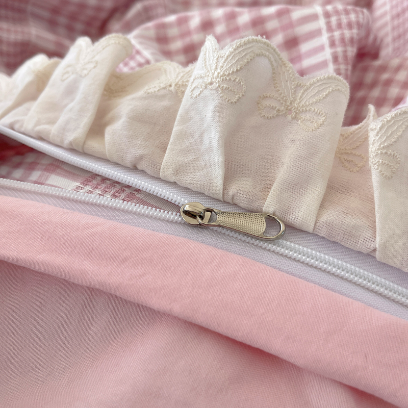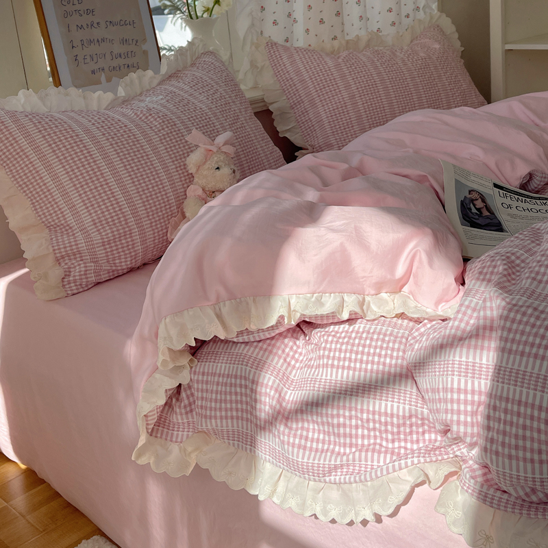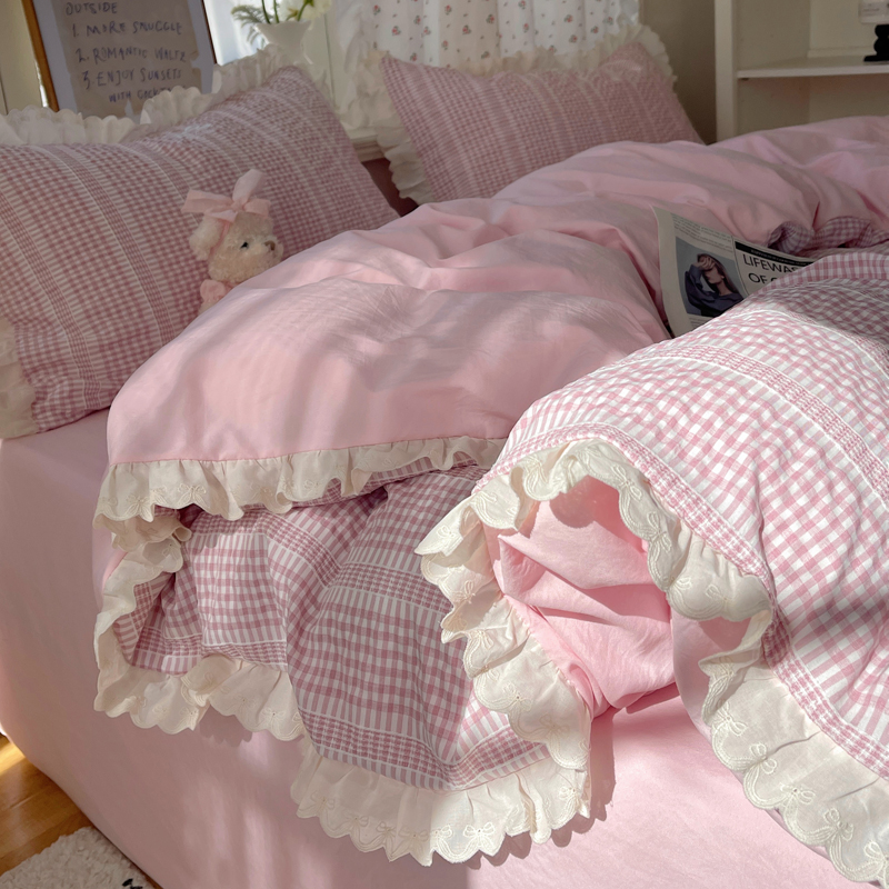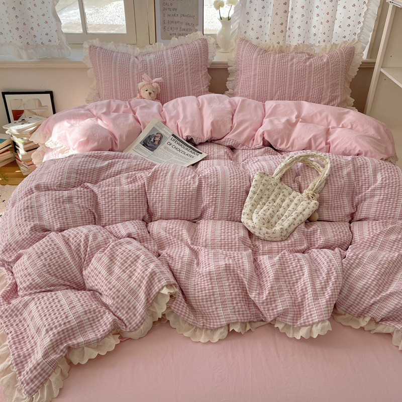 商品名称:轻奢坊 2025新款色织提花格子水洗棉仙仙花边安妮四件套 花边安妮-粉