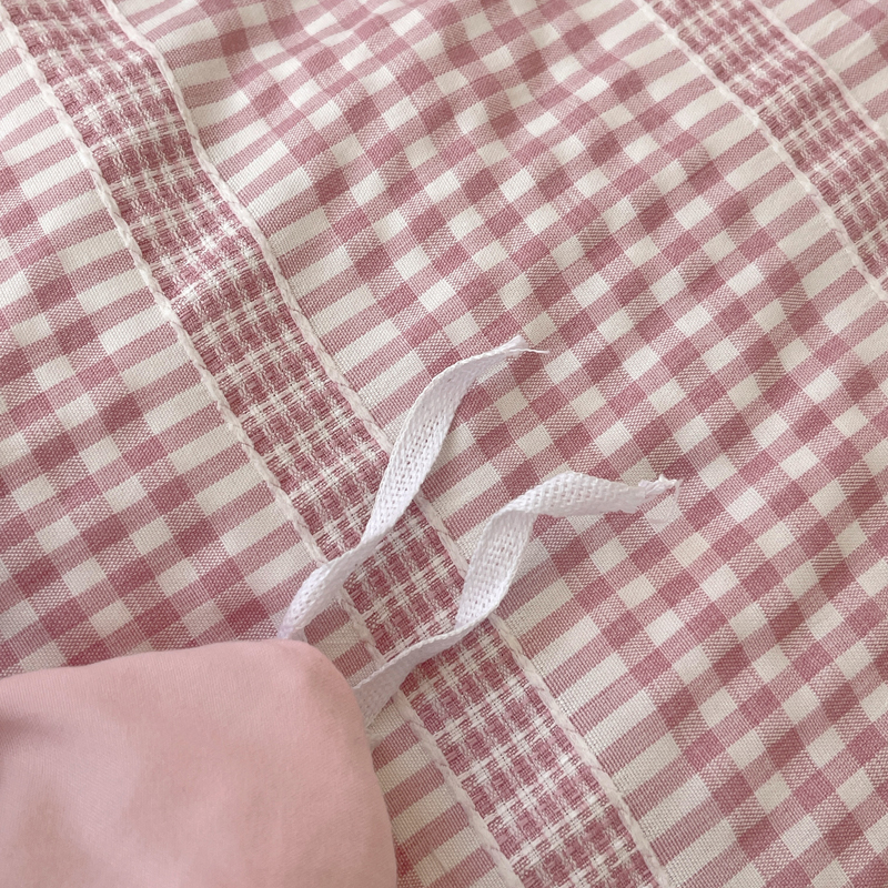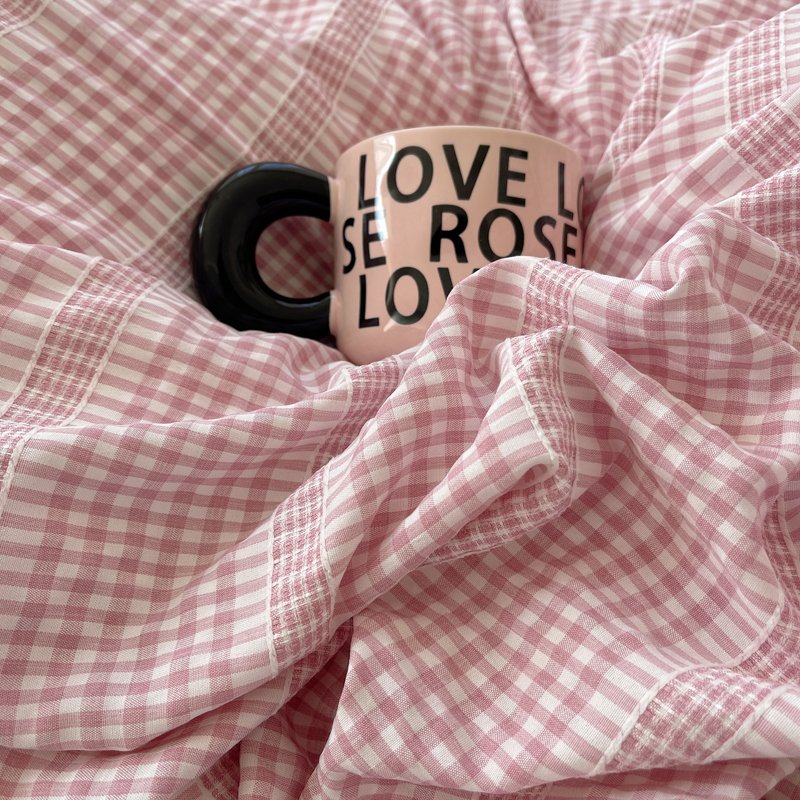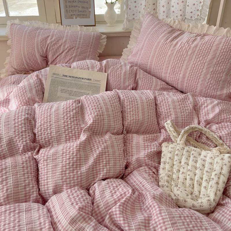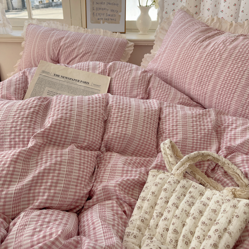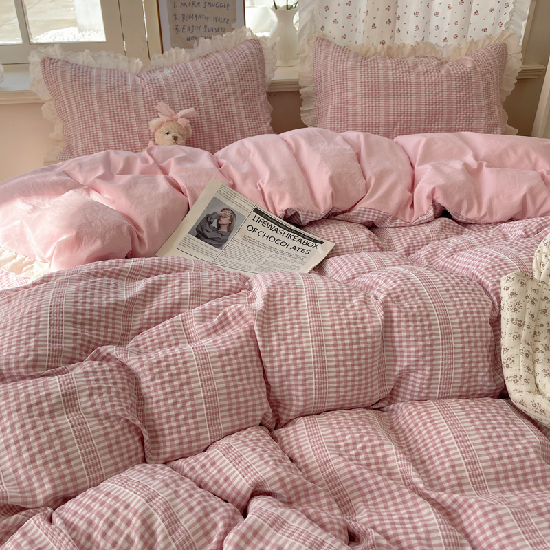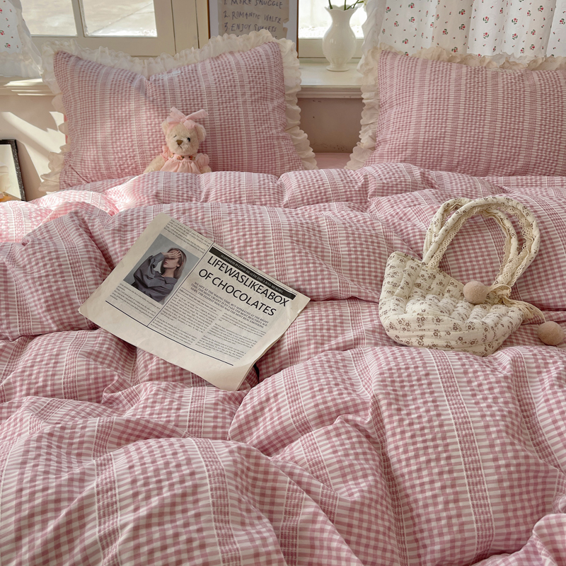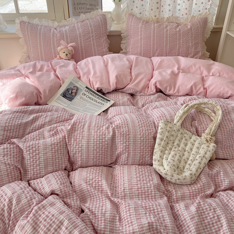 轻奢坊 2025新款色织提花格子水洗棉仙仙花边安妮四件套 花边安妮-粉