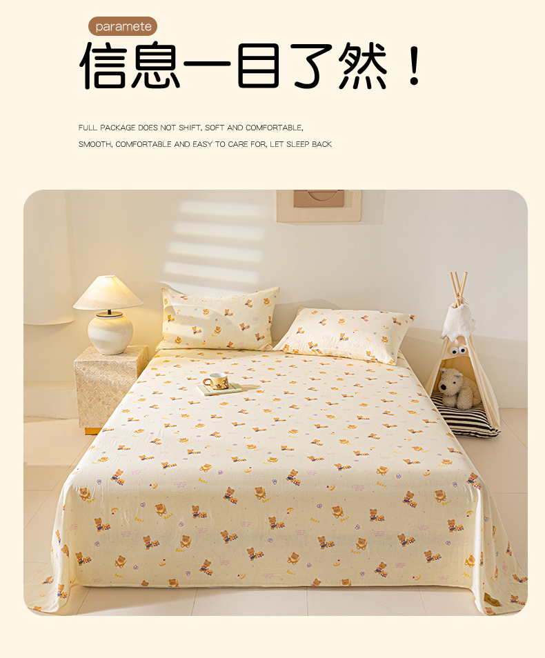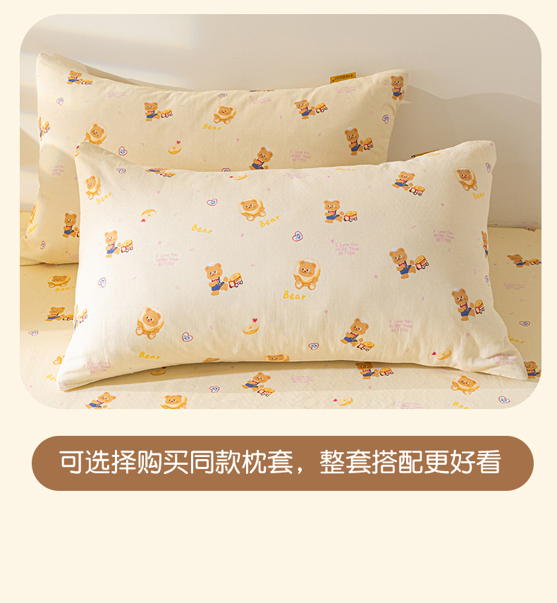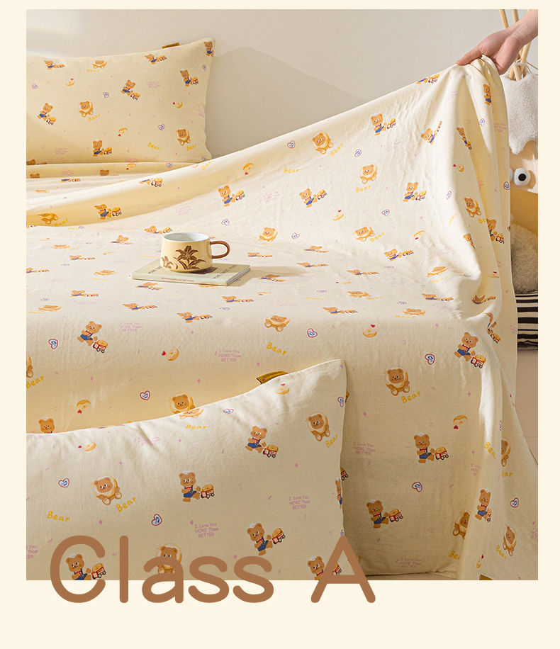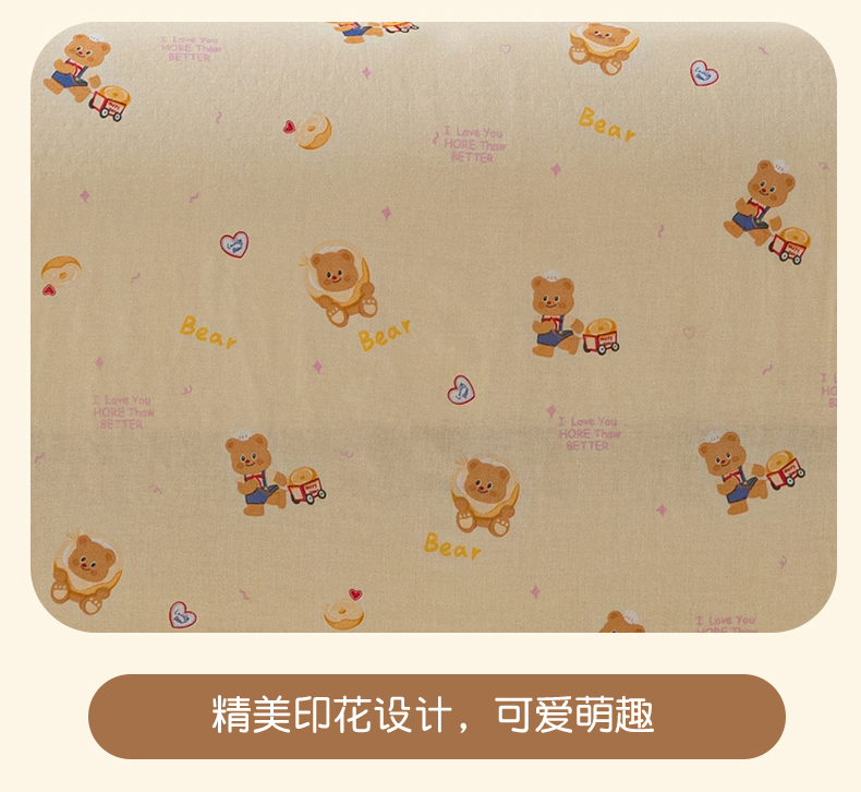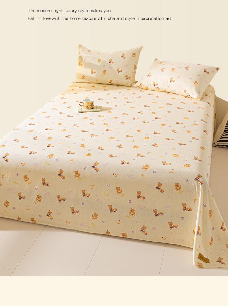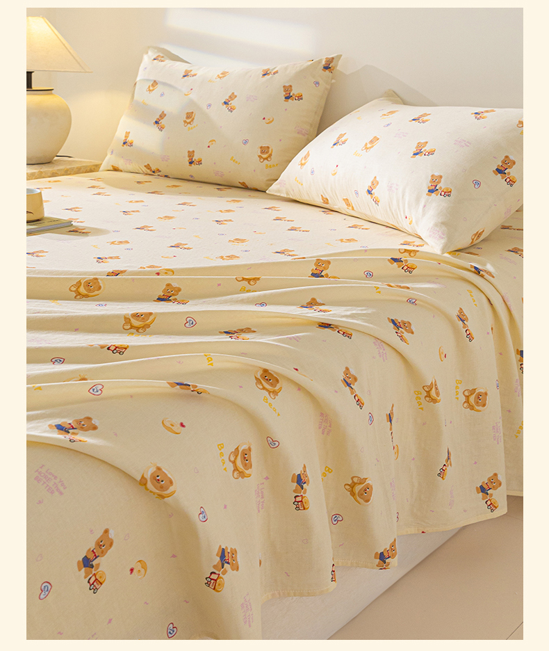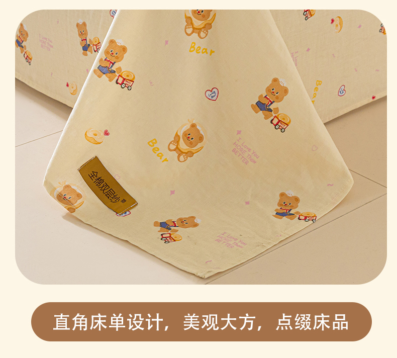 商品名称:2025新款云感皱皱纱印花床单 面包小熊