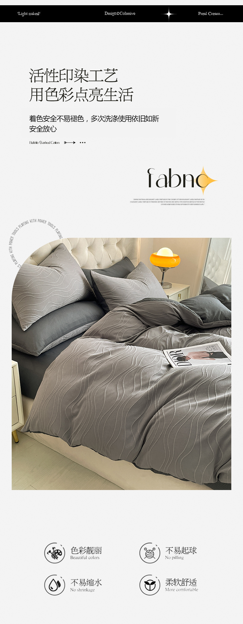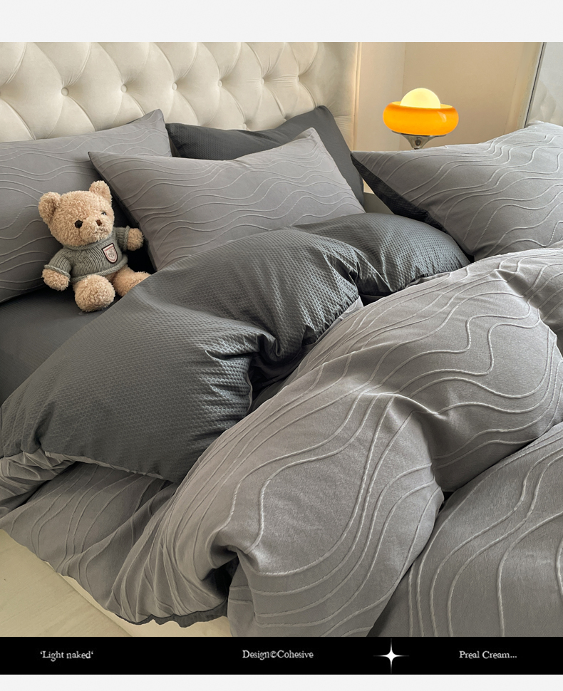 当前位置: 91家纺网 > 商品网购 > 床品套件 > 四件套 > 悦织湾家纺 2025新款色织提花立体四件套 提花立体波浪浅灰深灰
