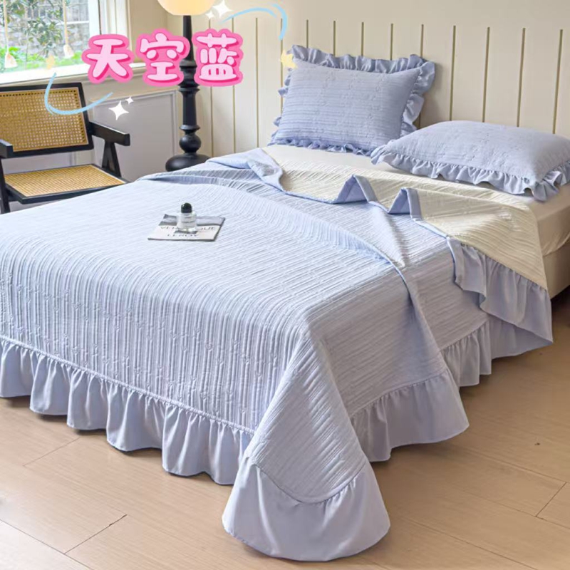 (总)2025新款珍珠棉床盖四件套,蓝色,灰色,粉色,紫色,绿色