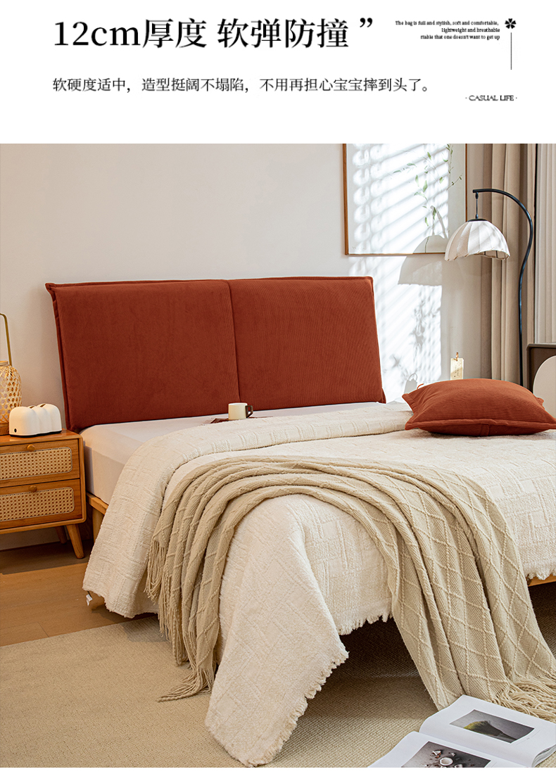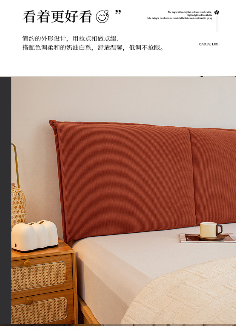 商品名称:沐沐家纺 2026新款灯芯绒床头平板大靠背 樱花粉
