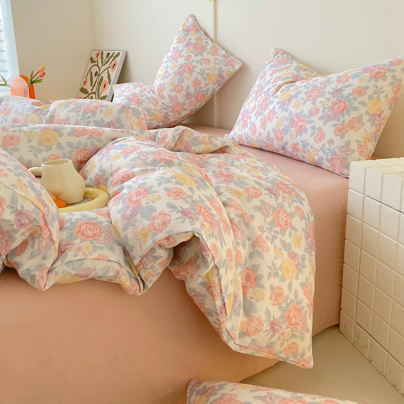 于果 2025新款全棉双层纱四件套第四批 春色