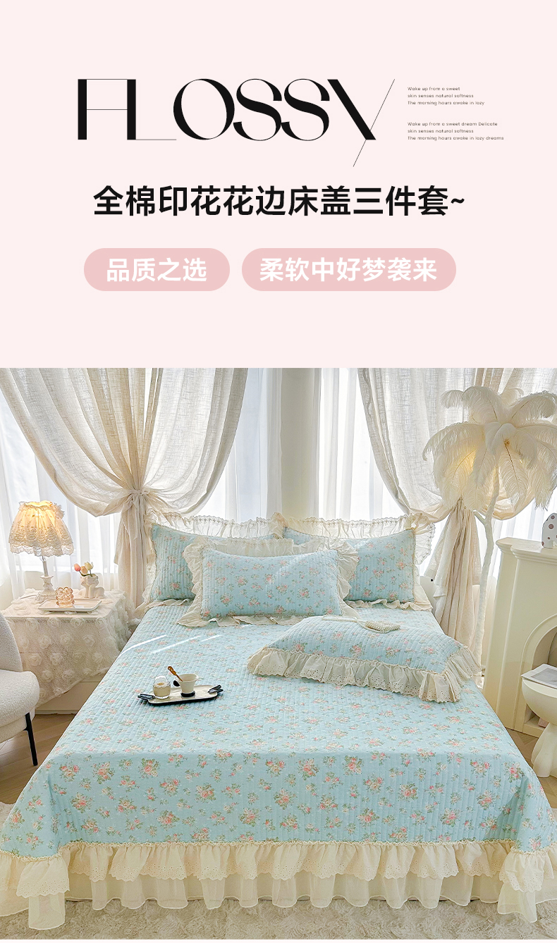 当前位置: 91家纺网 > 商品网购 > 床品套件 > 三件套 > 罗艺轩 2025新款全棉印花花边床盖三件套 幽幽暗香