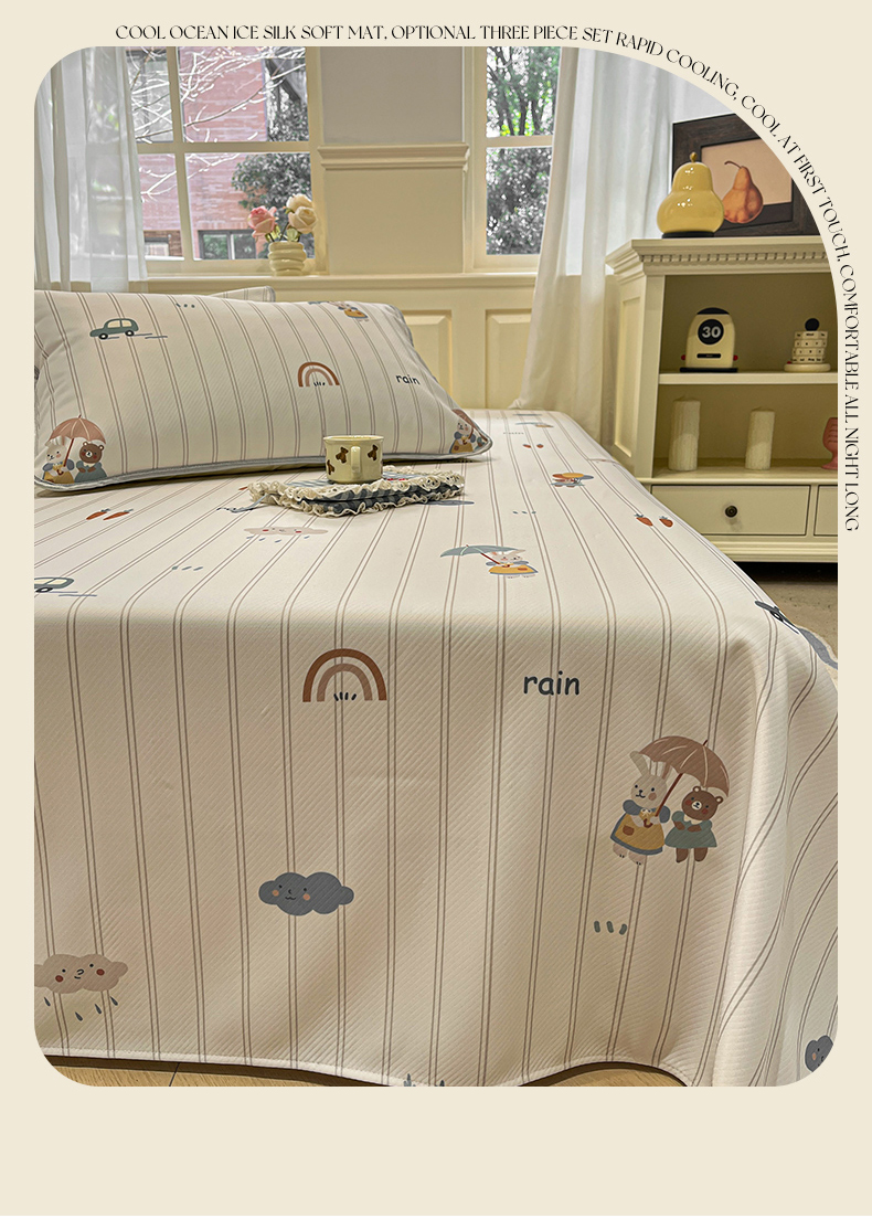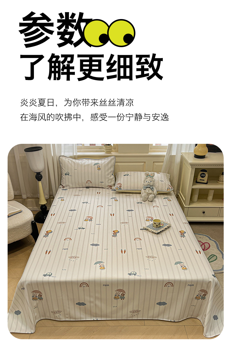 星座家纺 2025新款斜纹提花凉感丝凉席床单款三件套 悠悠小元