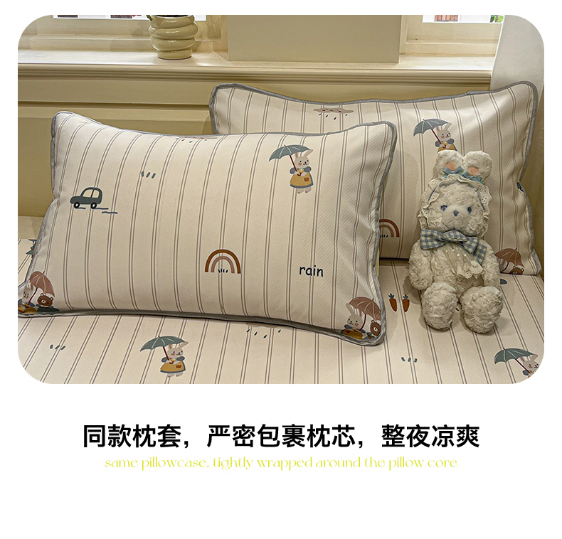 商品名称:星座家纺 2025新款斜纹提花凉感丝凉席床单款三件套 悠悠小元
