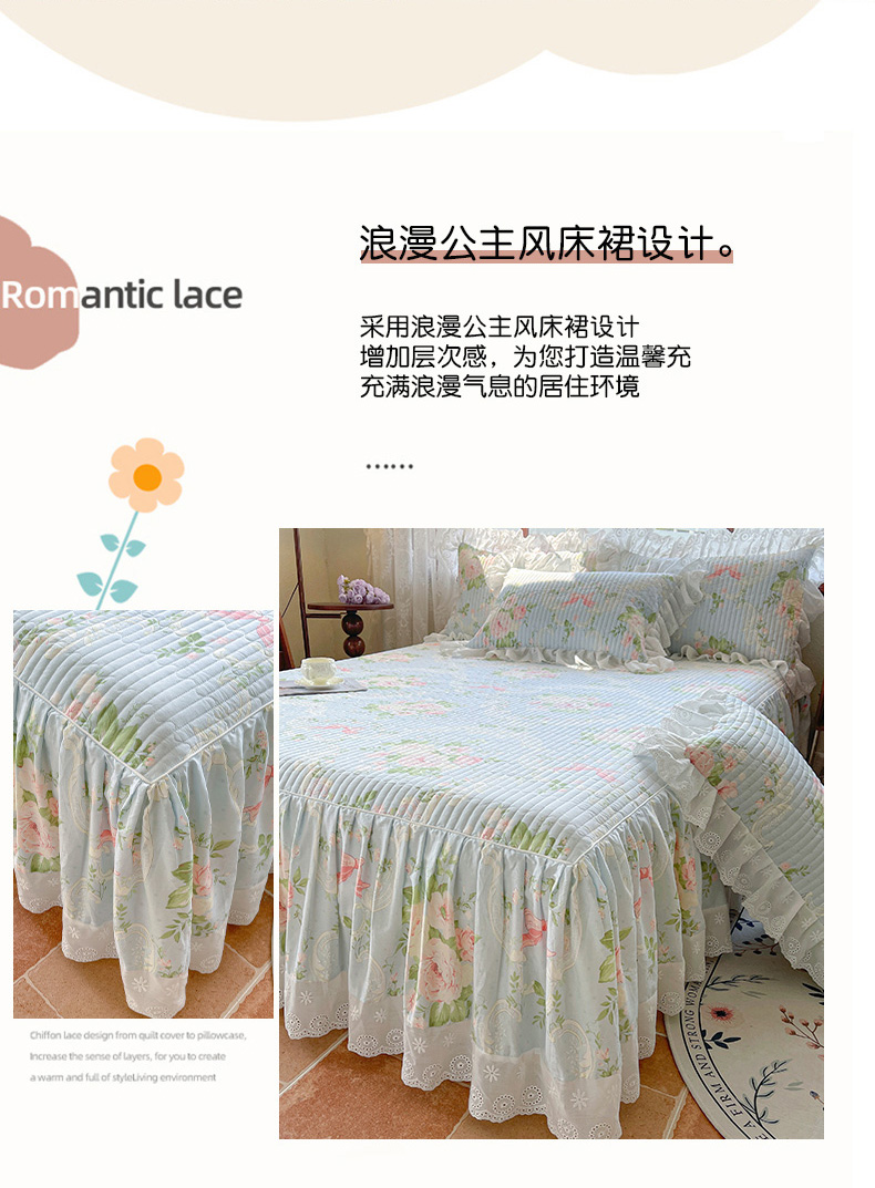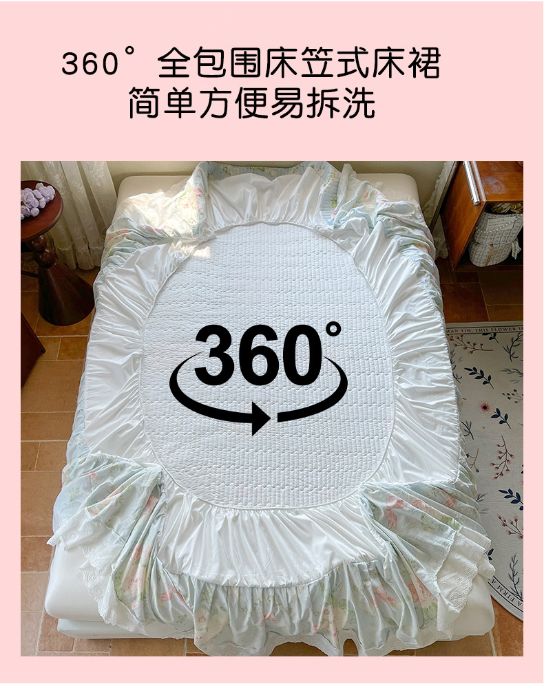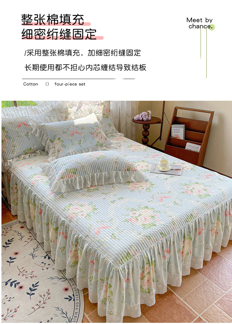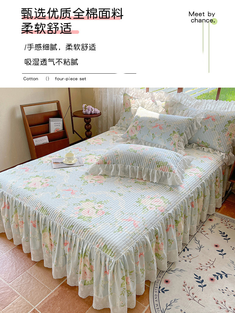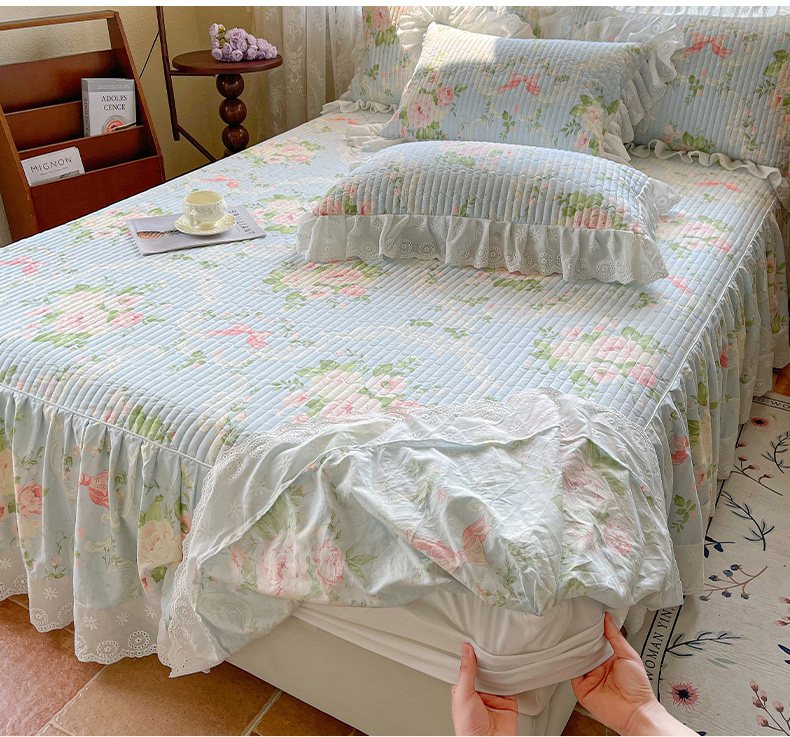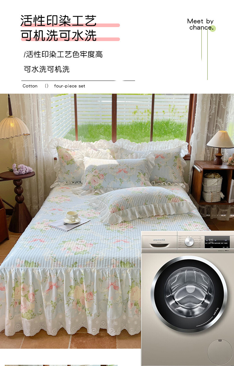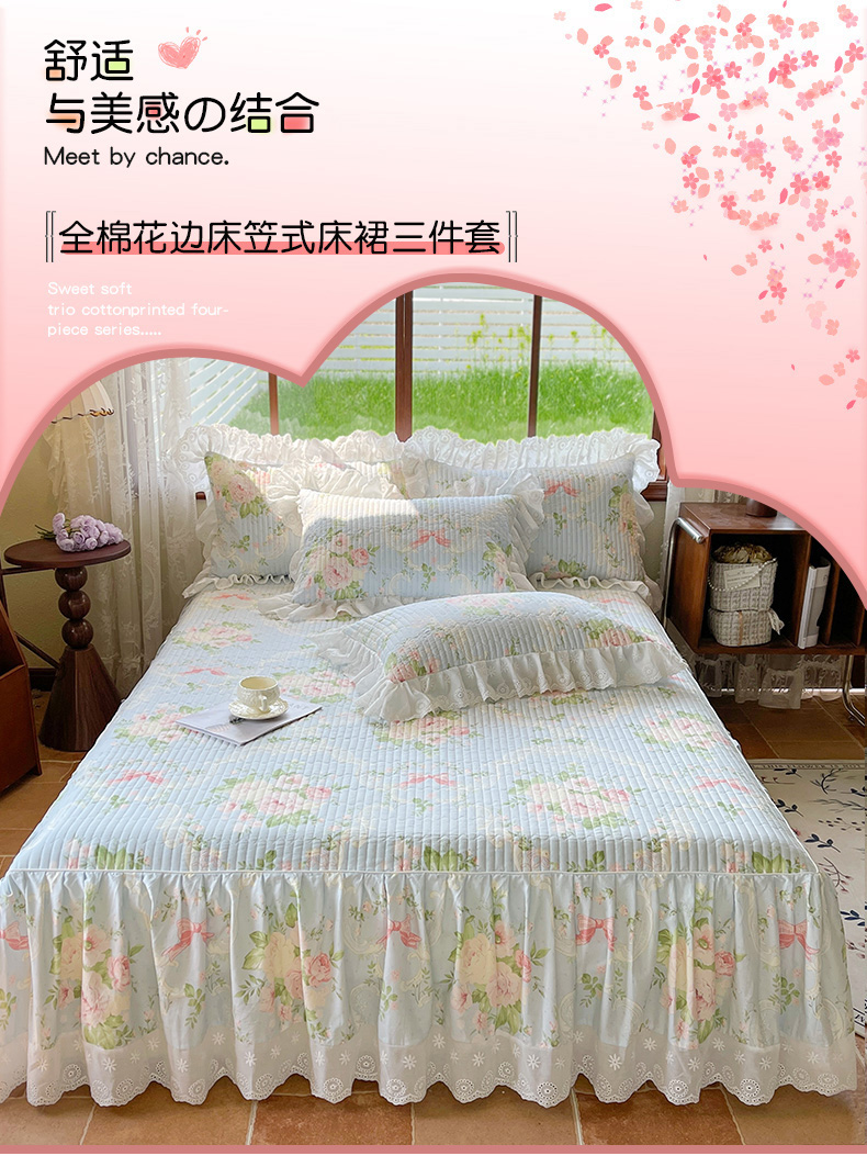 当前位置: 91家纺网 > 商品网购 > 床品套件 > 三件套 > 罗艺轩 2025新款全棉印花床笠式床裙三件套 织夏花园-蓝