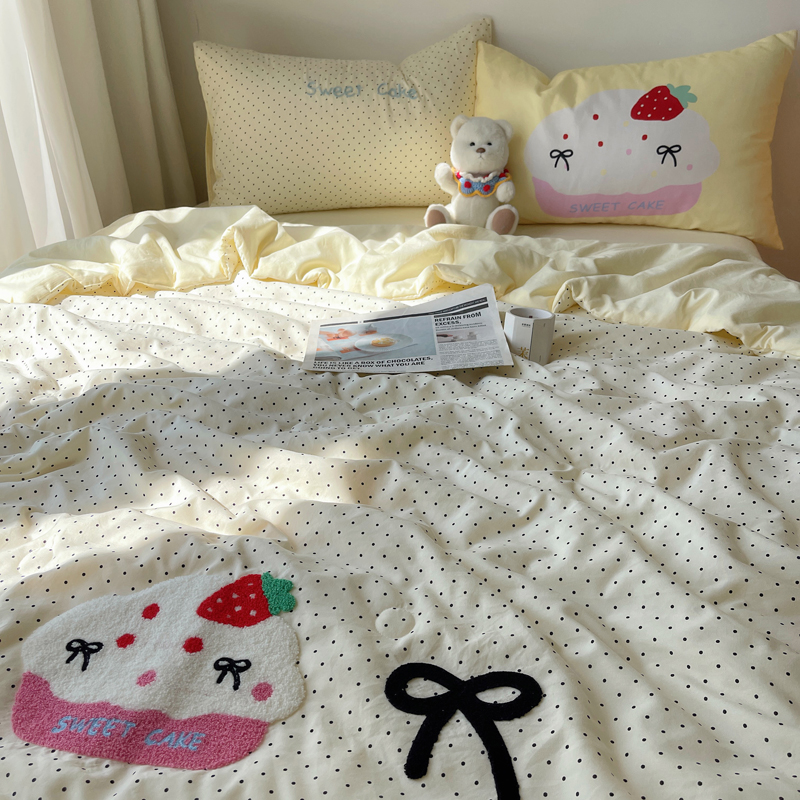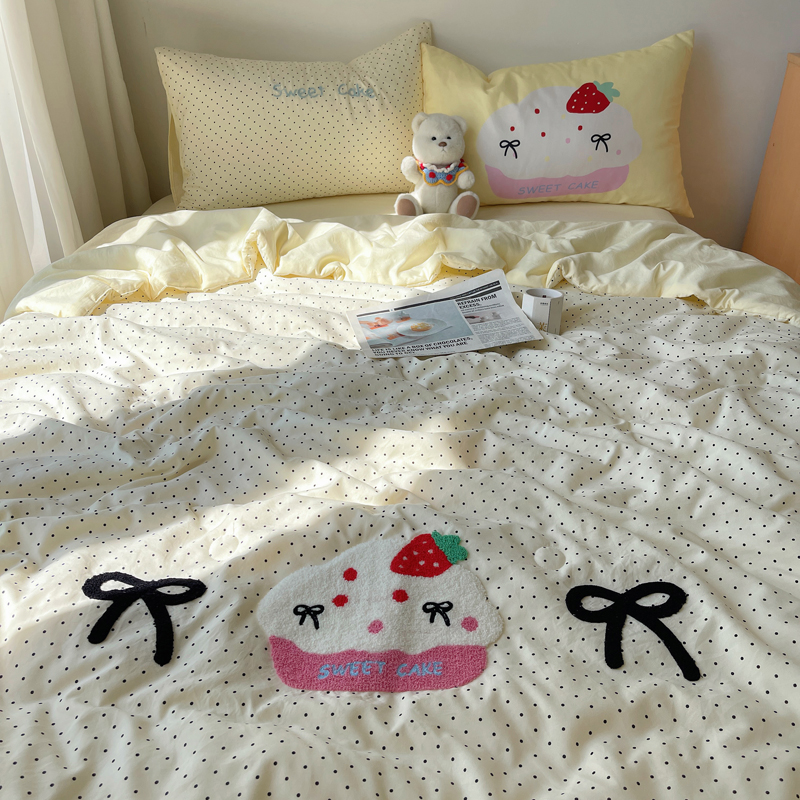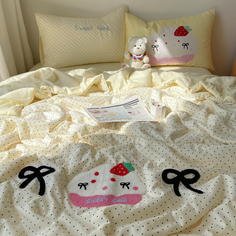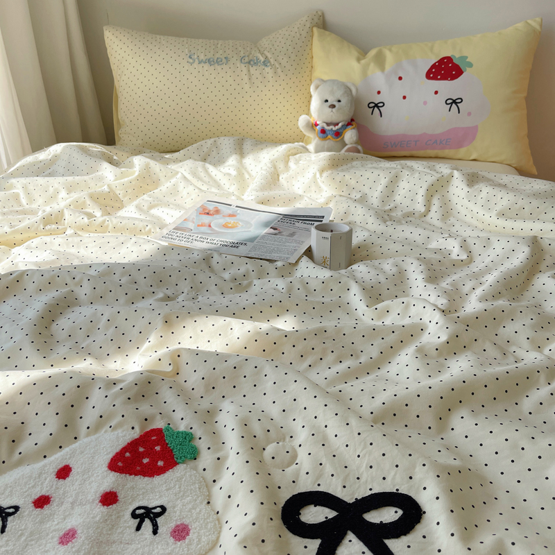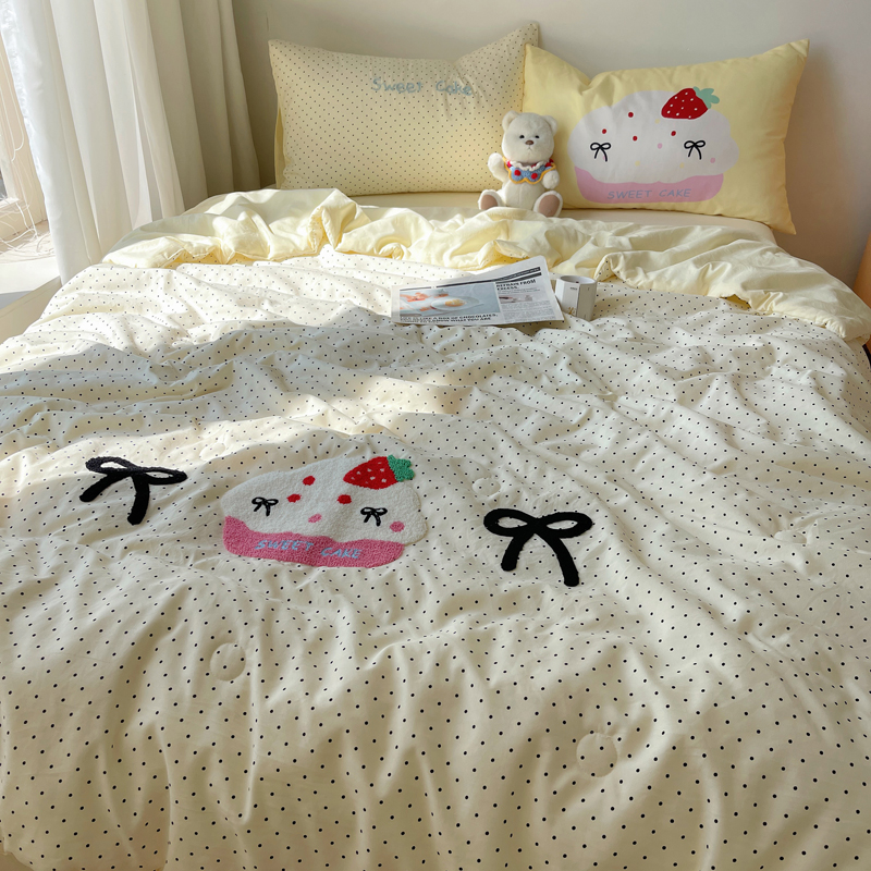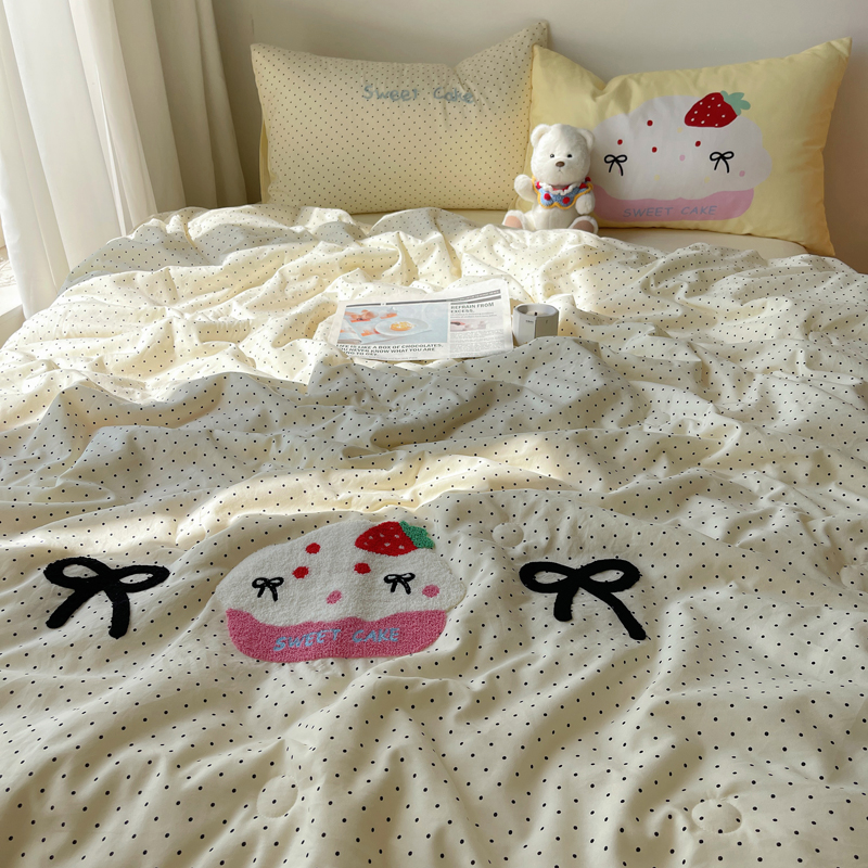 商品名称:桃喜 2025新款水洗棉毛巾绣单夏被被子被芯夏被套件(非全棉)系列1 波点草莓蛋糕