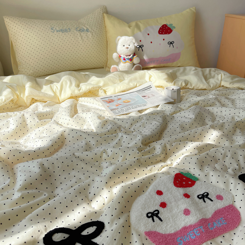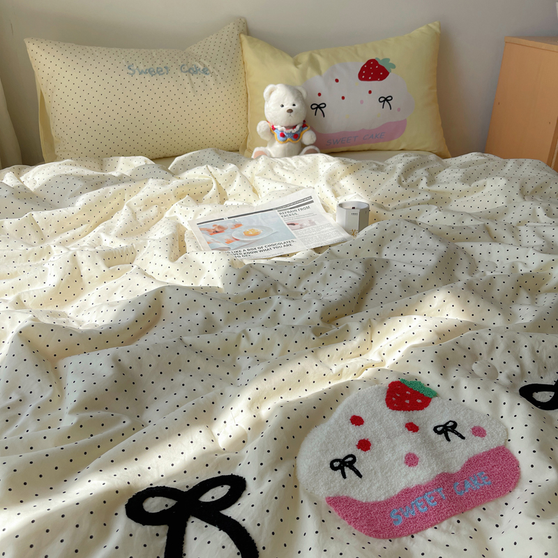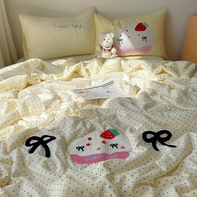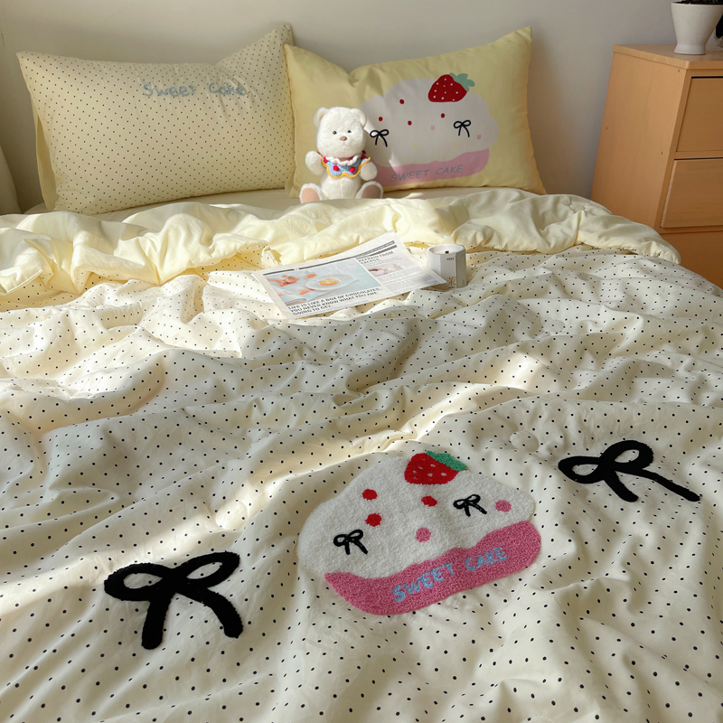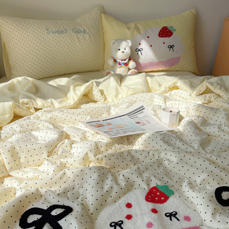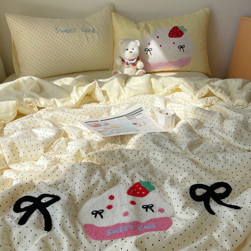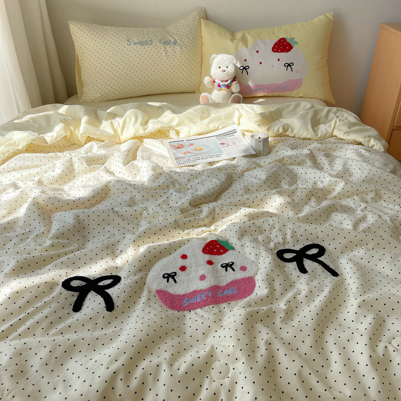 商品名称:桃喜 2025新款水洗棉毛巾绣单夏被被子被芯夏被套件(非全棉)系列1 波点草莓蛋糕