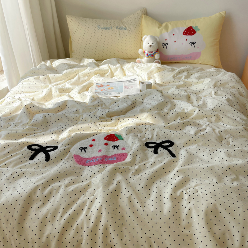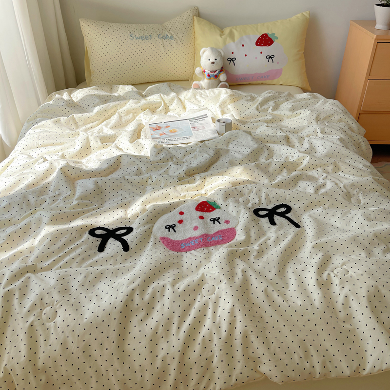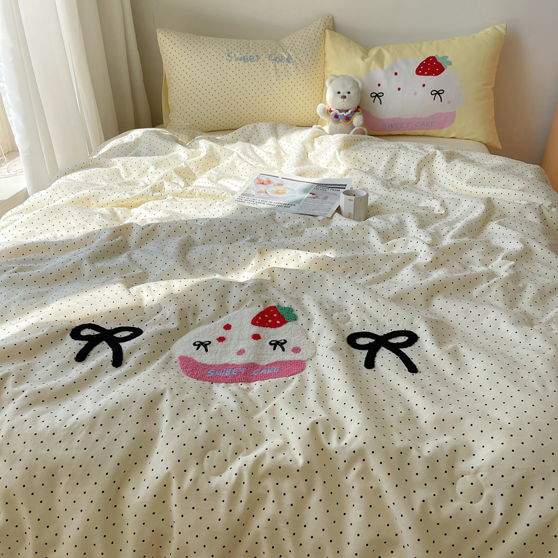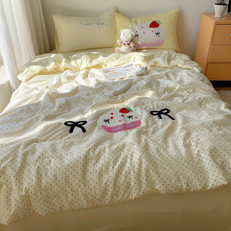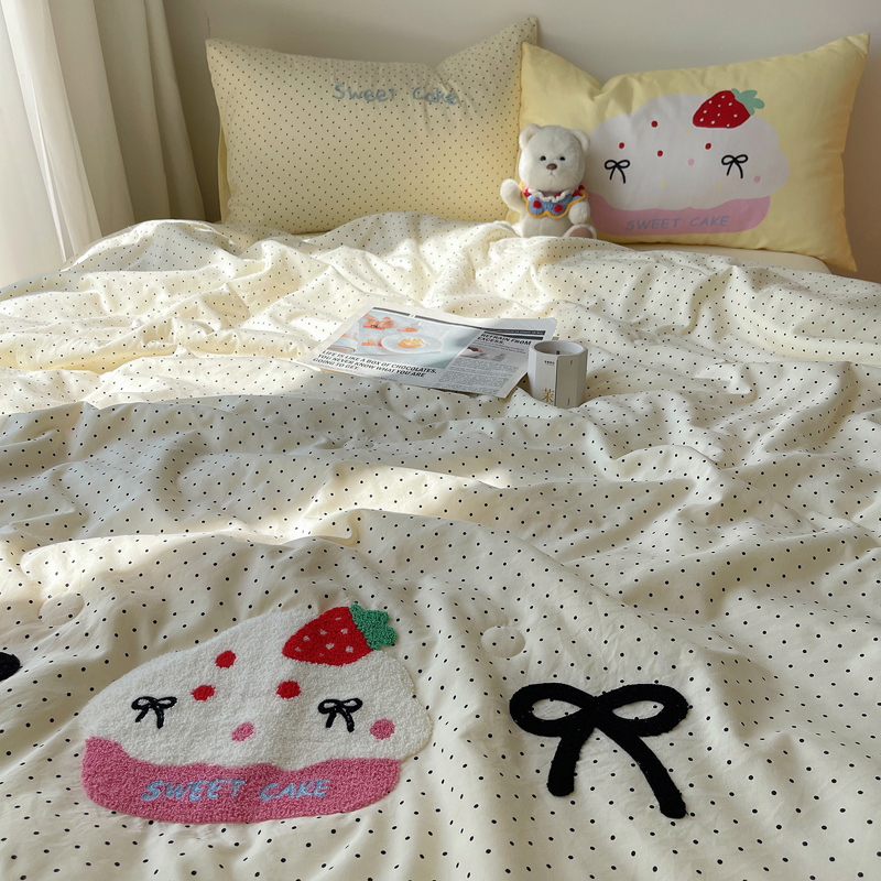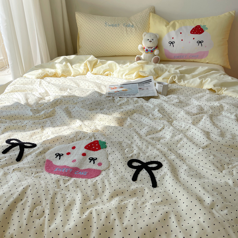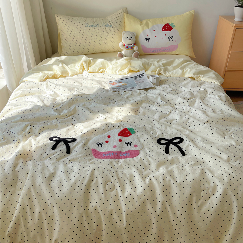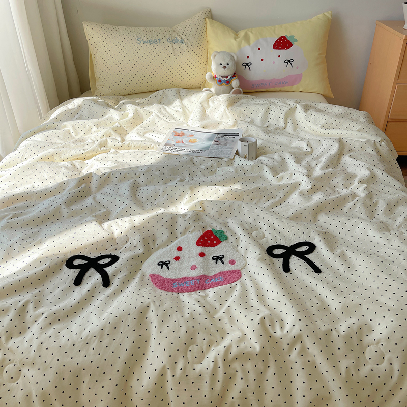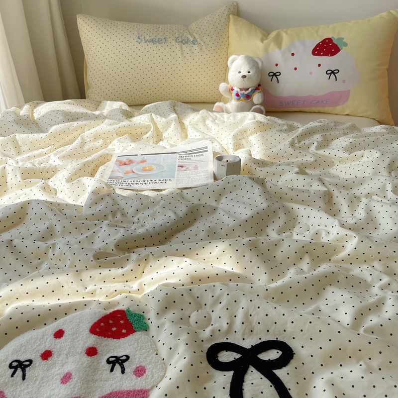 桃喜 2025新款水洗棉毛巾绣单夏被被子被芯夏被套件(非全棉)系列1 波点草莓蛋糕