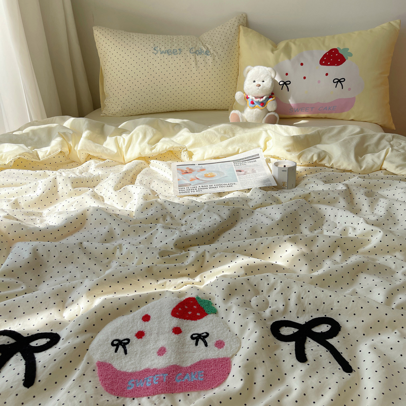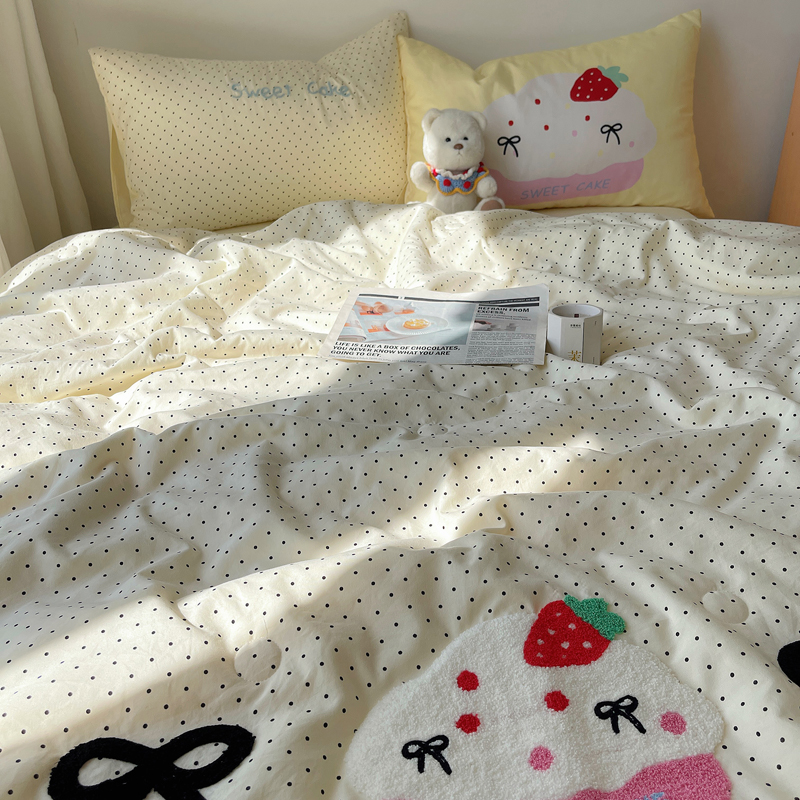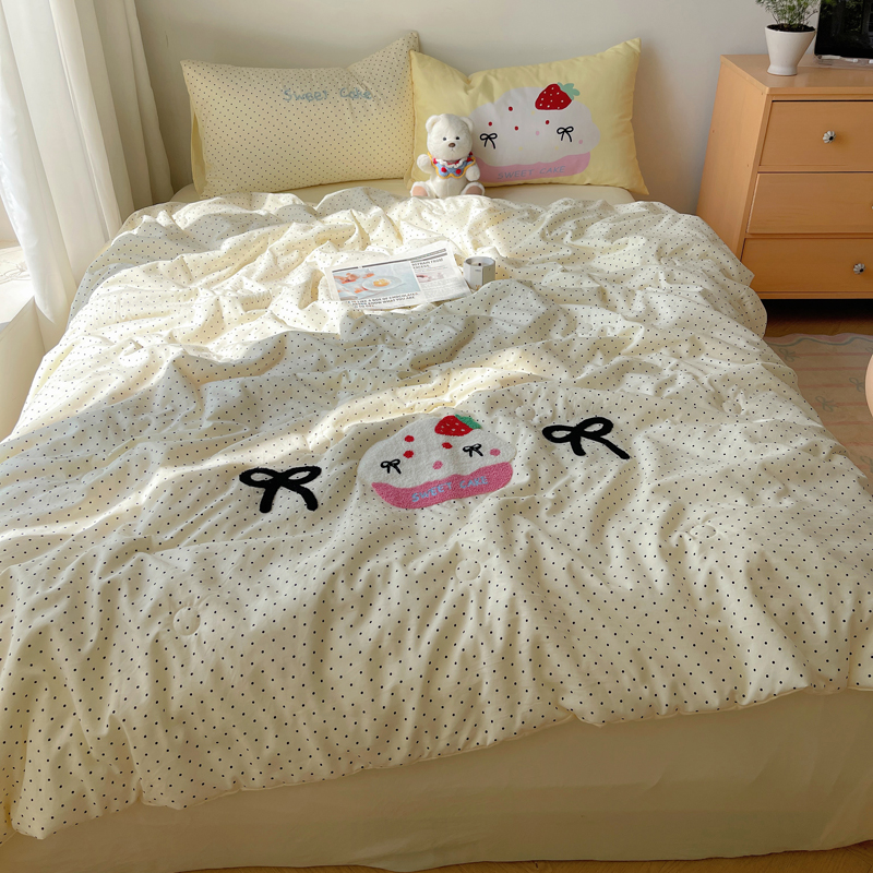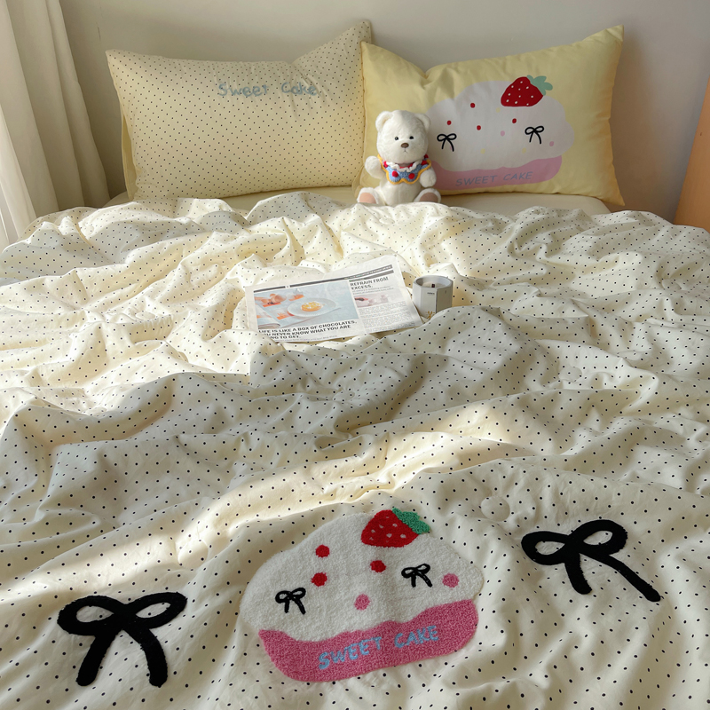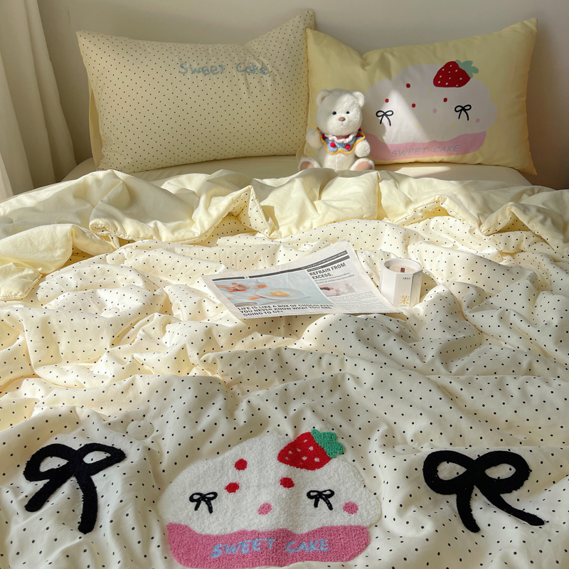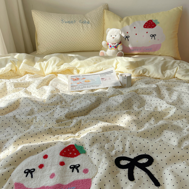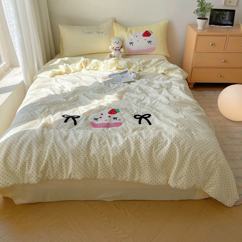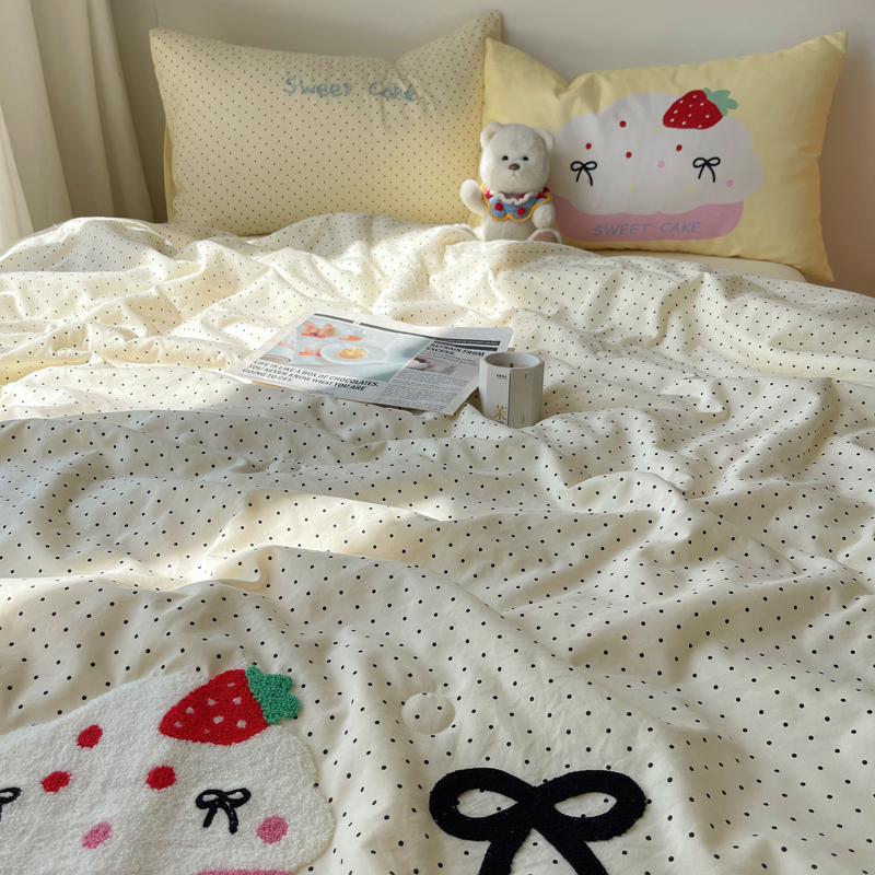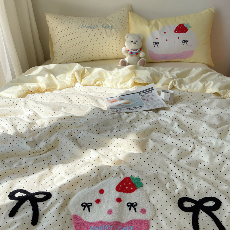 桃喜 2025新款水洗棉毛巾绣单夏被被子被芯夏被套件(非全棉)系列1 波点草莓蛋糕