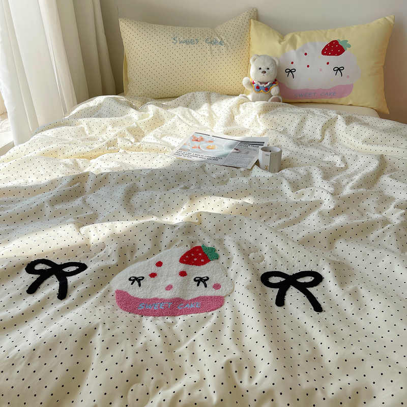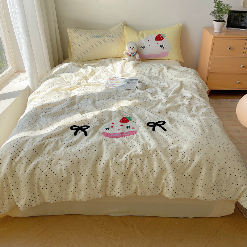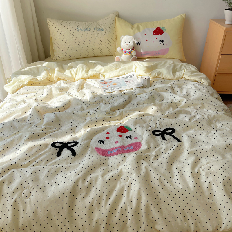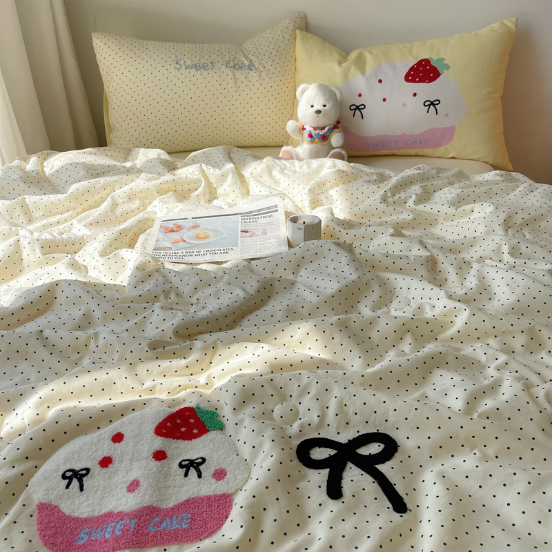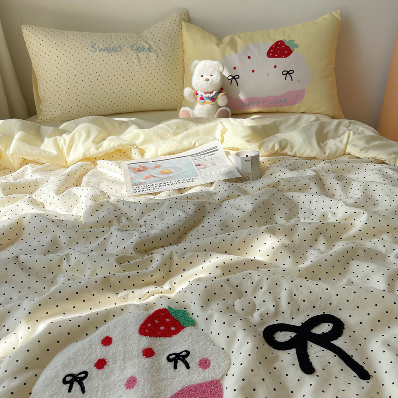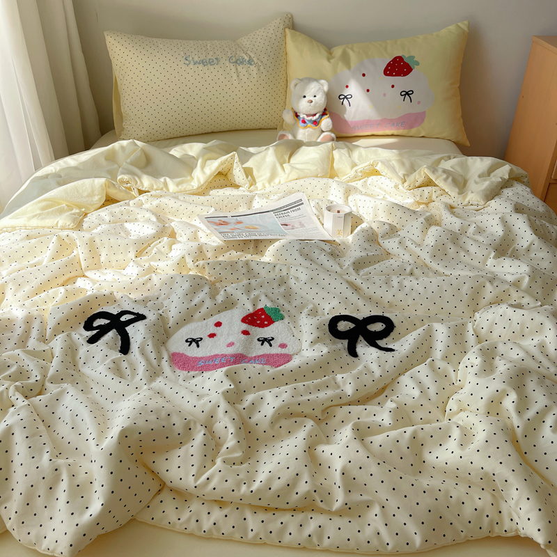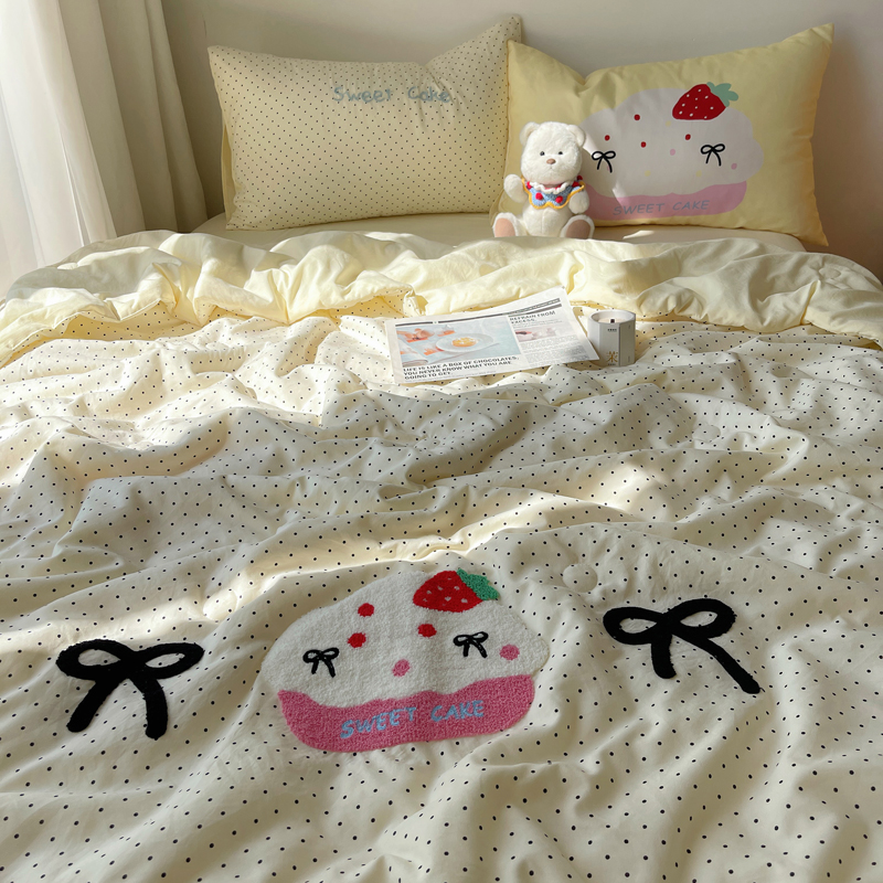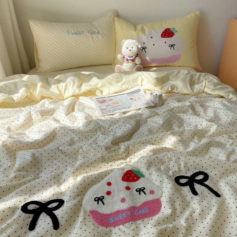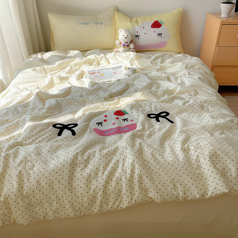 桃喜 2025新款水洗棉毛巾绣单夏被被子被芯夏被套件(非全棉)系列1 波点草莓蛋糕