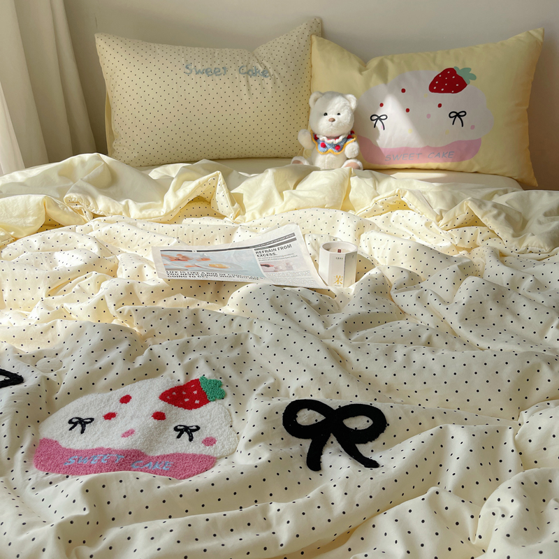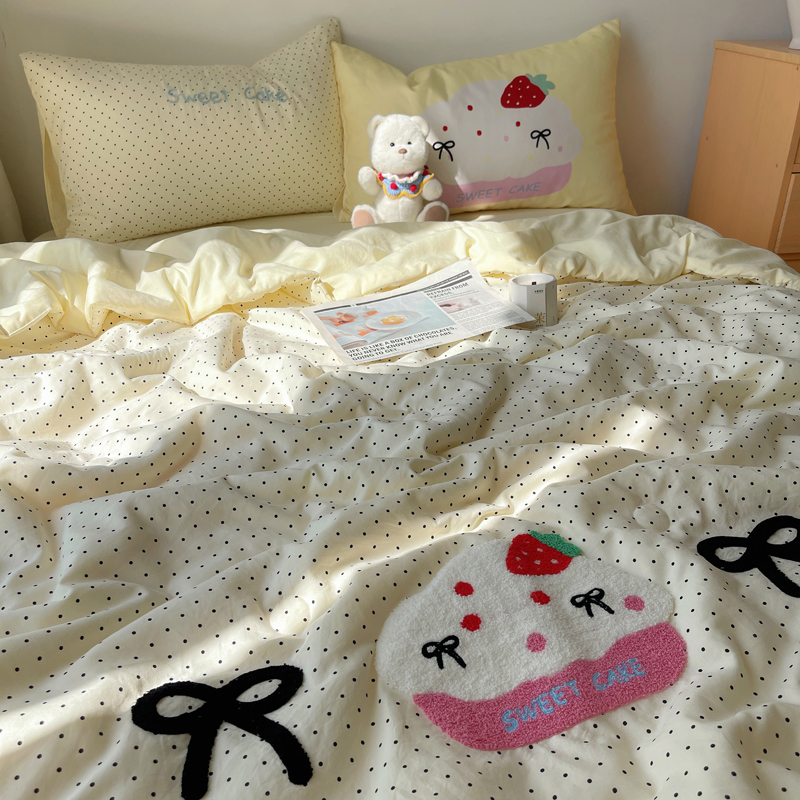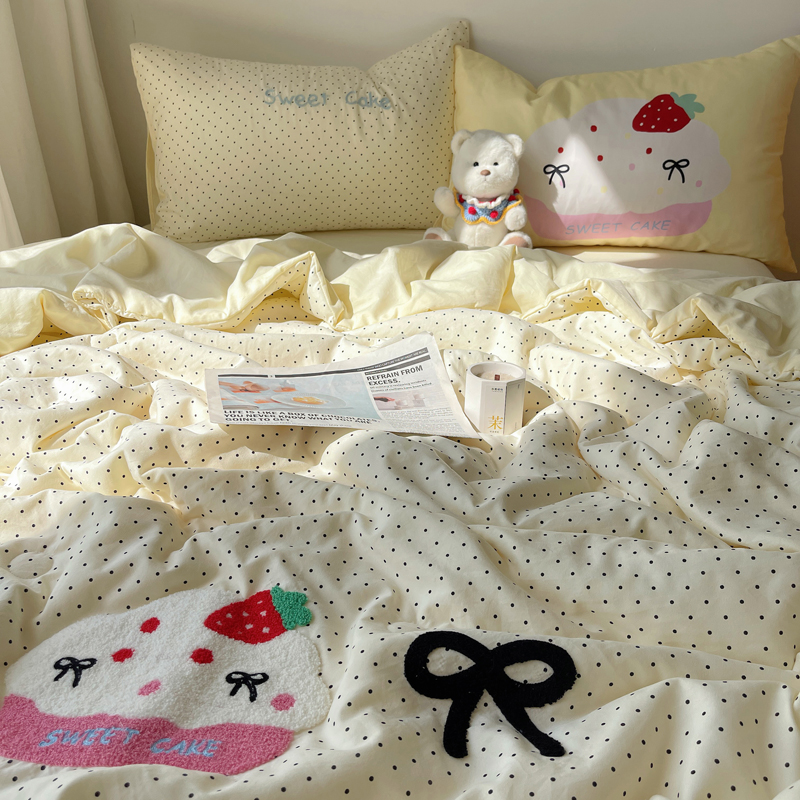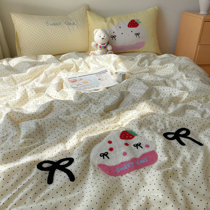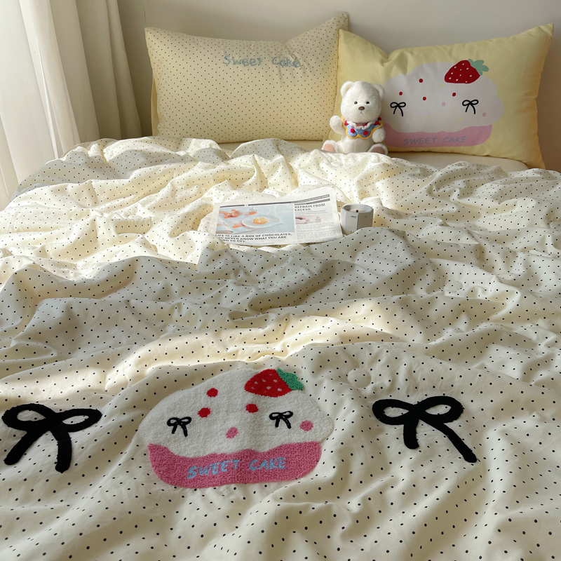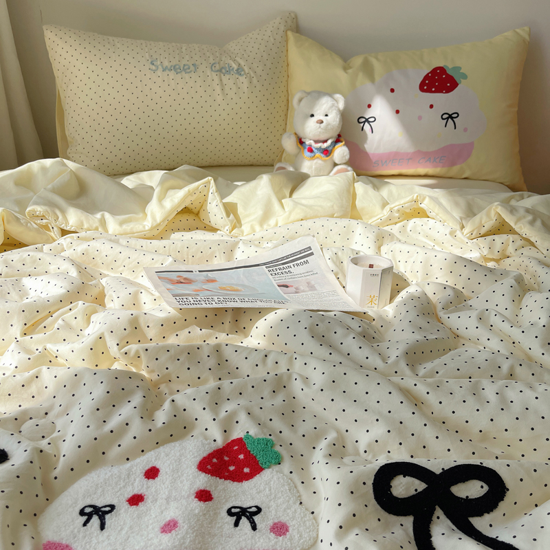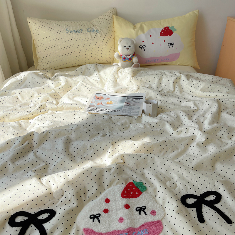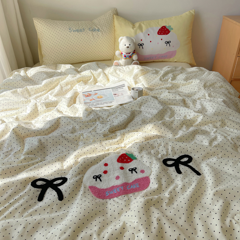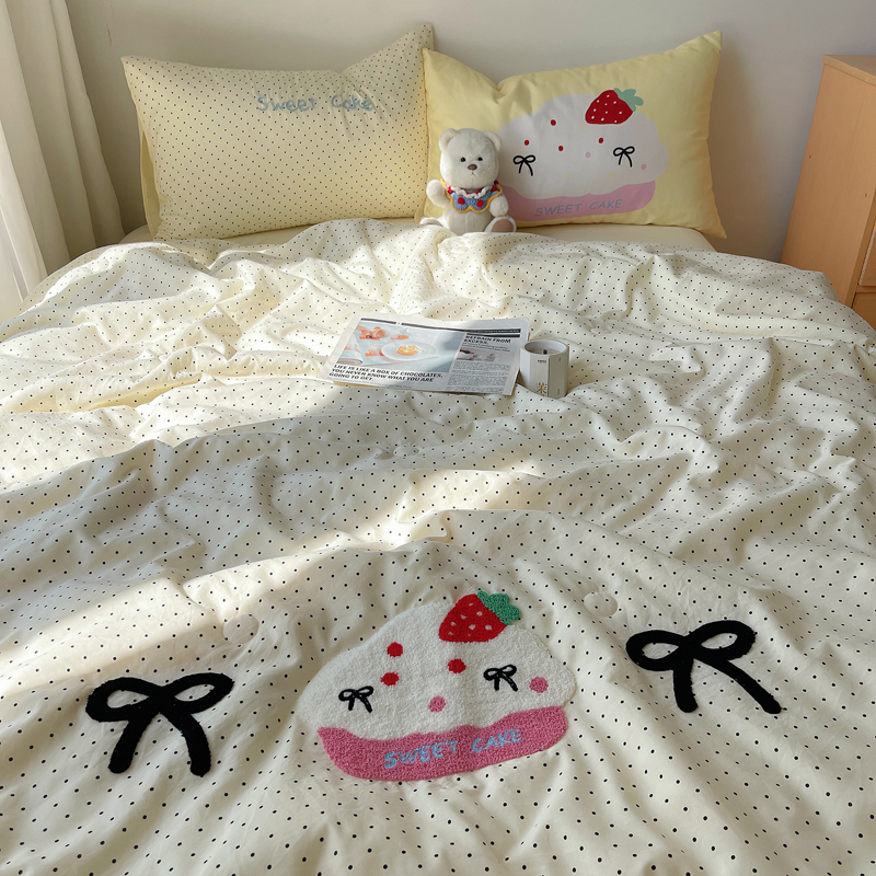 桃喜 2025新款水洗棉毛巾绣单夏被被子被芯夏被套件(非全棉)系列1 波点草莓蛋糕