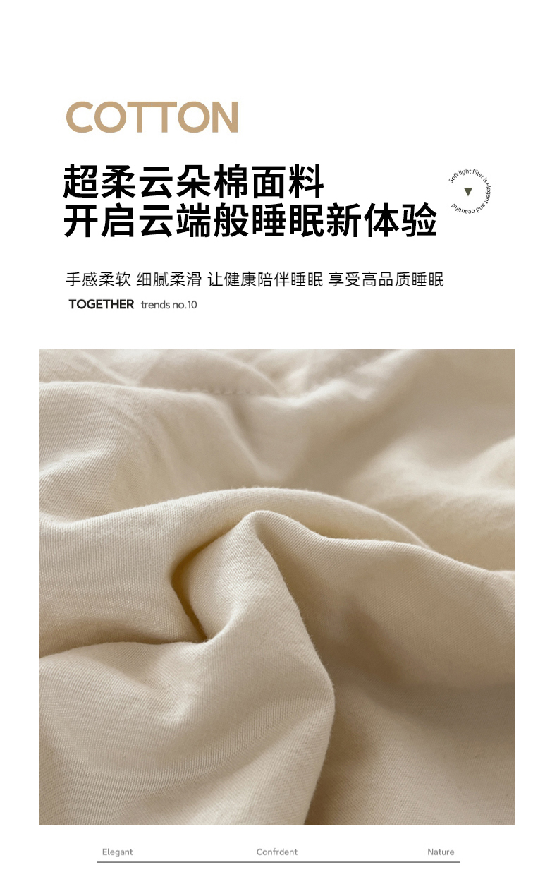 青螺家纺 2025新款日式简约纯色高克重水洗棉艾草(填充非面料注剂) 米色