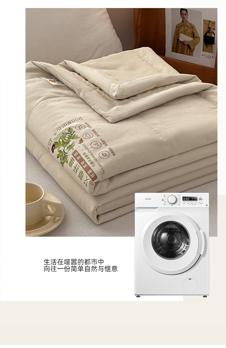 商品名称:青螺家纺 2025新款日式简约纯色高克重水洗棉艾草(填充非面料注剂) 米色