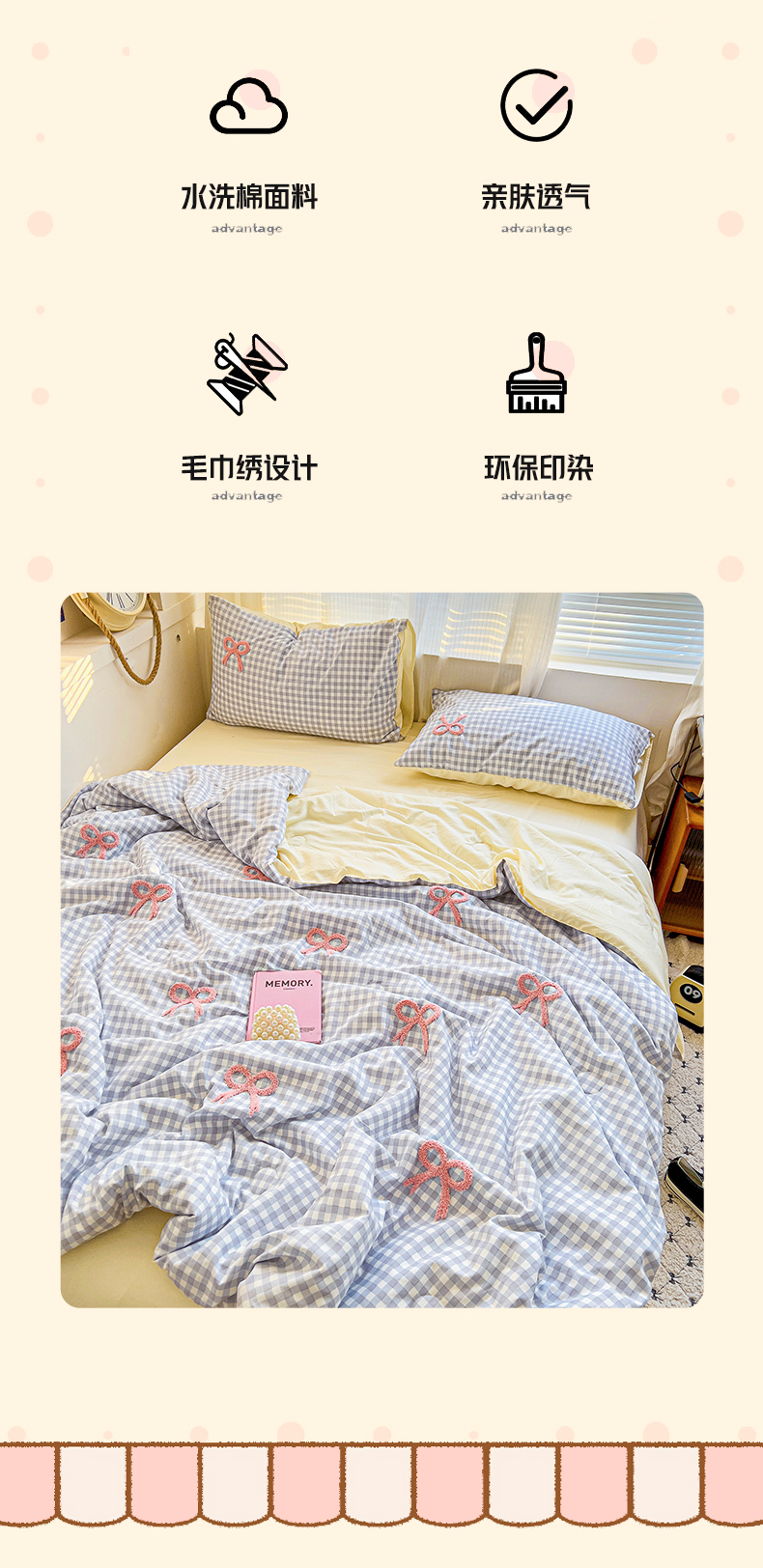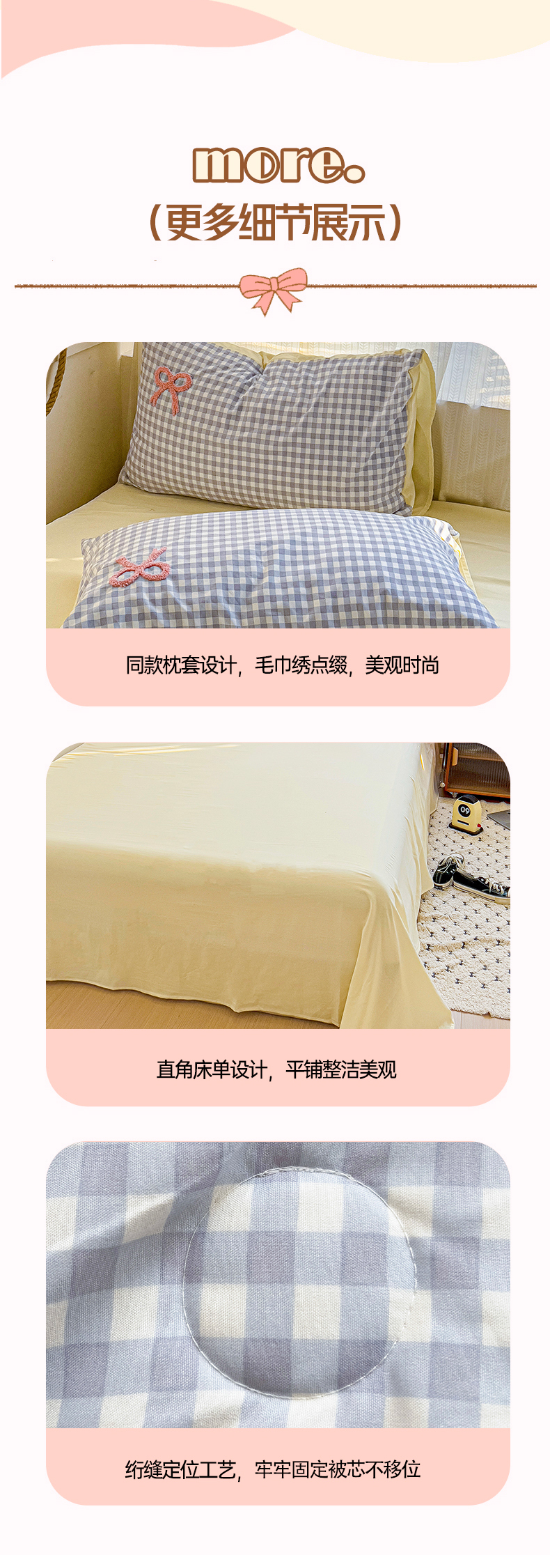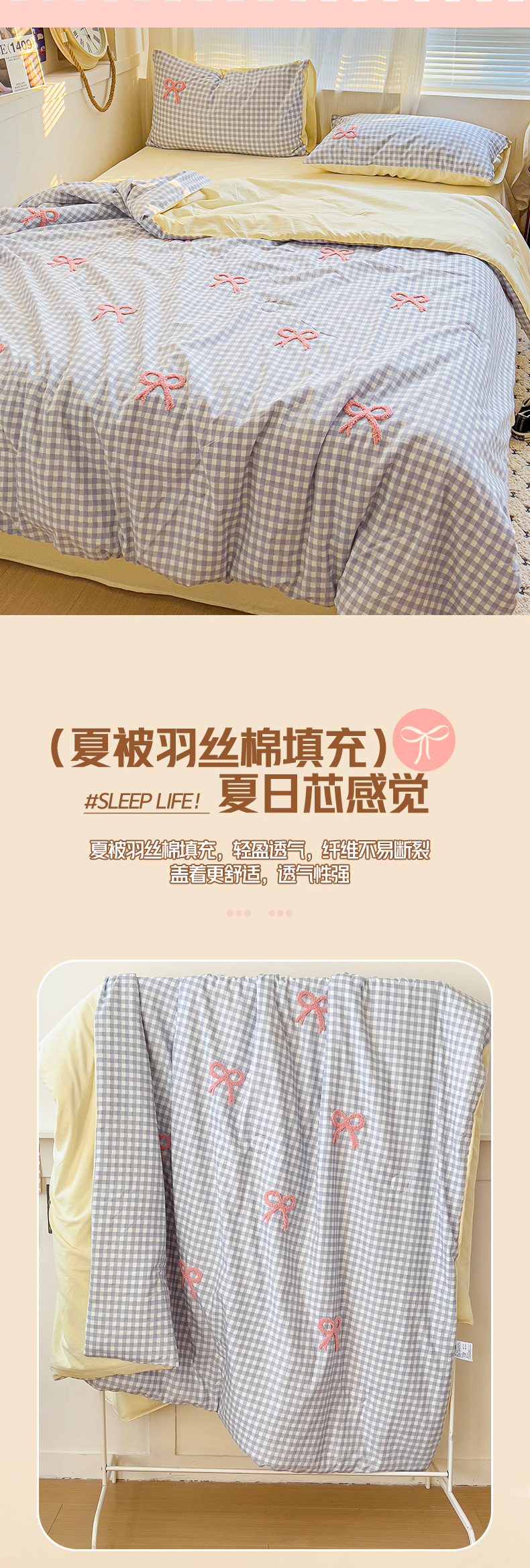 • 91家纺网 家纺一手货源 找家纺 灰鲸 2025新款云朵棉毛巾绣夏被四件套 蝴蝶结-蓝格+奶油黄