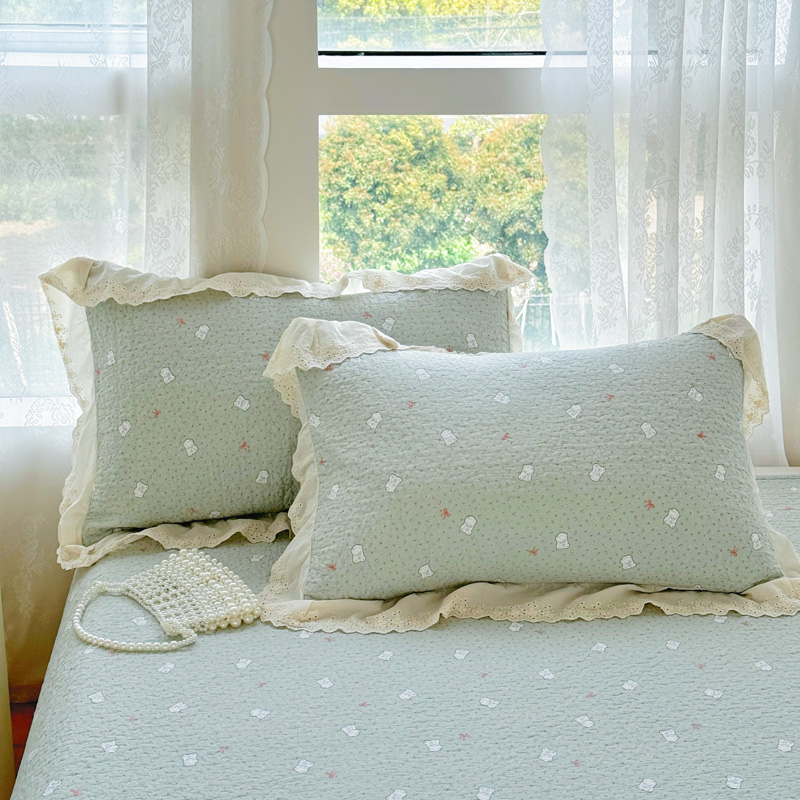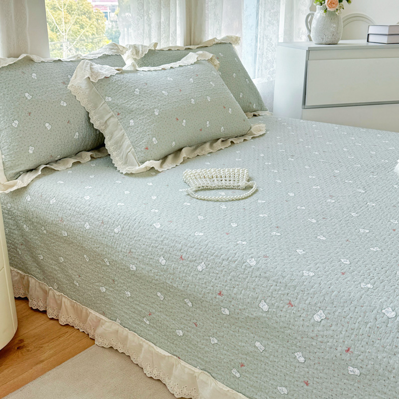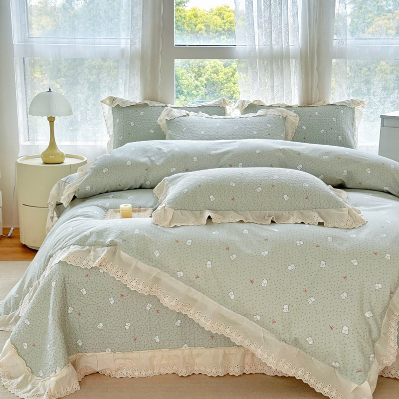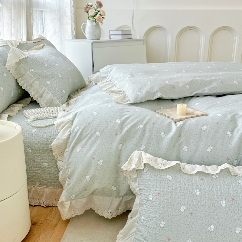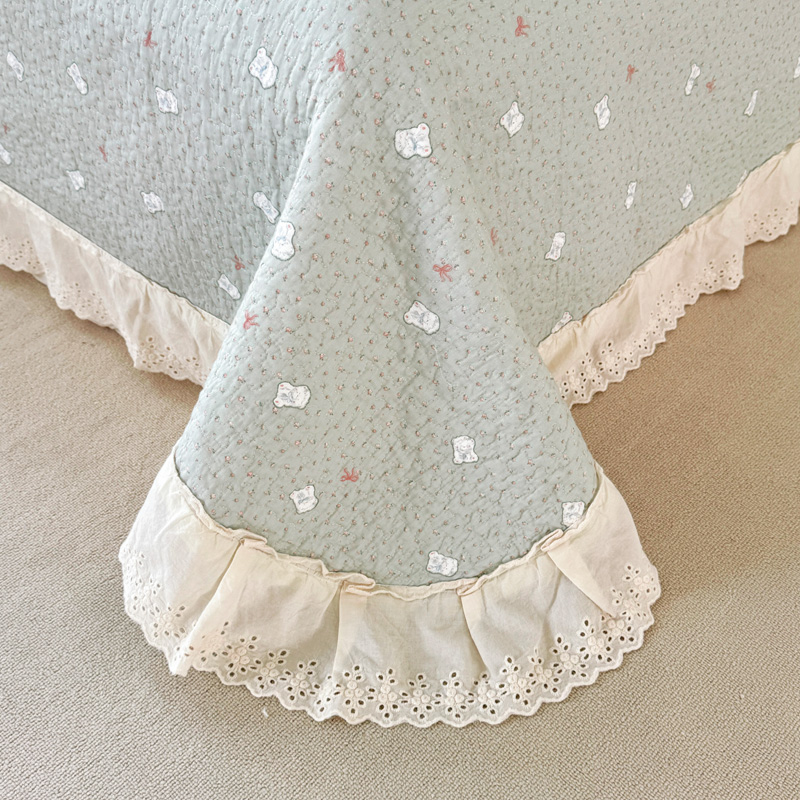 添越 2024小清新韩版蕾丝款花边纯棉夹棉床盖三件套全棉爱心熊-蕾丝款,爱心熊-蕾丝款