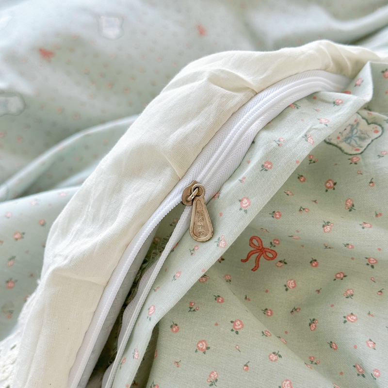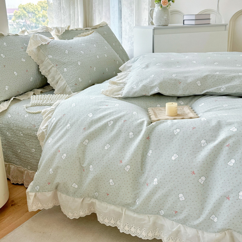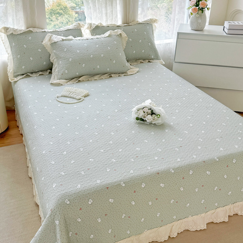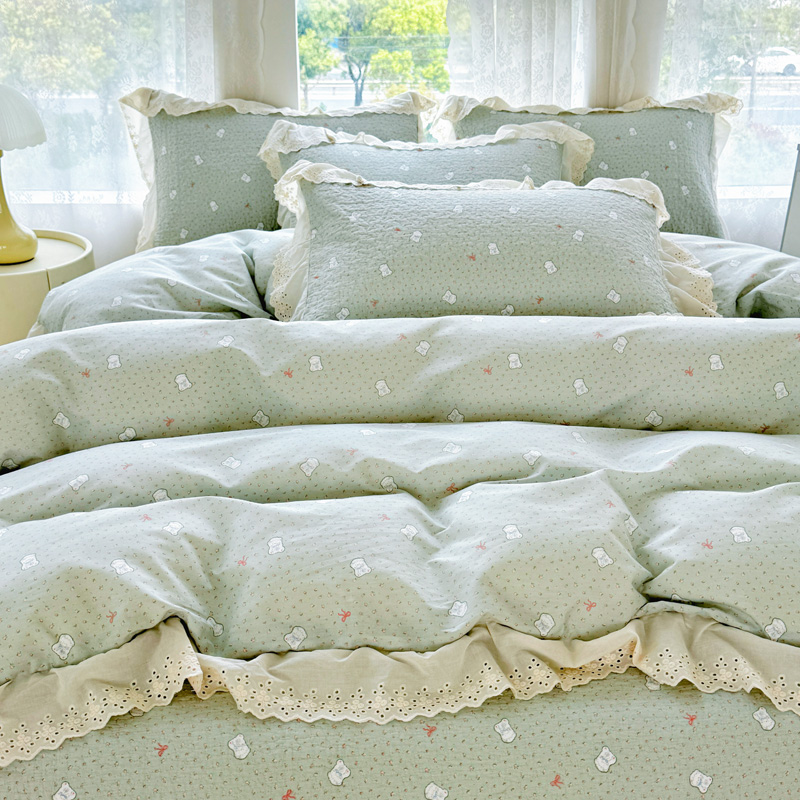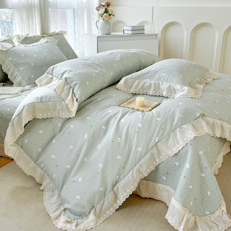 添越 2024小清新韩版蕾丝款花边纯棉夹棉床盖三件套全棉爱心熊-蕾丝款,爱心熊-蕾丝款