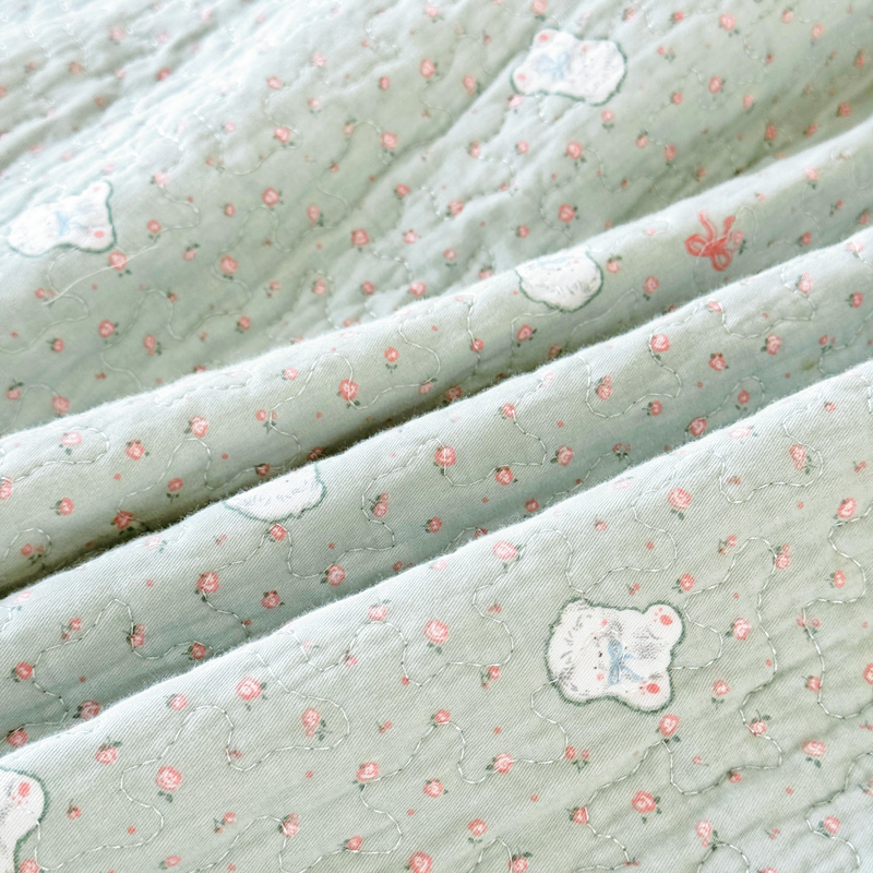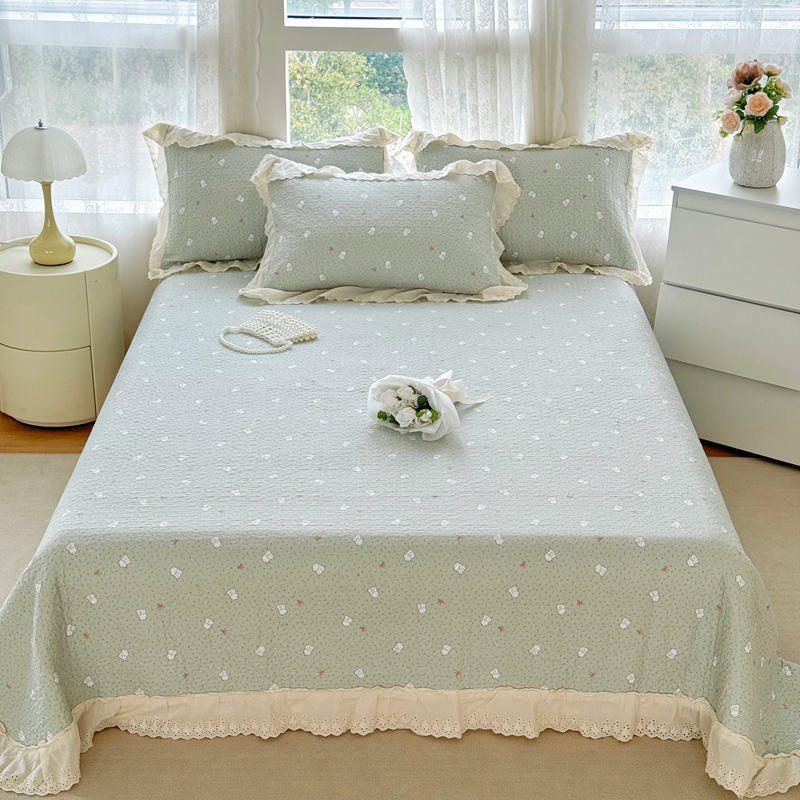商品名称:添越家纺2025新款纯棉砂洗床盖三件套四件套系列 小布丁-绿