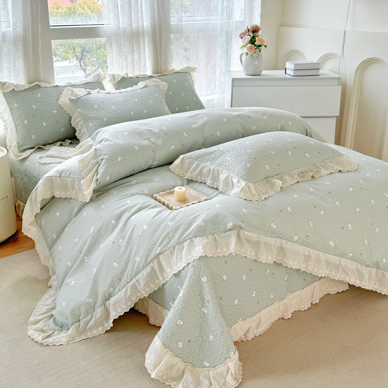 添越 2024小清新韩版蕾丝款花边纯棉夹棉床盖三件套全棉爱意时光蕾丝款,爱意时光蕾丝款