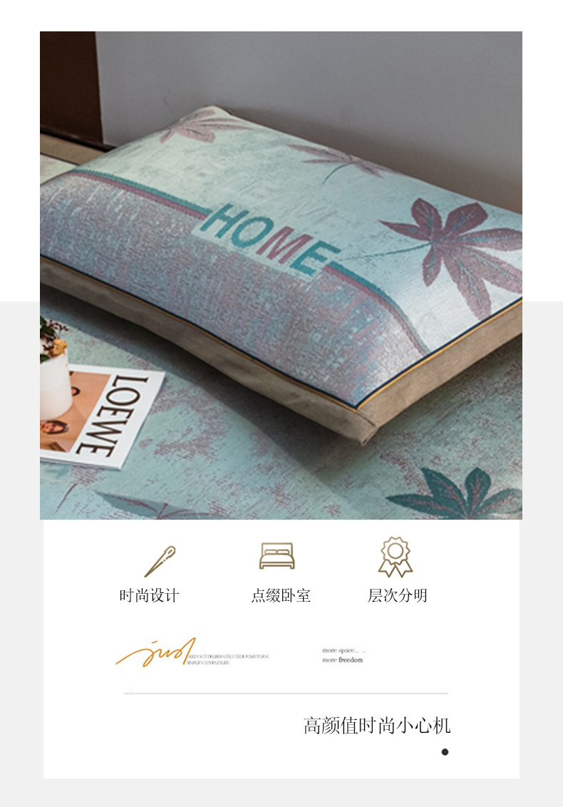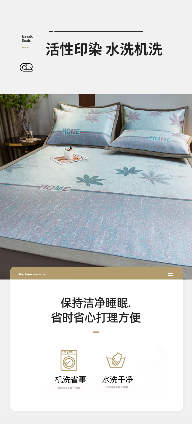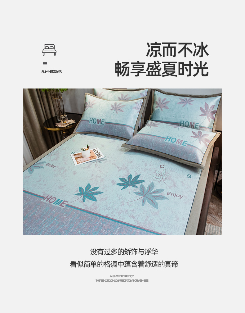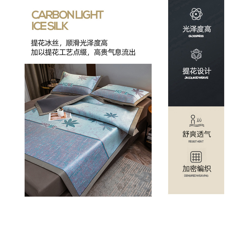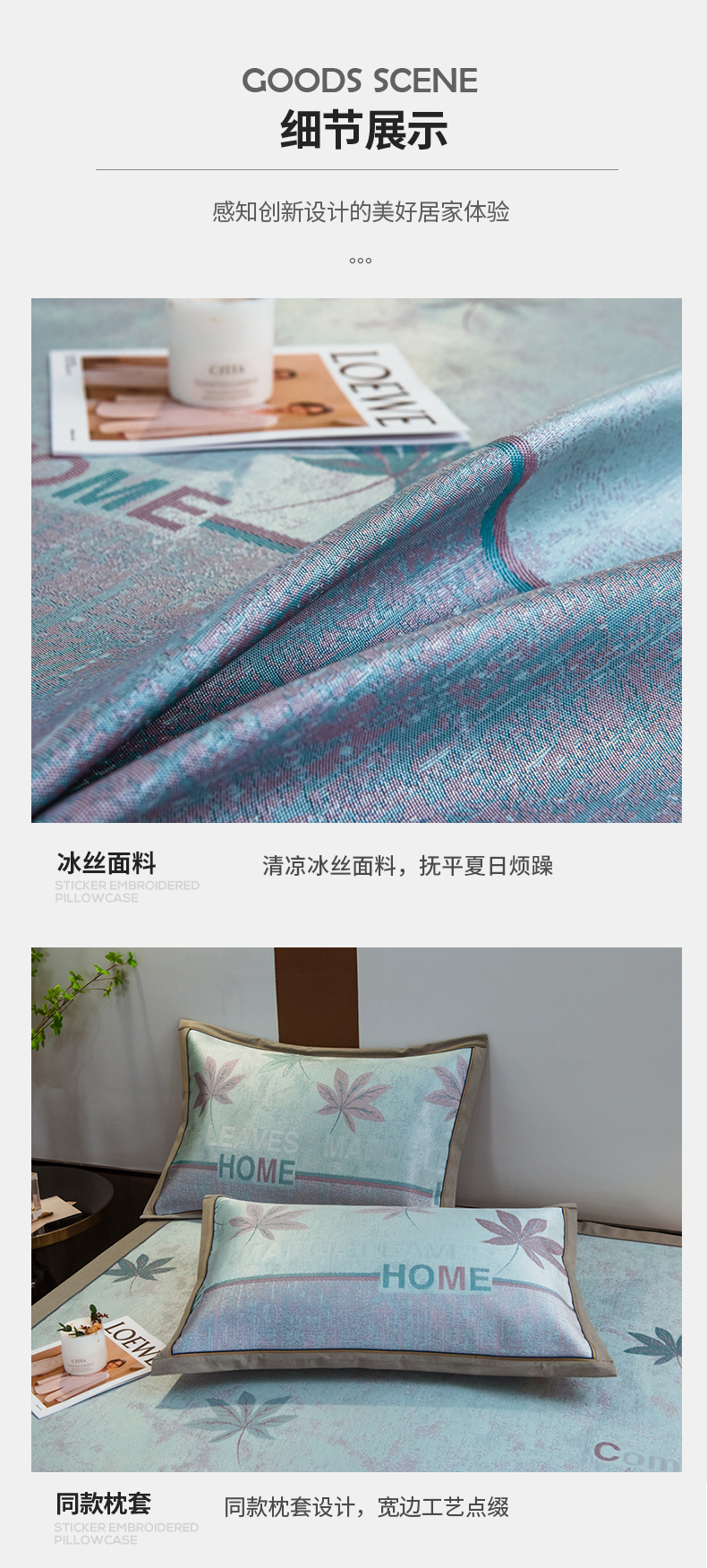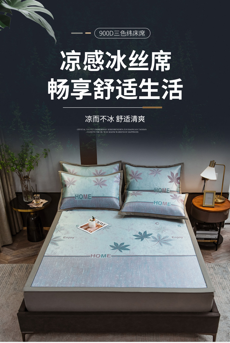 商品名称:全季家居 2025新款900D高精密三色纬提花冰丝凉席 床席-枫叶