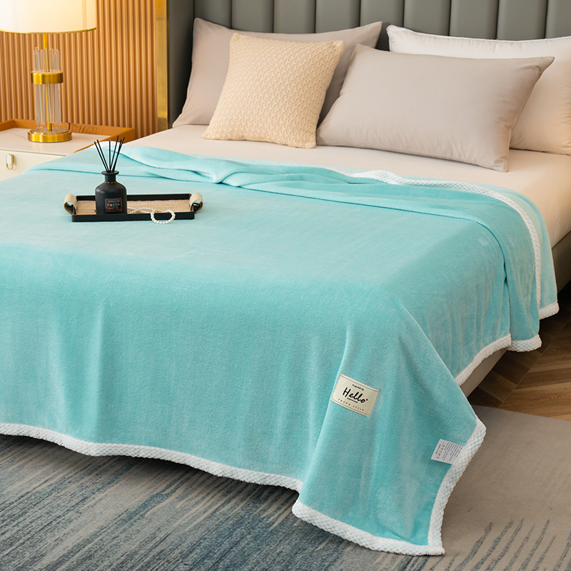 好多家纺 2025新款亲肤纯色包边盖毯毯子 浅绿,浅绿