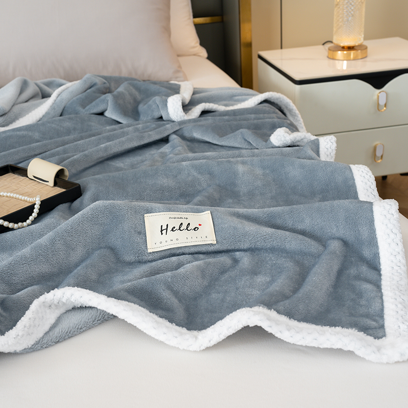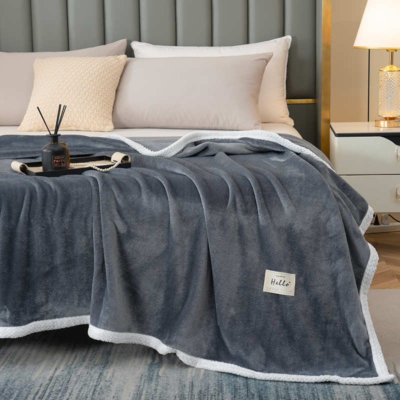 商品名称:好多家纺 2025新款亲肤纯色包边盖毯毯子 深灰