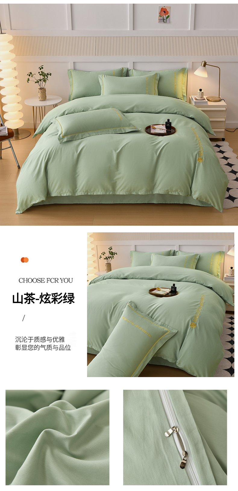 当前位置: 91家纺网 > 商品网购 > 床品套件 > 四件套 > 全棉普通四件套 > 宇彬家纺 2025直播热新款13374全棉母婴级压线纯色刺绣四件套全棉贡缎新疆长绒字母款轻奢 山茶-摩卡绿