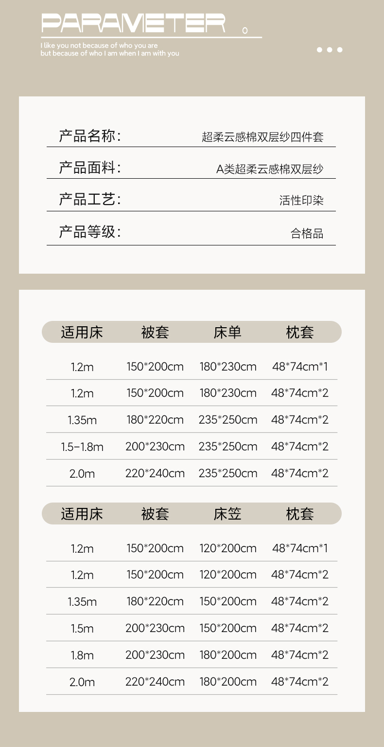 1.8m加大床笠款四件套(被套220X240) | ¥64.00 |