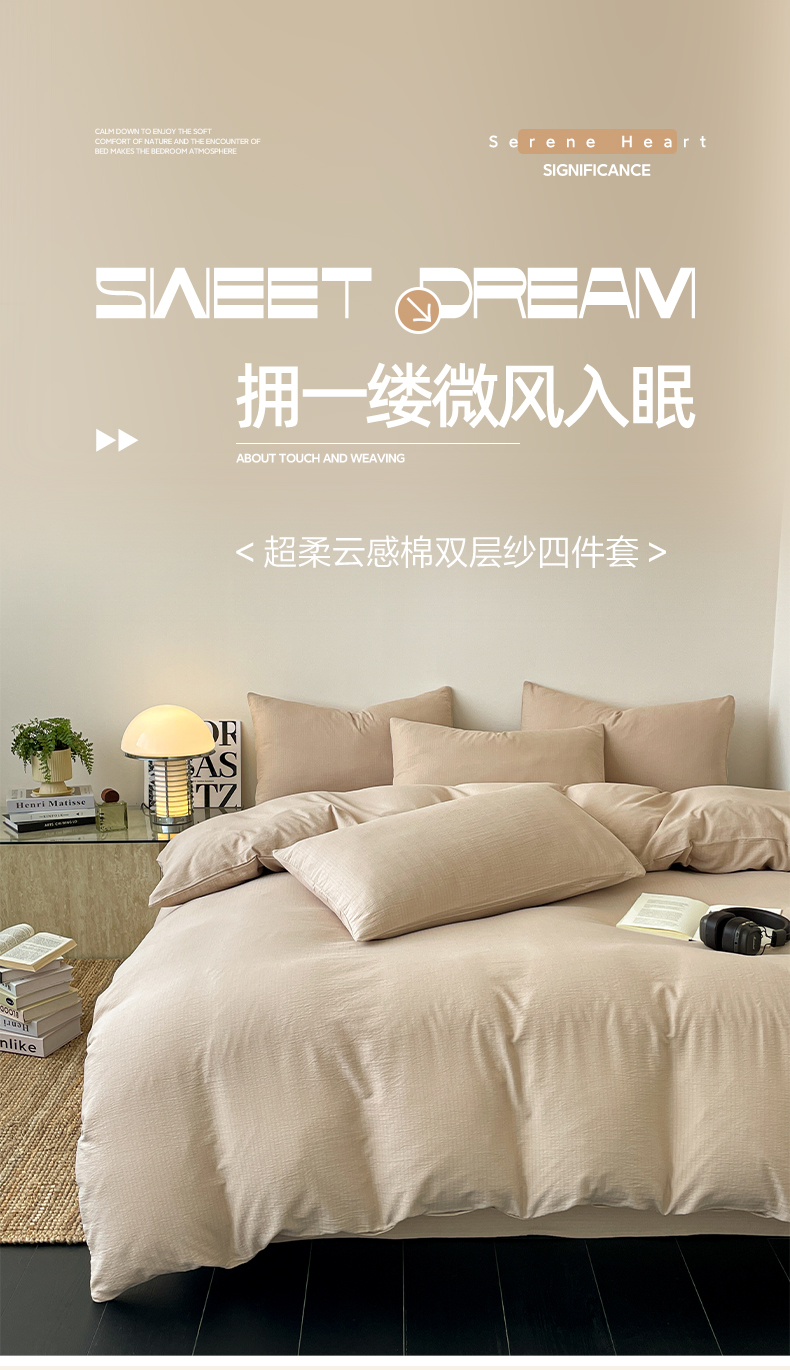 当前位置: 91家纺网 > 商品网购 > 床品套件 > 四件套 > 化纤活性四件套 > 优承佳 2025新款超柔云感m纯色双层纱四件套 双层纱-杏色