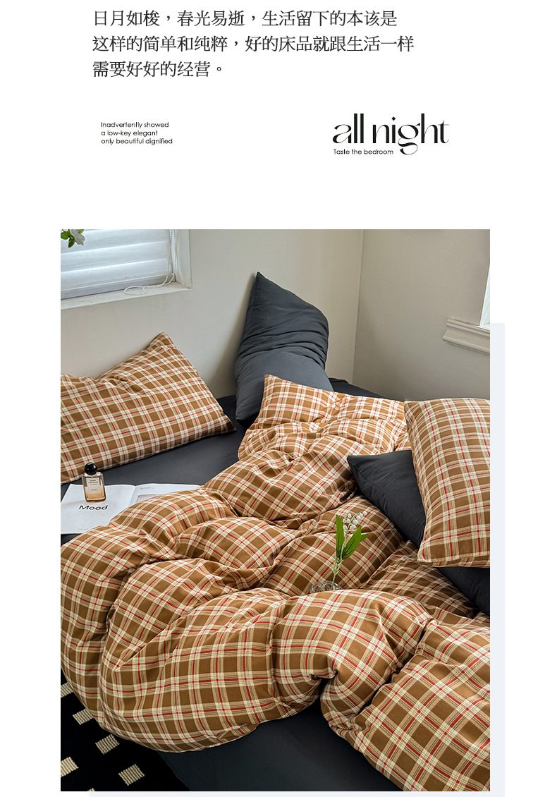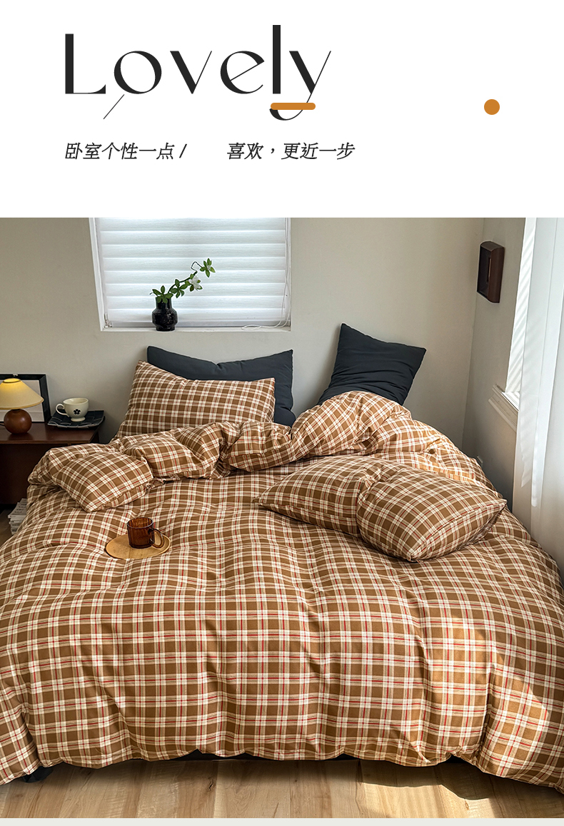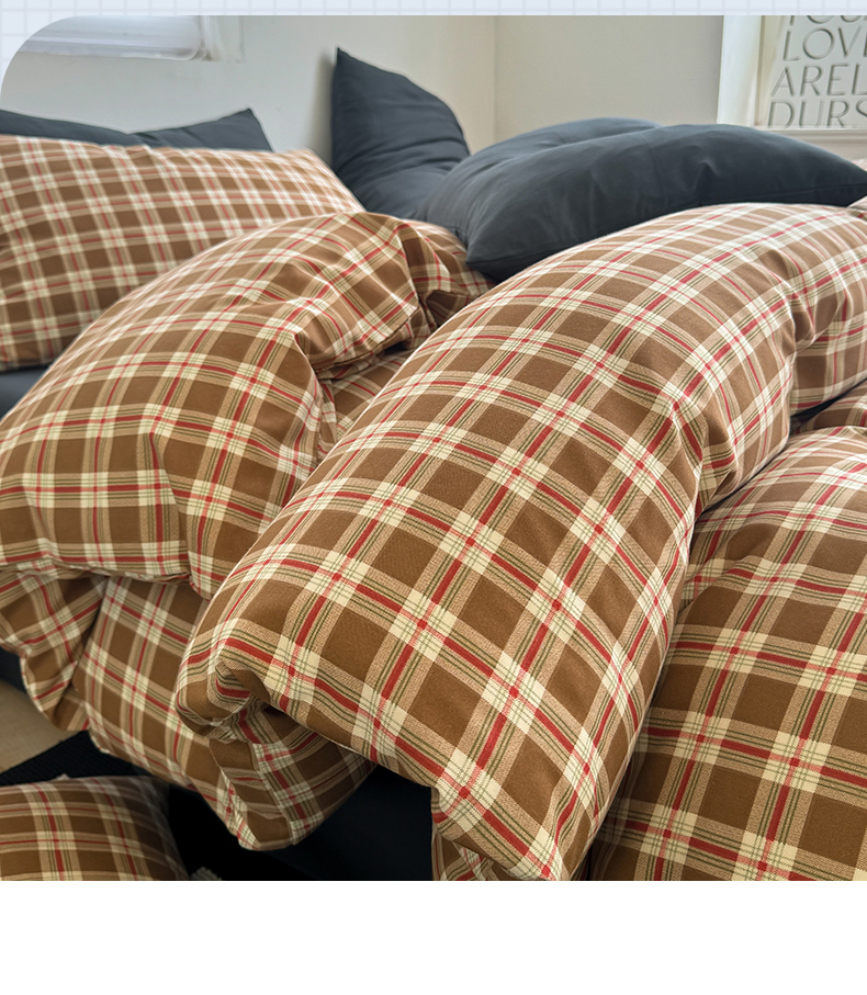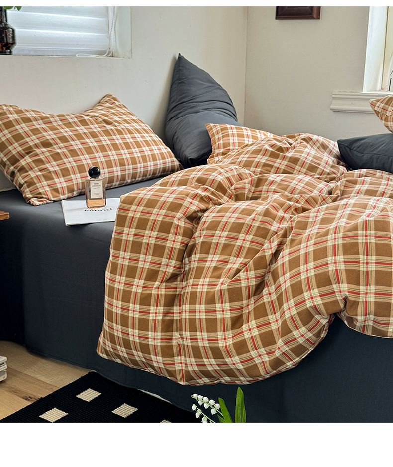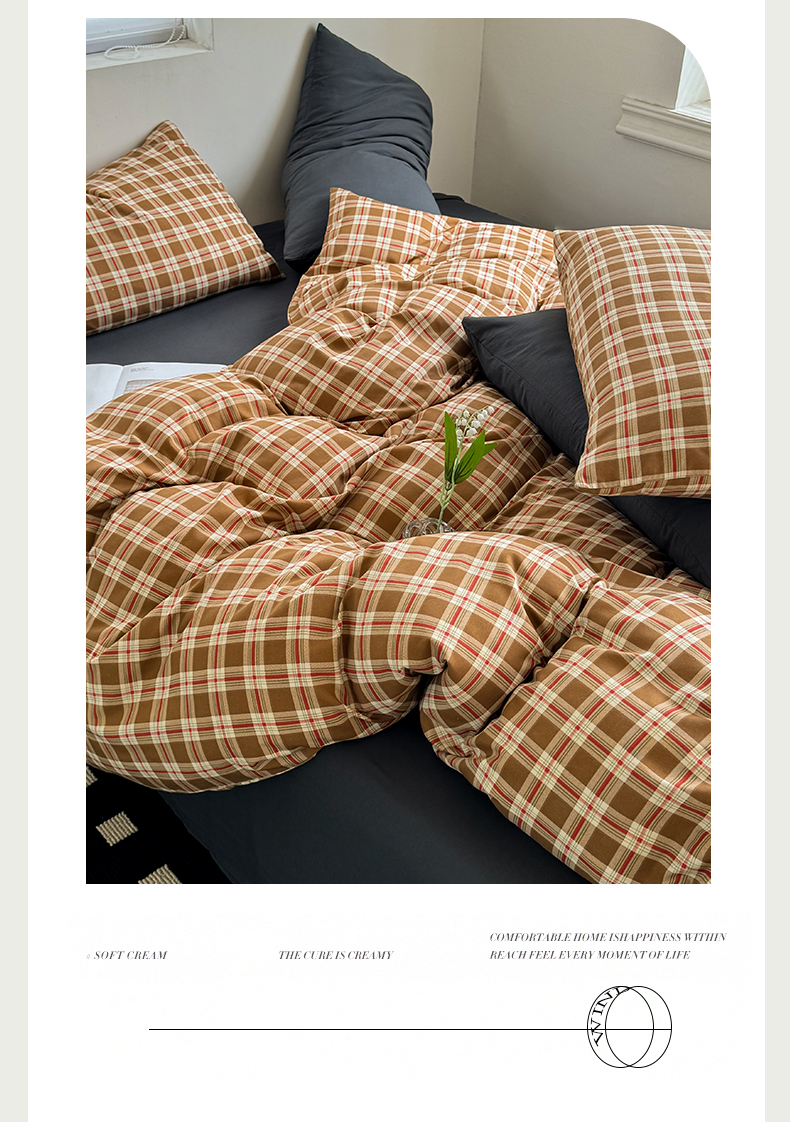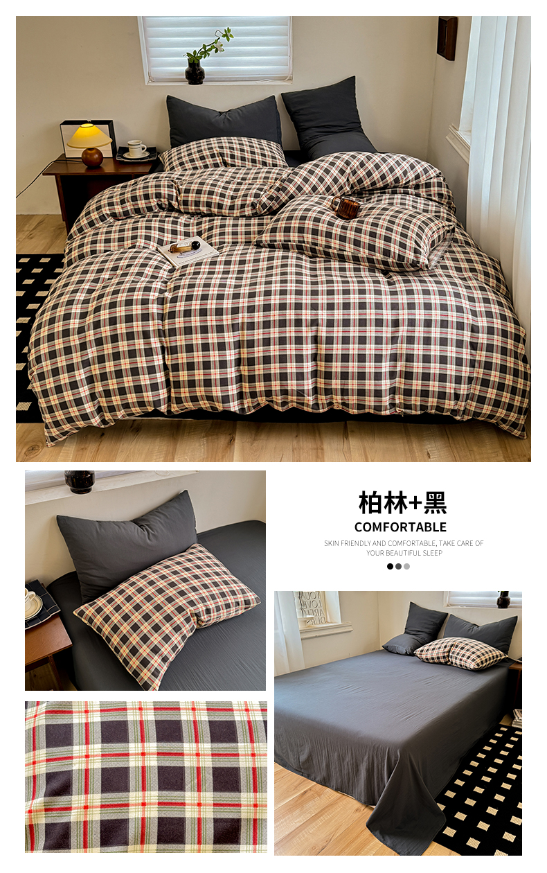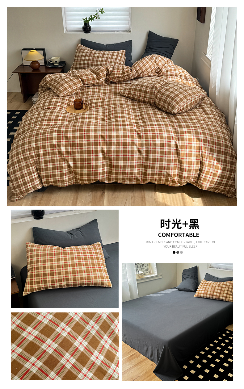 当前位置: 91家纺网 > 商品网购 > 床品套件 > 四件套 > 水洗棉四件套 > 多品家纺 2025新款简约复古风水洗棉格子四件套 时光+黑