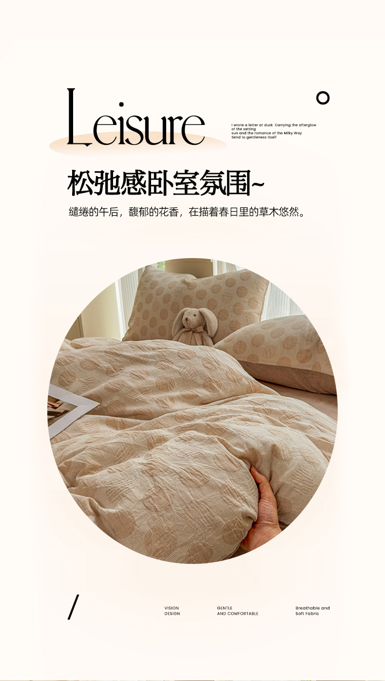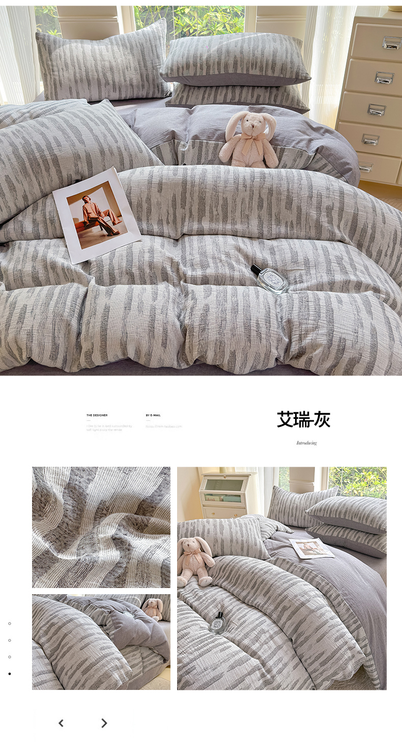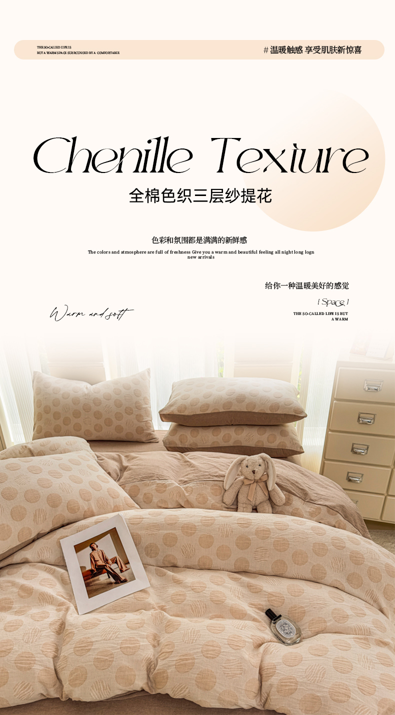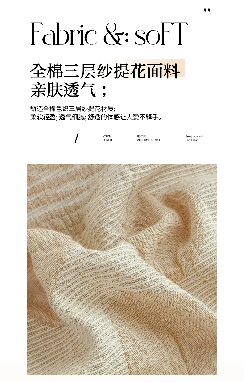 当前位置: 91家纺网 > 商品网购 > 床品套件 > 四件套 > 色织四件套 > 菡宝 2025新款a类母婴级纯棉全棉纯棉色织三层纱提花系列四件套 波点-卡其