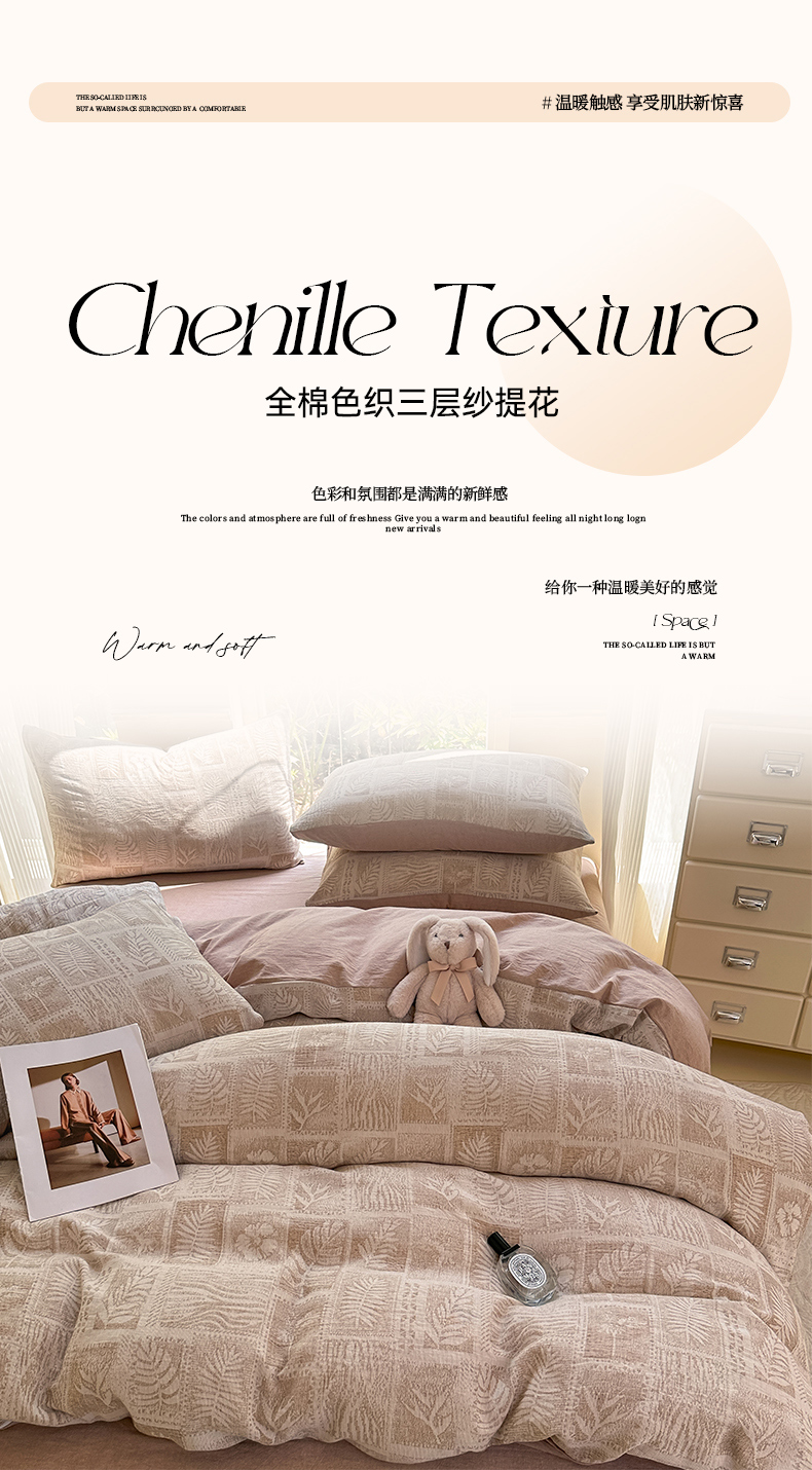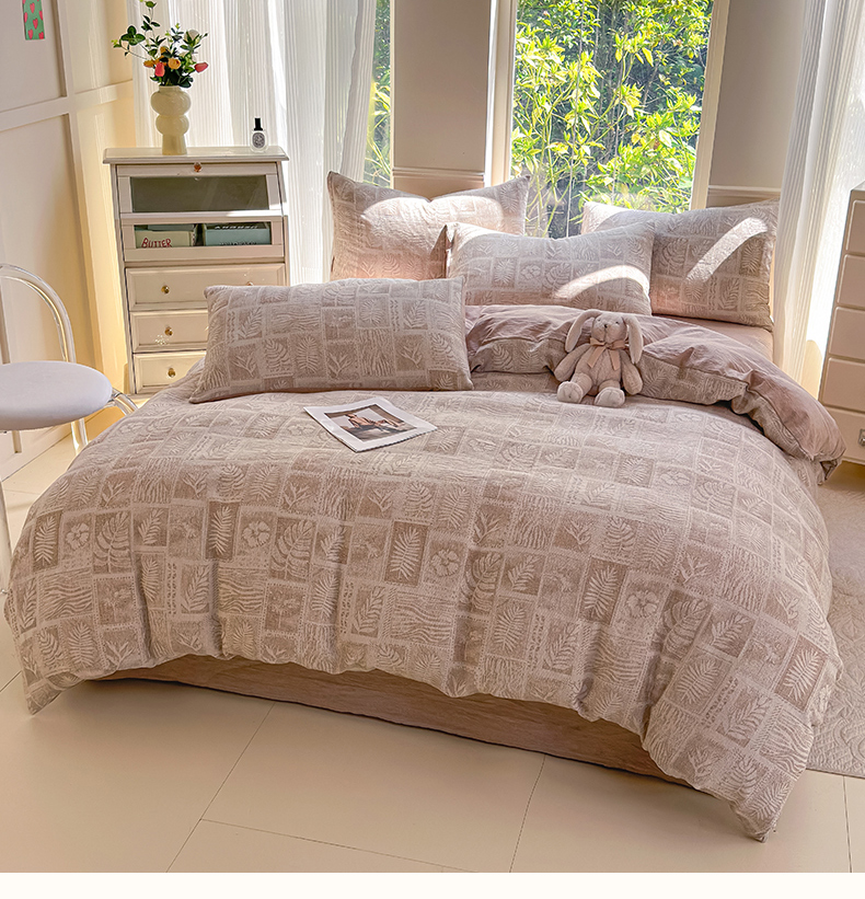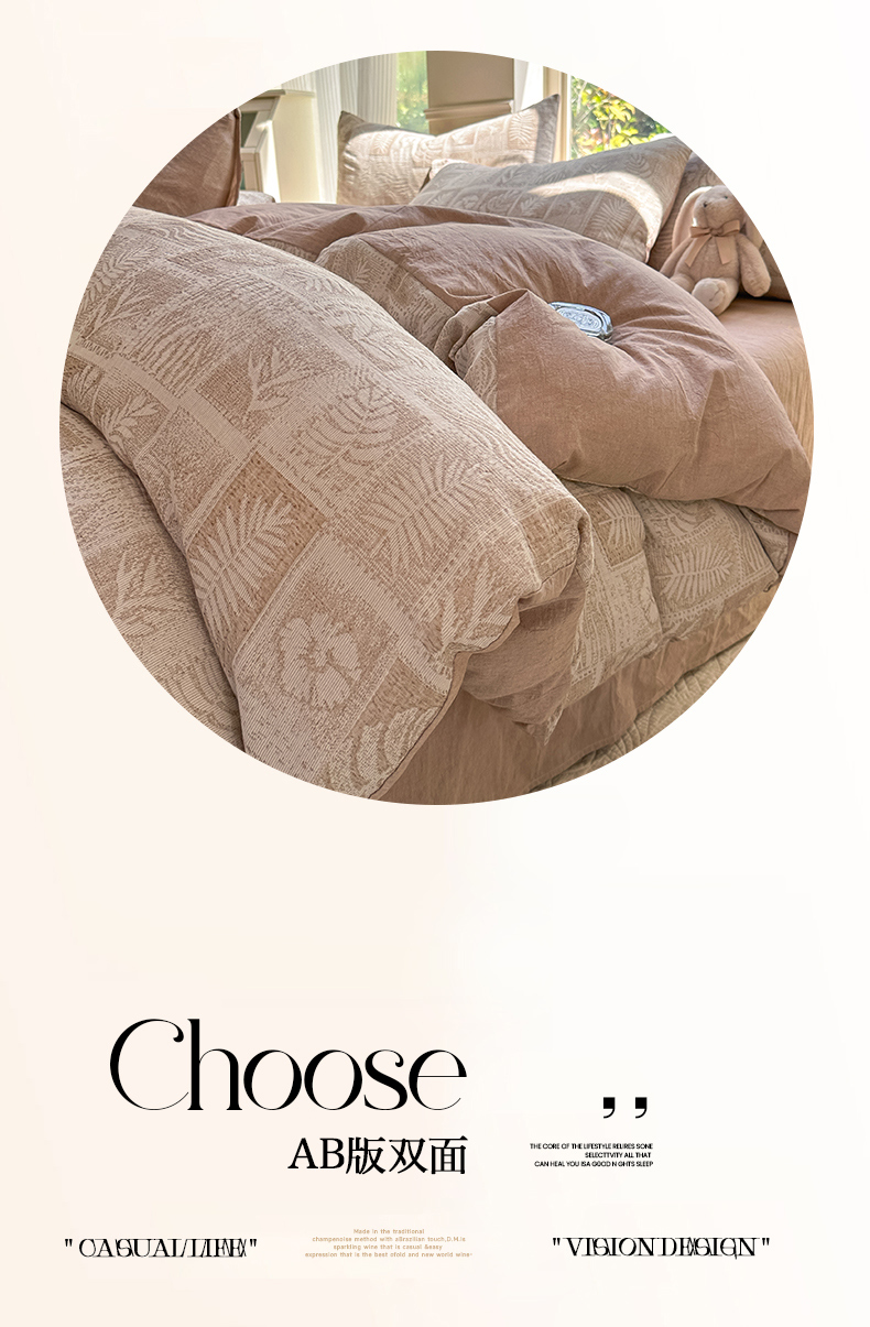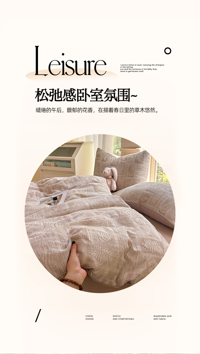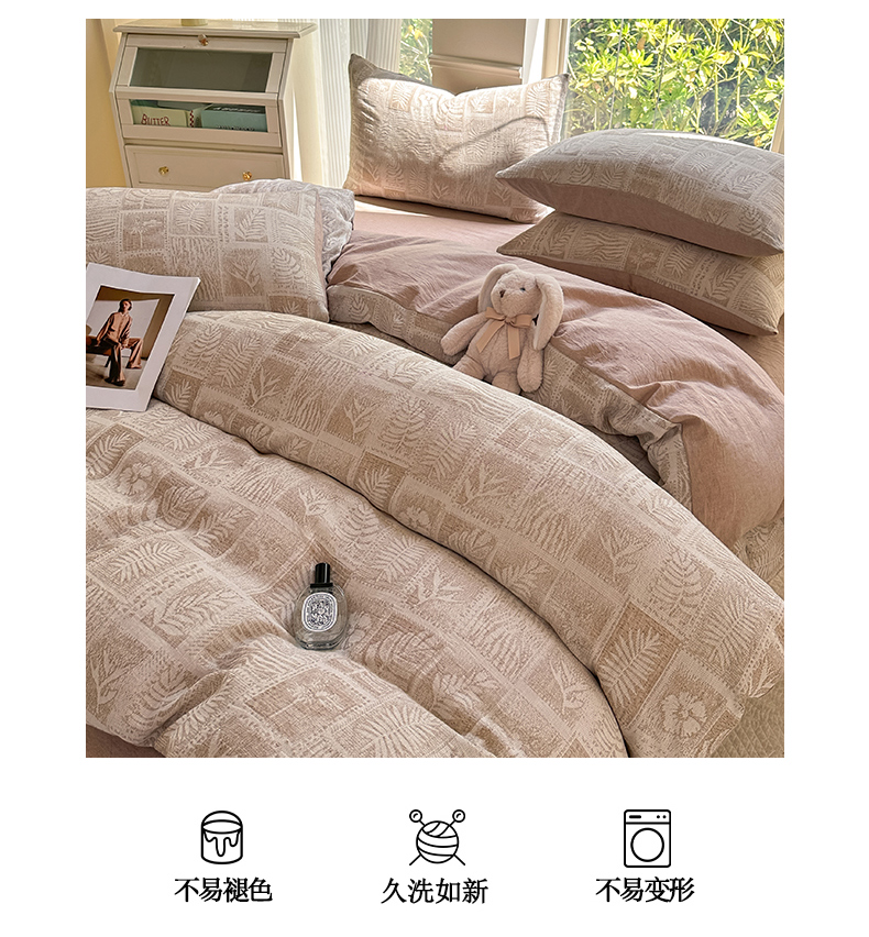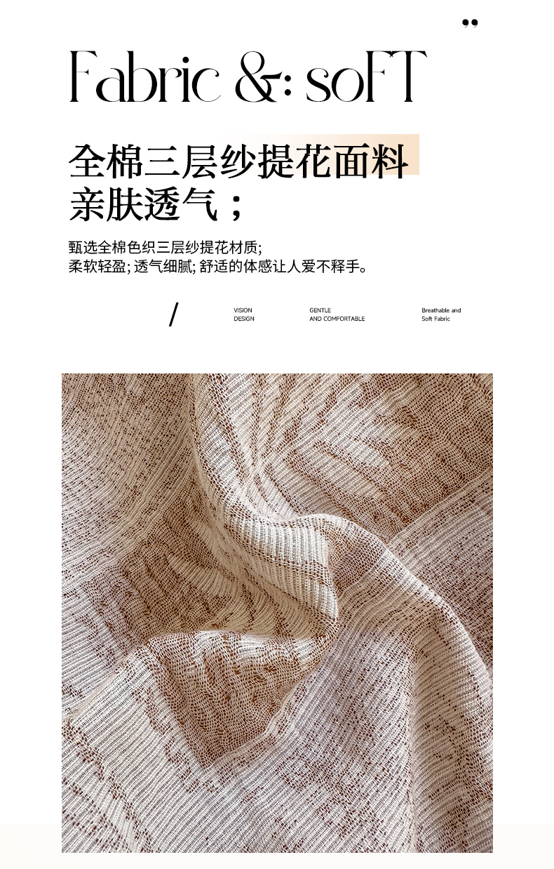 当前位置: 91家纺网 > 商品网购 > 床品套件 > 四件套 > 色织四件套 > 菡宝 2025新款a类母婴级纯棉全棉纯棉色织三层纱提花系列四件套 叶之美-卡其