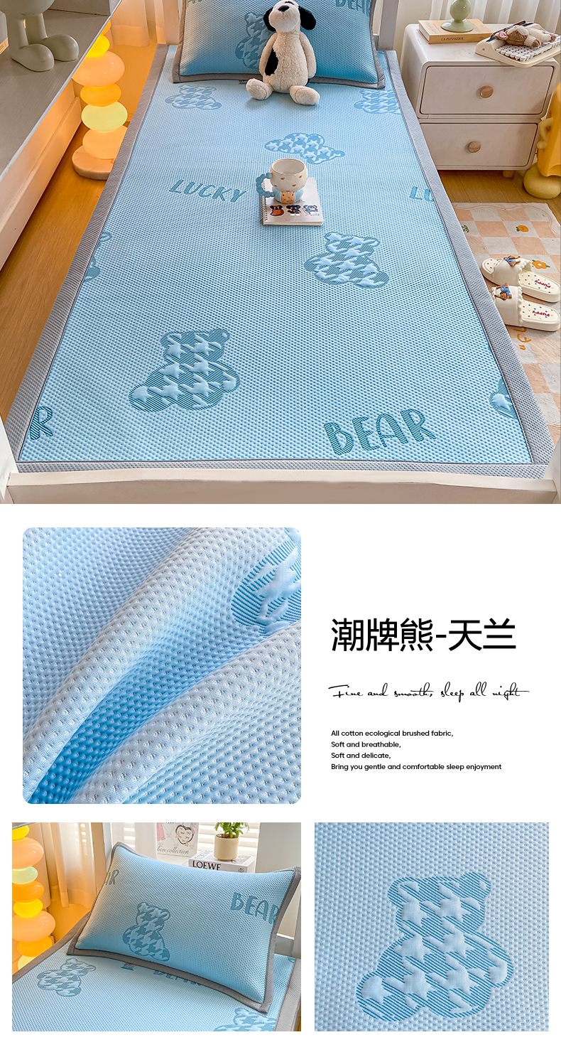 • 91家纺网 家纺一手货源 找家纺 耐思2025a类冰豆豆提花凉席学生款潮牌熊系列 潮牌熊-天兰