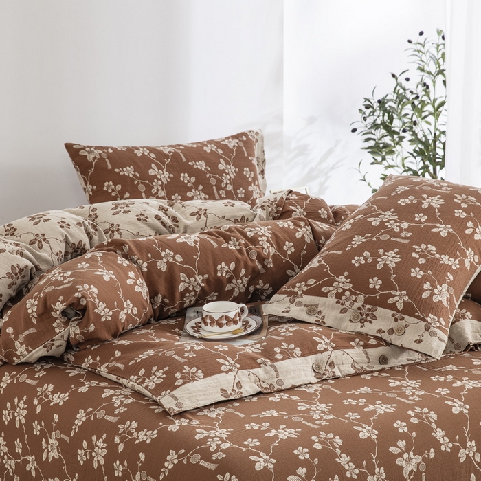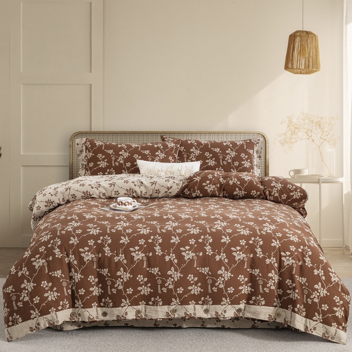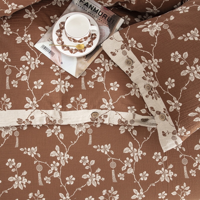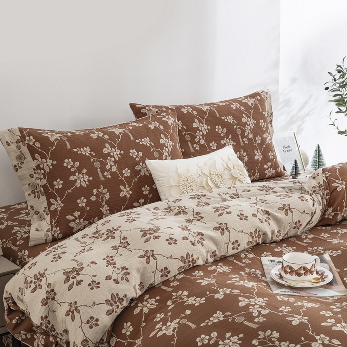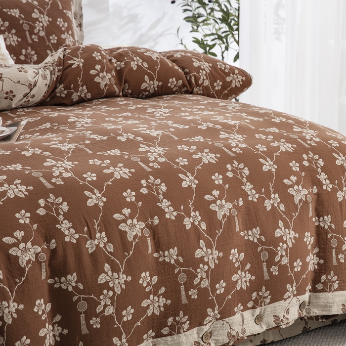 2025新款全棉色织双层纱纽扣款四件套 春晖-浅咖