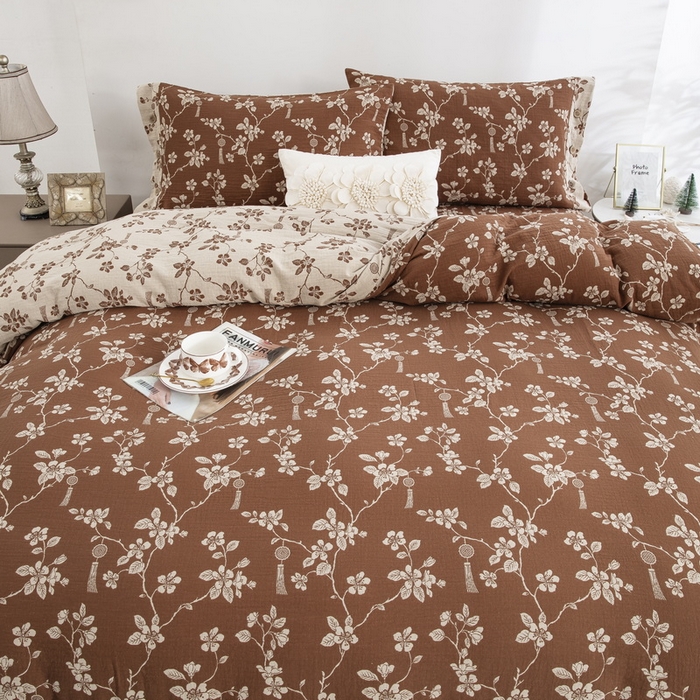 商品名称:2025新款全棉色织双层纱纽扣款四件套 春晖-浅咖