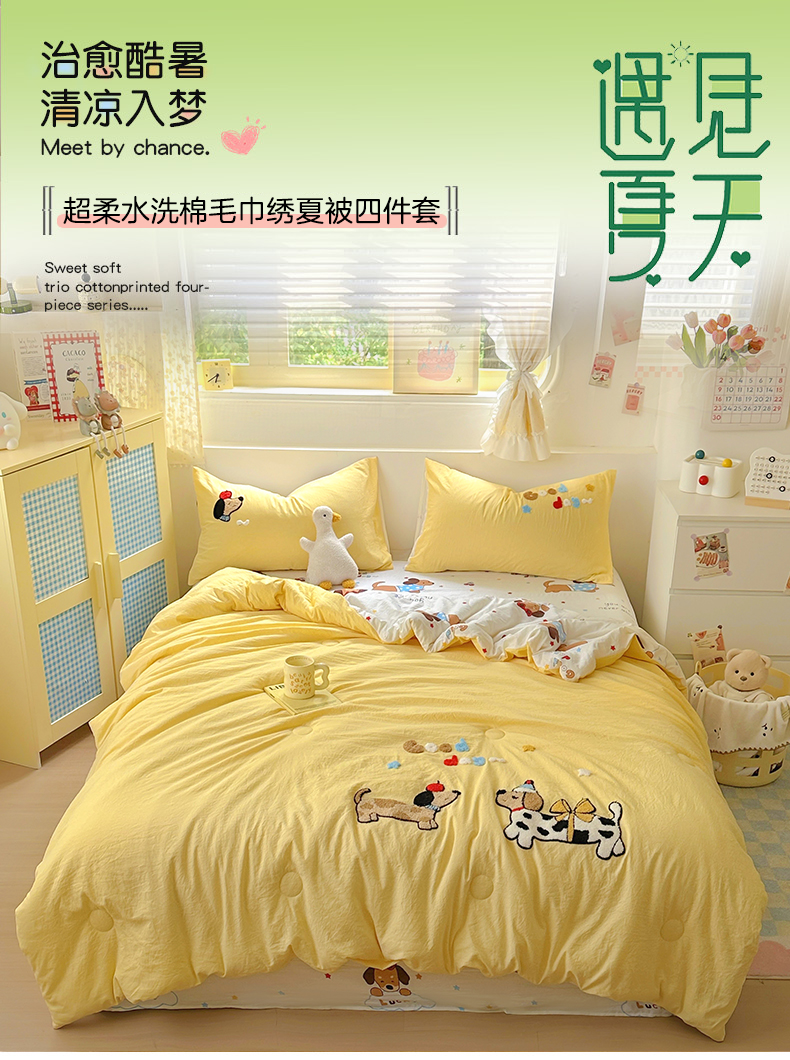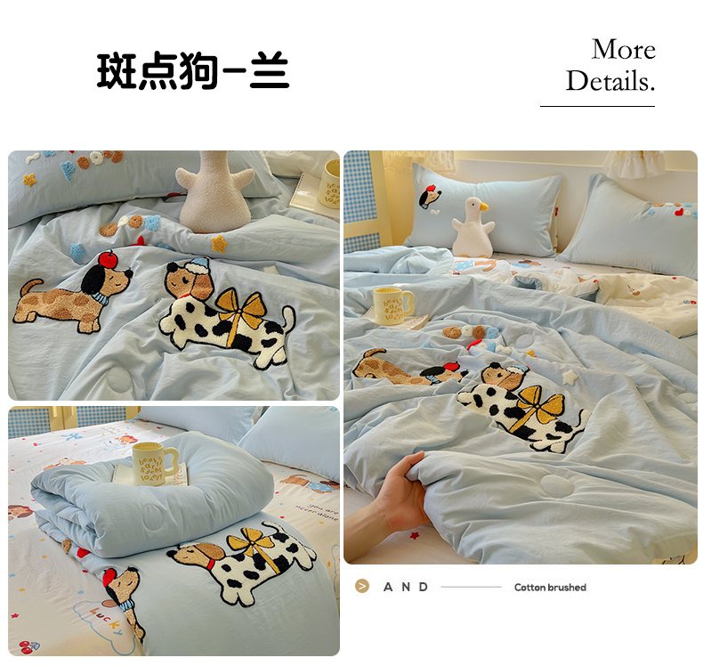 当前位置: 91家纺网 > 商品网购 > 床品套件 > 四件套 > 夏被四件套 > 易辰美 2025新款水洗棉毛巾绣夏被空调被夏凉被四件套 斑点狗(兰)