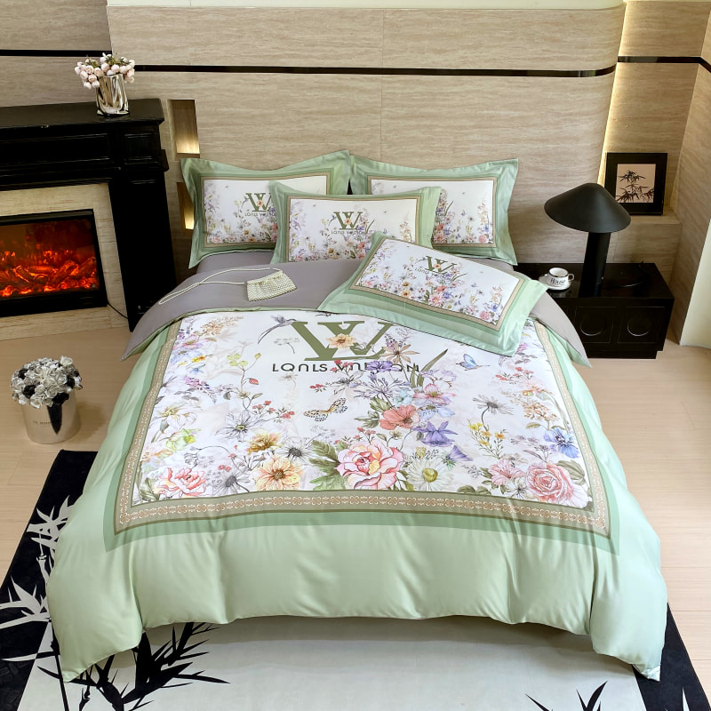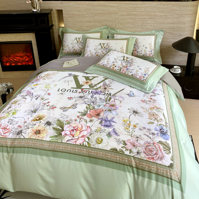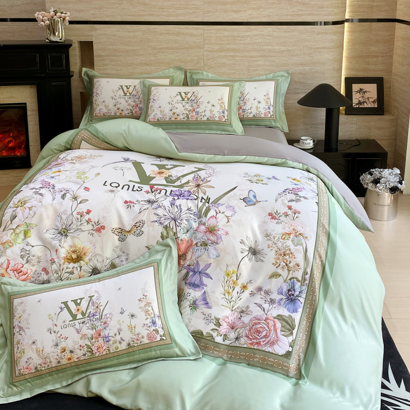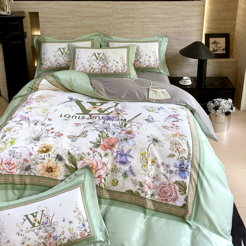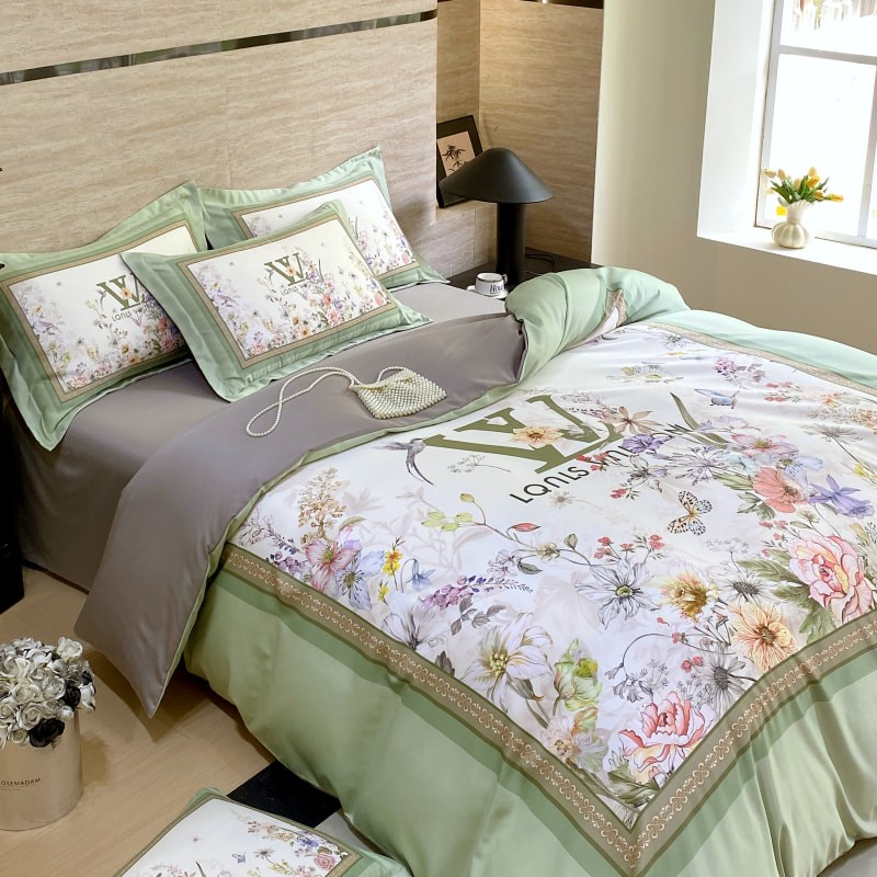 大麦乐田 2025新款轻奢高端数码印花四件套系列 维密 奶油绿