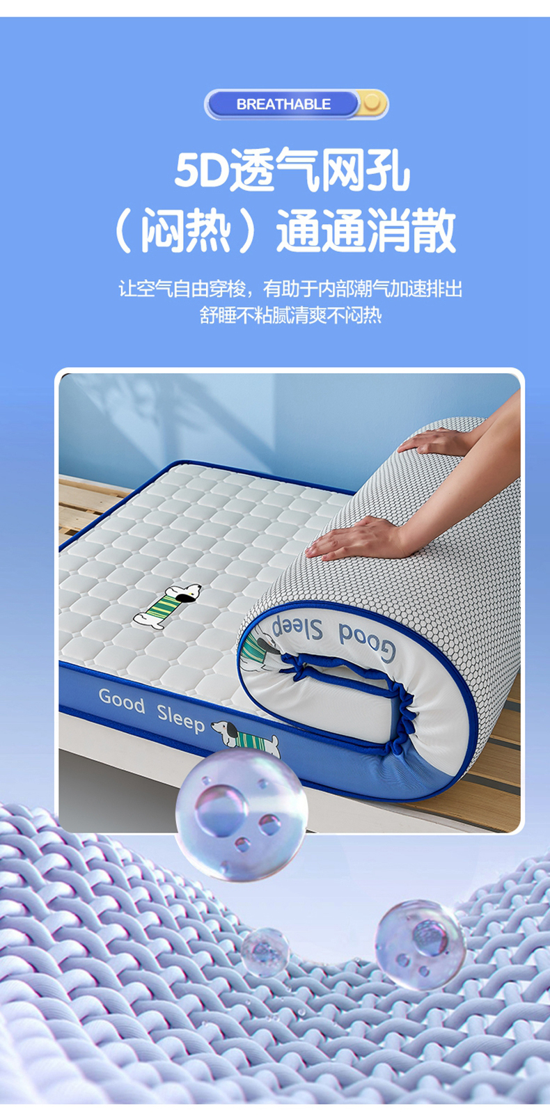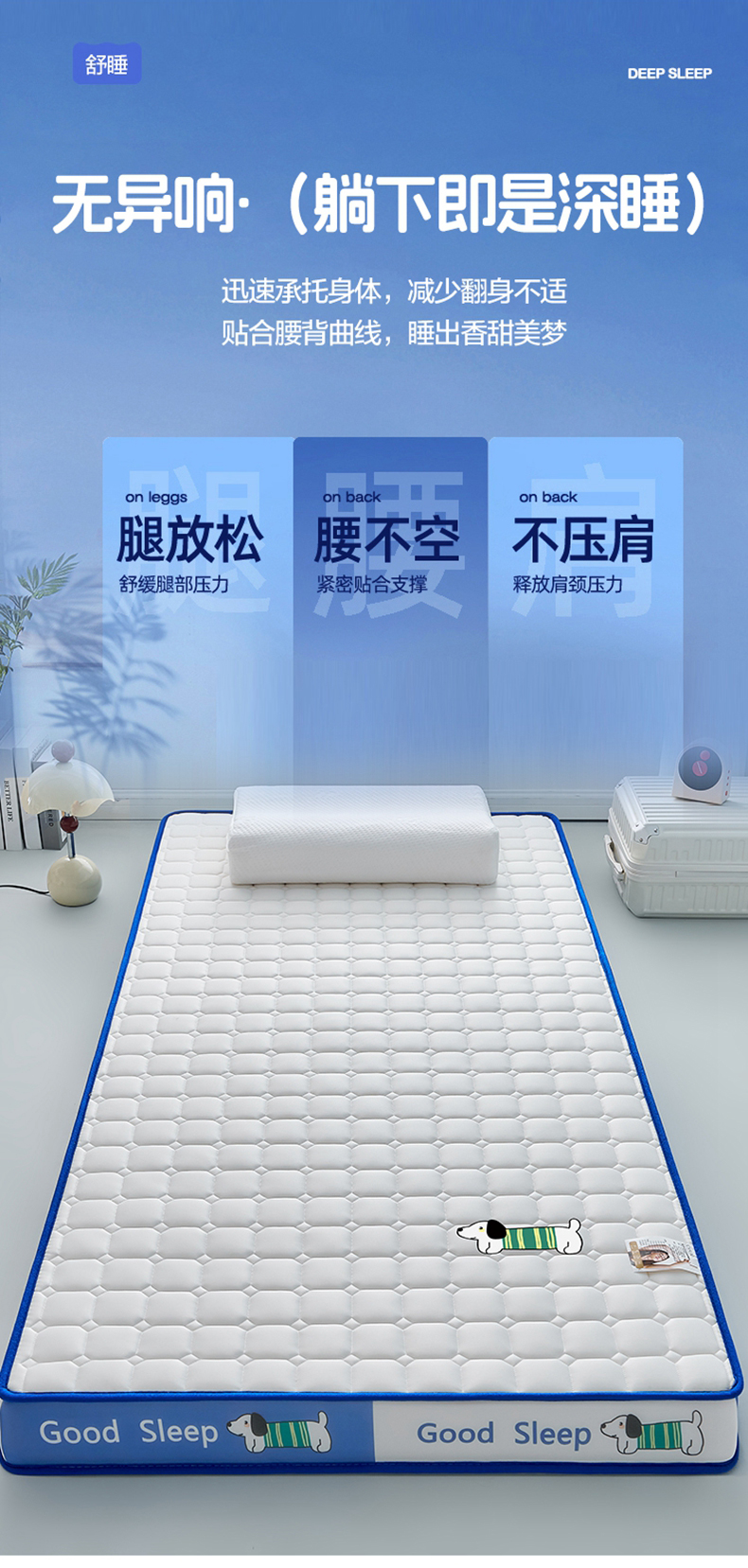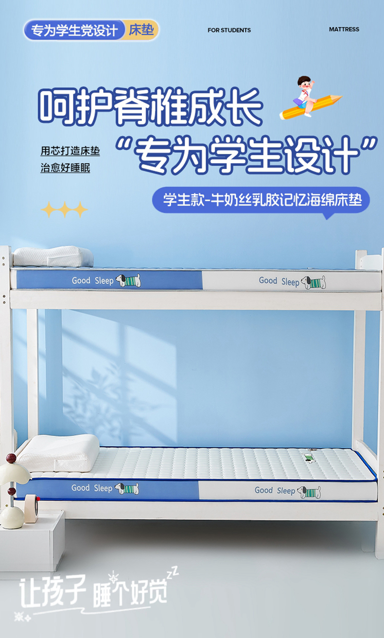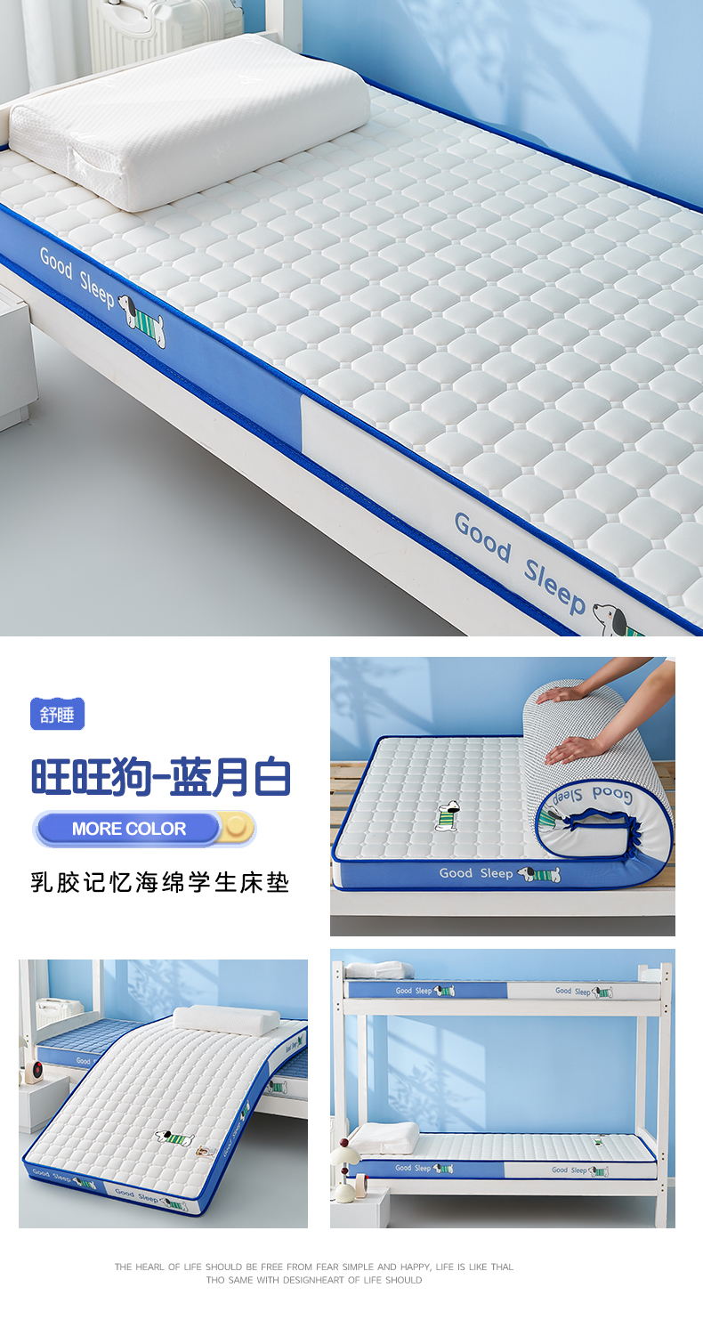当前位置: 91家纺网 > 商品网购 > 床垫/床褥 > 普通床垫 > 元昊床垫 2025新款牛奶丝乳胶记忆海绵学生床垫 旺旺狗-蓝月白