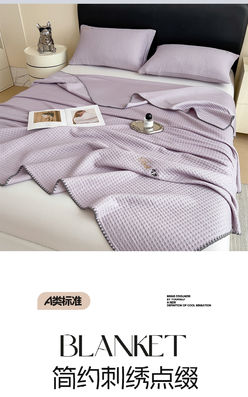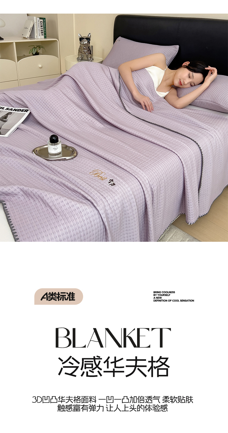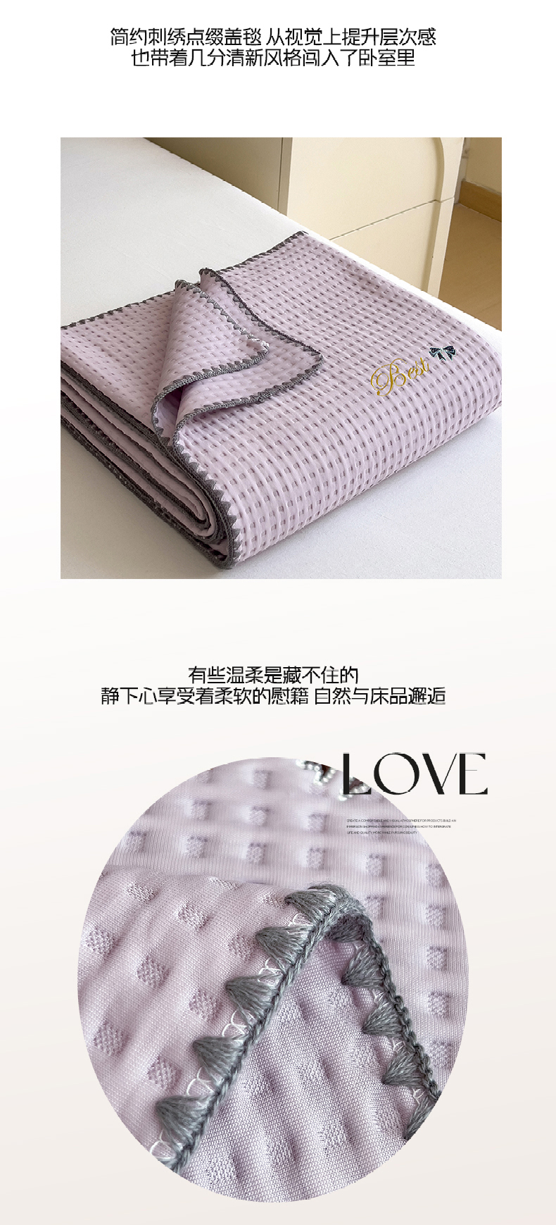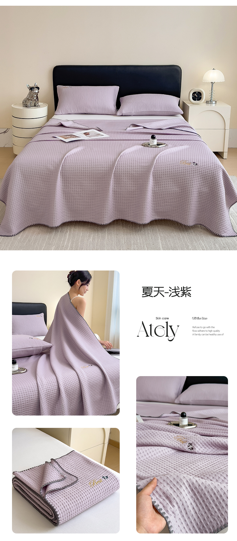 商品名称:米菲 2025新款刺绣华夫格多功能毯盖毯毯子 夏天-浅紫