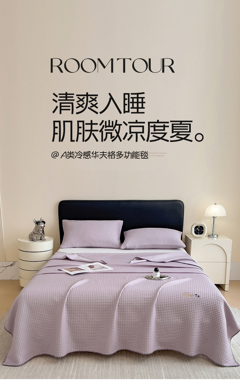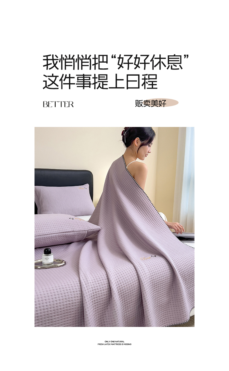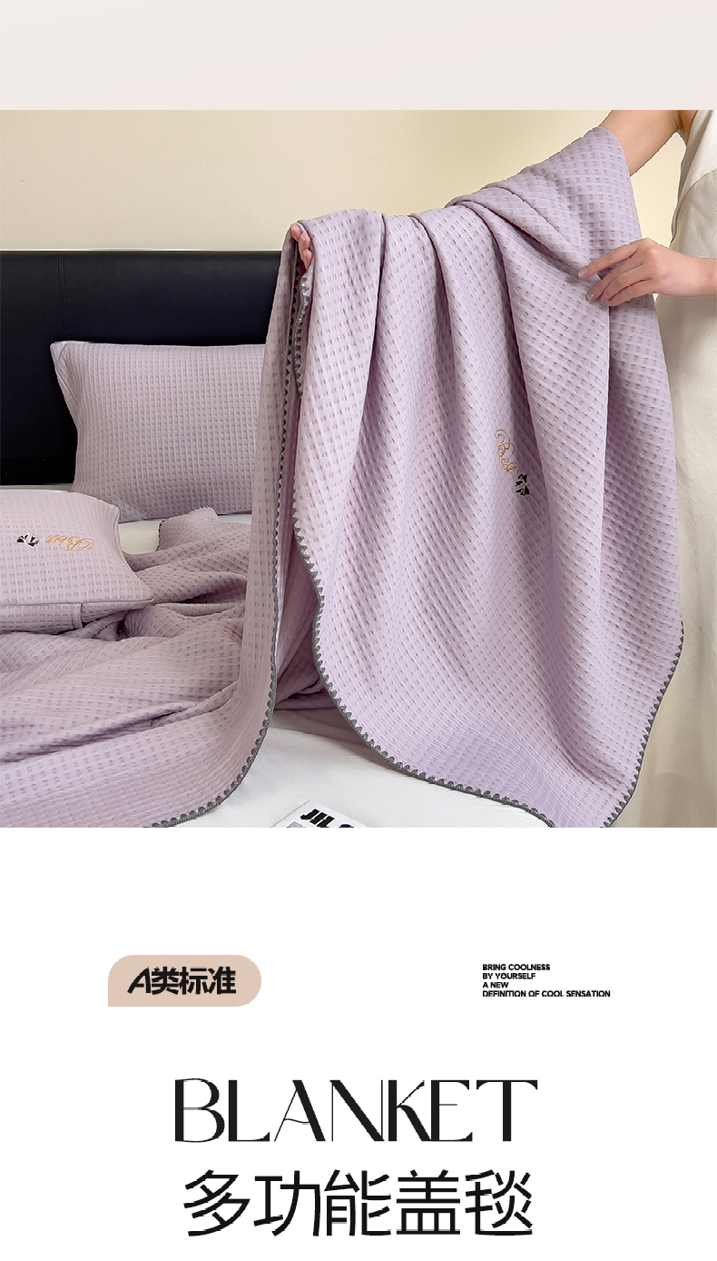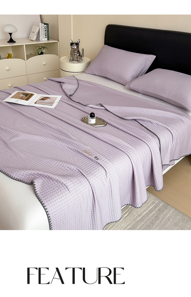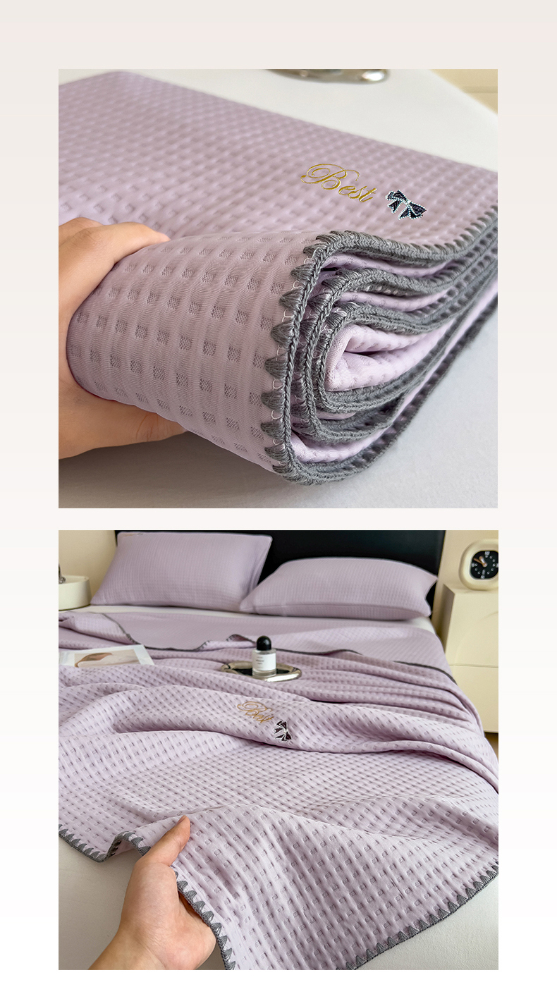 商品名称:米菲 2025新款刺绣华夫格多功能毯盖毯毯子 夏天-浅紫